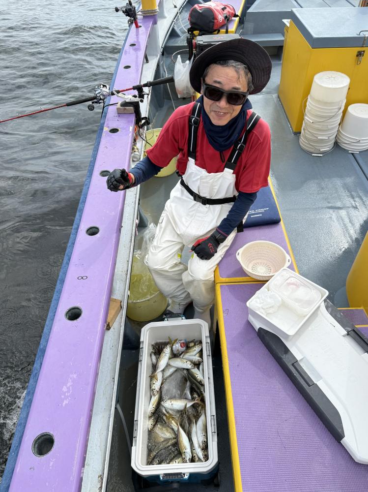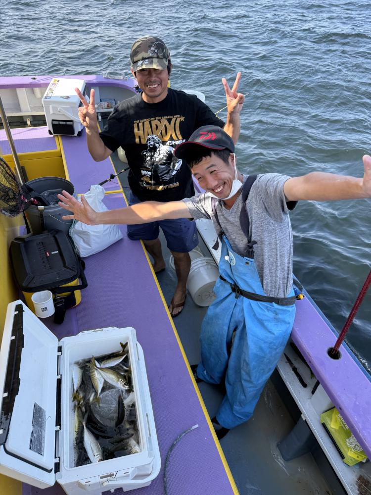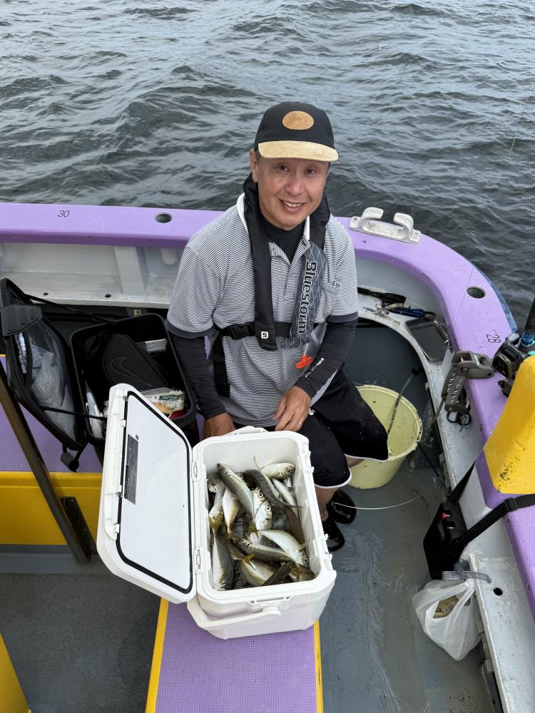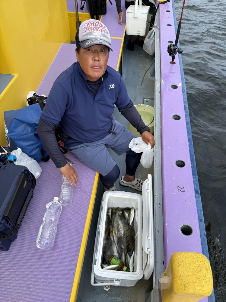 朝イチすぐに型も見てメーター級も混じり〜!後に台船西解放ですぐに向かいましたが、昨日までのような反応なく?上潮で出てくるのを期待して、待っていると反応出てきましたが、アタリ悪く…サイズはドラゴン級まで混じりで上がってくるものの食いは持ち上がらず…粘ってみたもののラスト1時間で反応がまた台船の中へと…。ラストは台船東へと移動し、ポツリ〜ポツリと追加で時間でした。