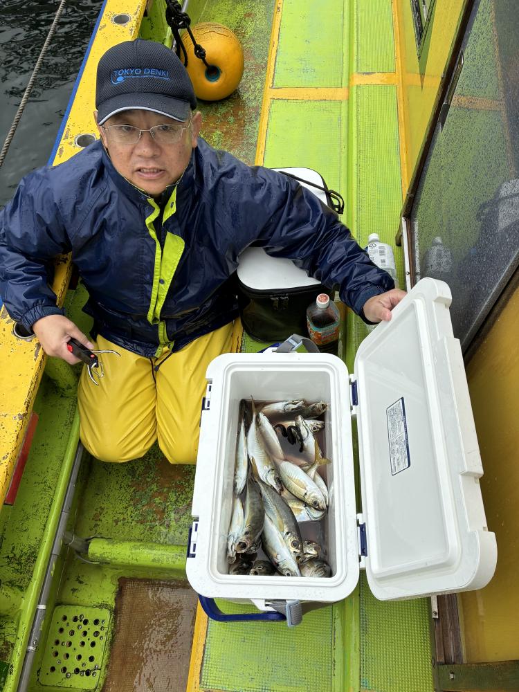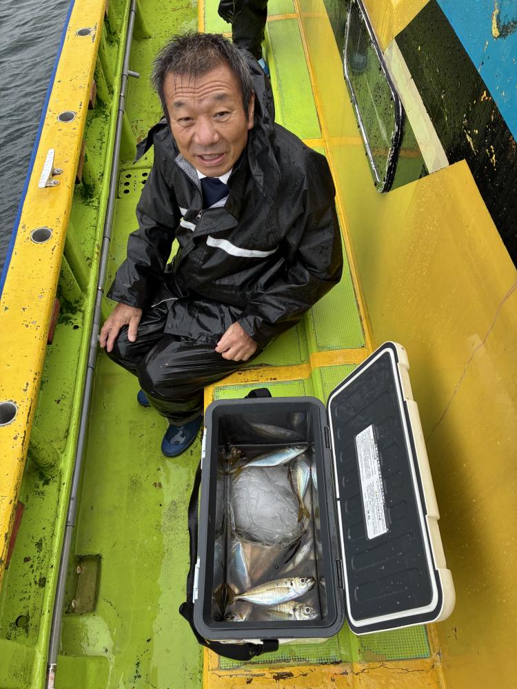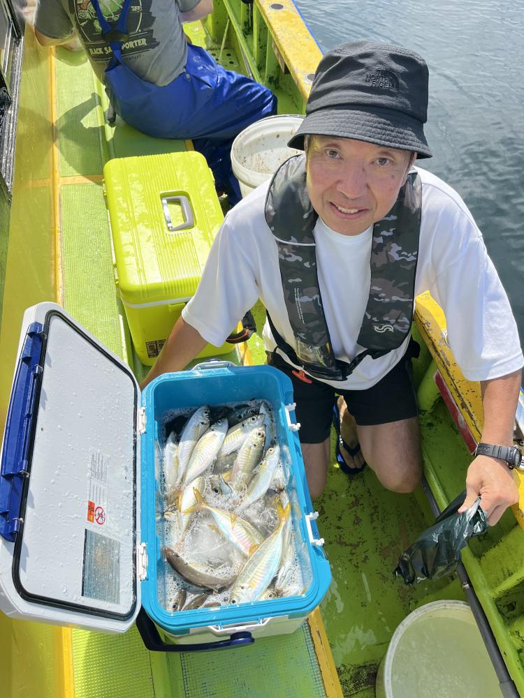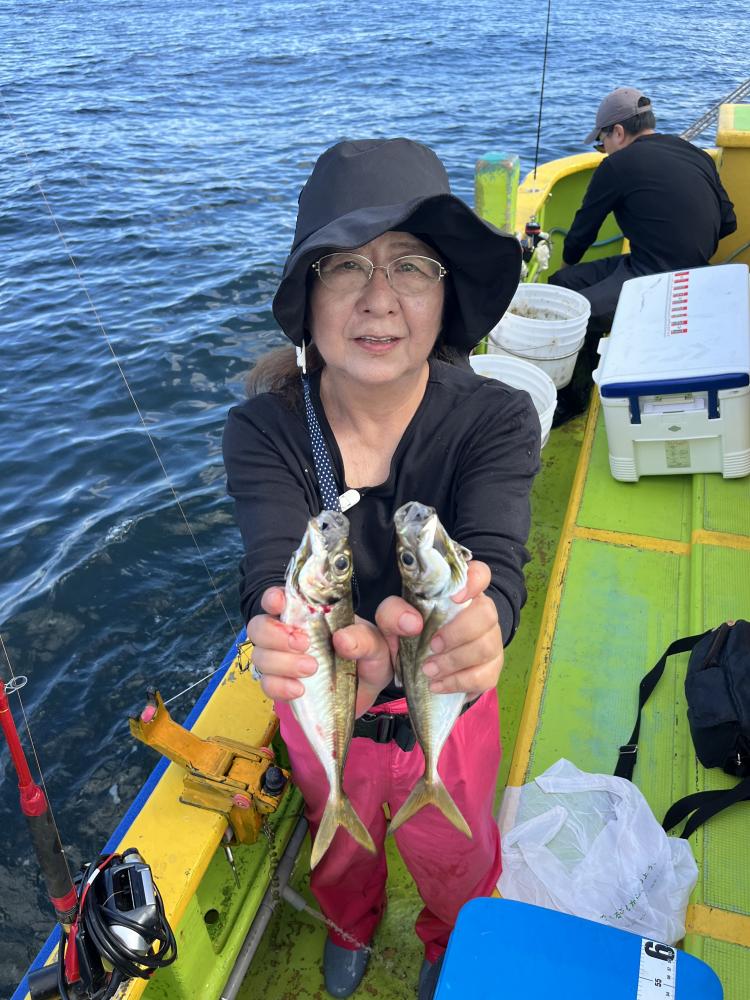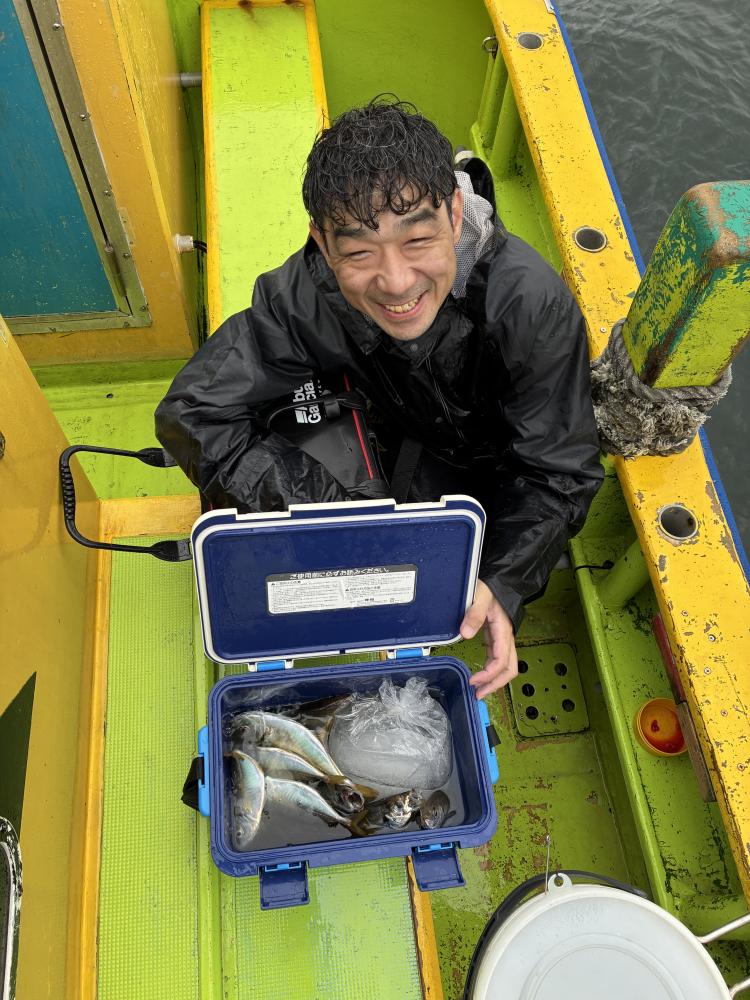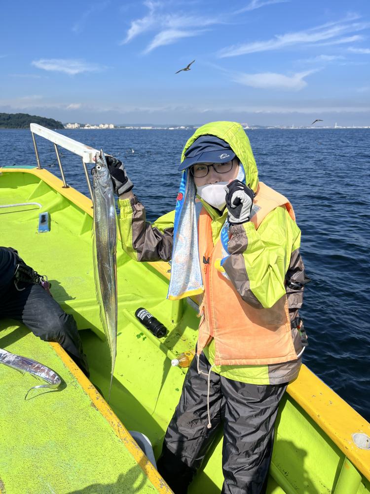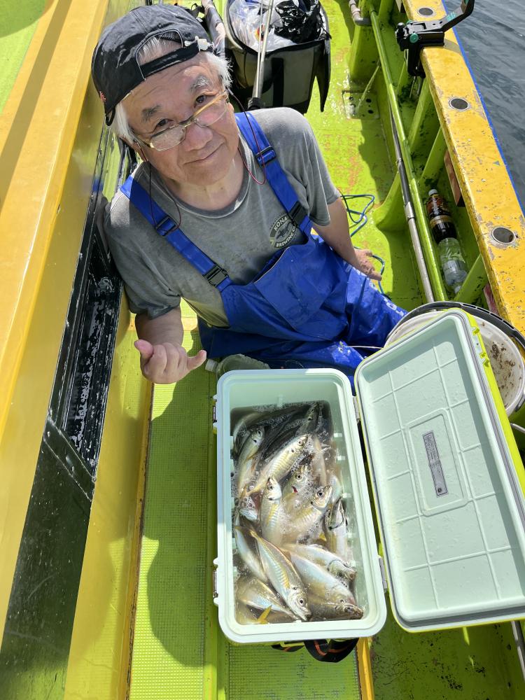 10時45分にタチウオ狙いは終了して、ナギの海上で、レンタルテンヤロッド多数の片付けからレンタルアジロッド多数の支度、ロッドキーパーの取り付けから電源接続、猿島金アジポイントで釣り方レクチャーからの実釣までの取次ぎ時間は1時間20分のアジ釣り開始時間は11時05分となりました、沖上がり時間まで1時間55分とポイント探索時間も限られてある中、実釣開始、反応が入って来ると猿島金アジの顔見られるも❓中々連打❗️連打❗️とはならず、ポイント探索からの探索からの実釣開始するも❓ラスト30分で実釣開始すると活性の高い群れに遭遇して連打❗️連打❗️のシーンもあり、ビシアジデビュー戦の方々にもプチ盛り上がりを体験して頂けました⭕️