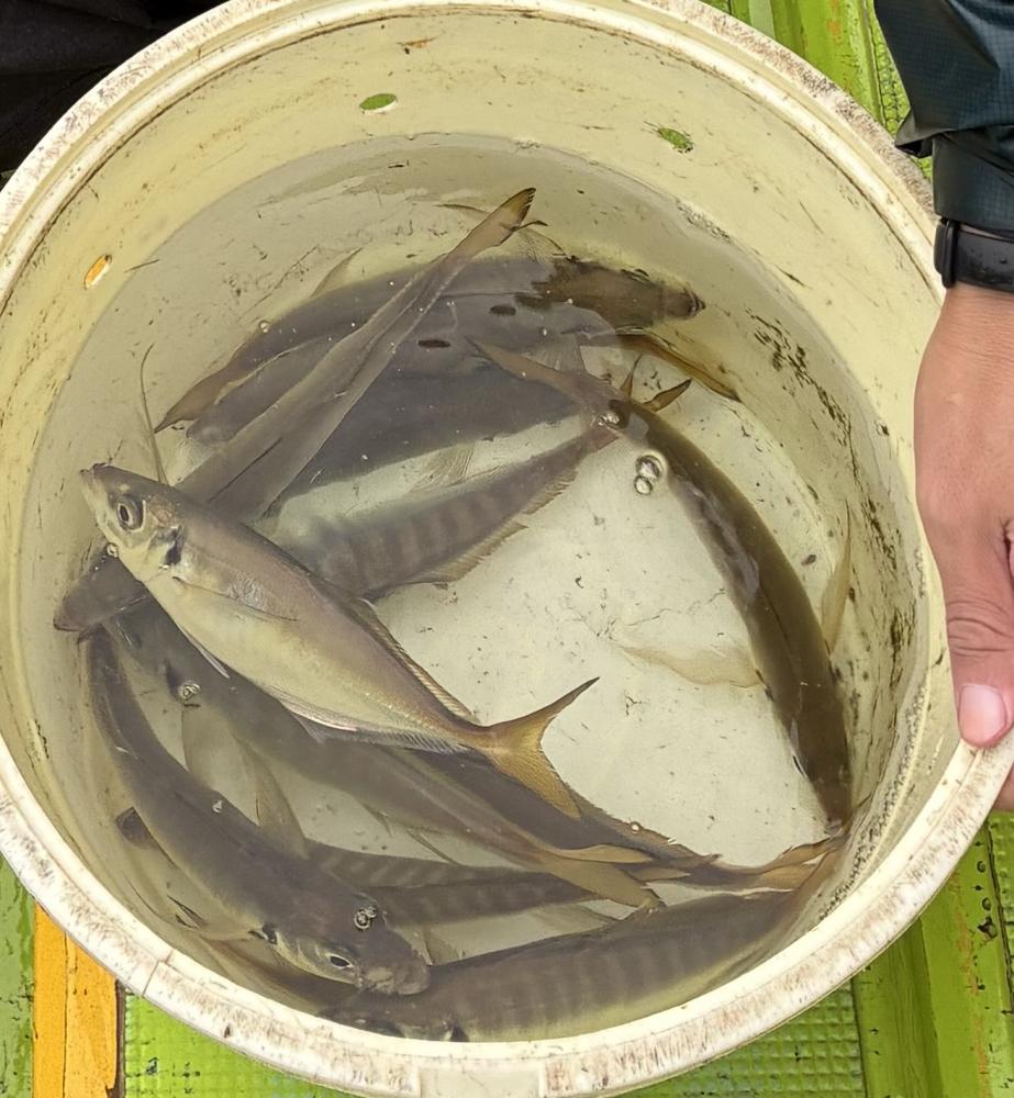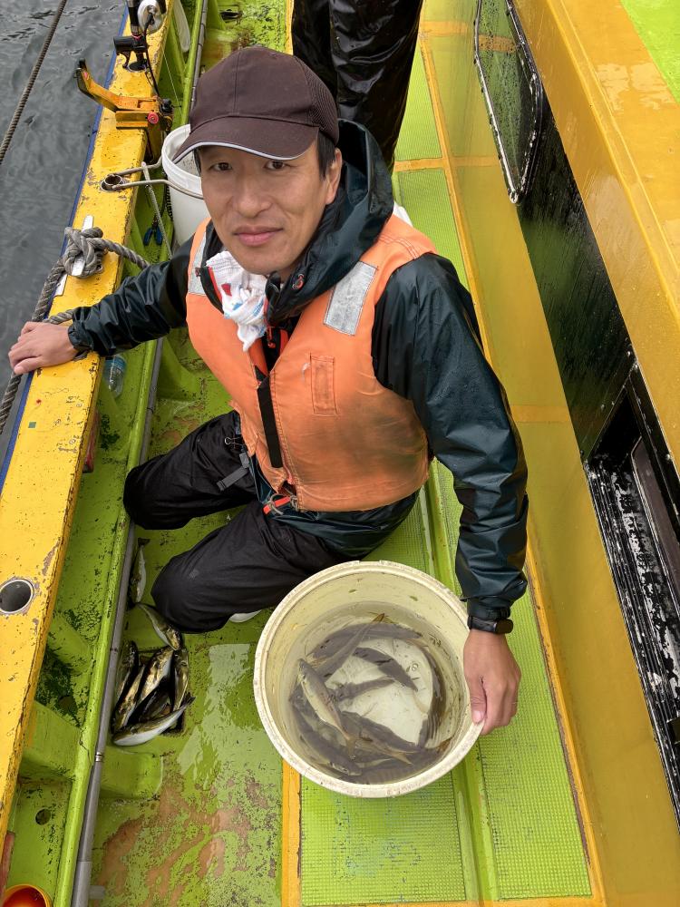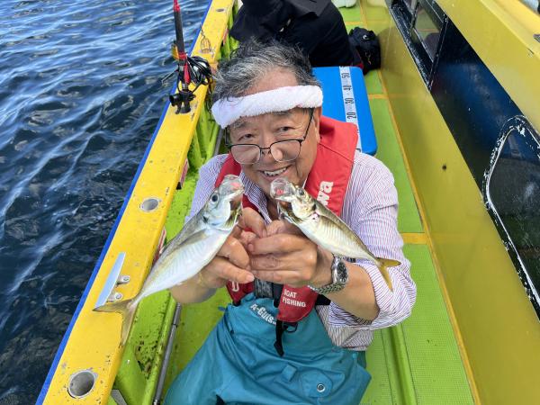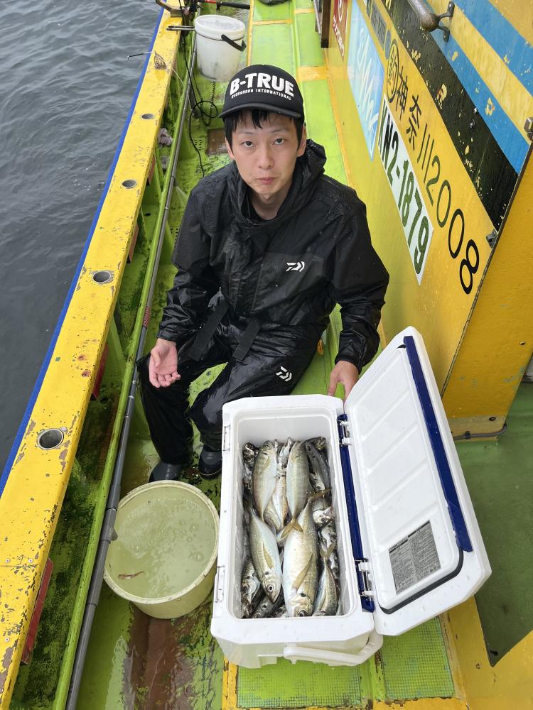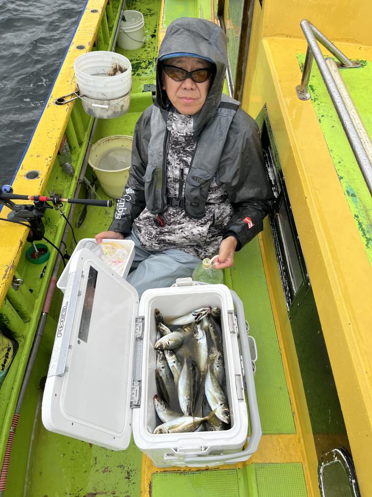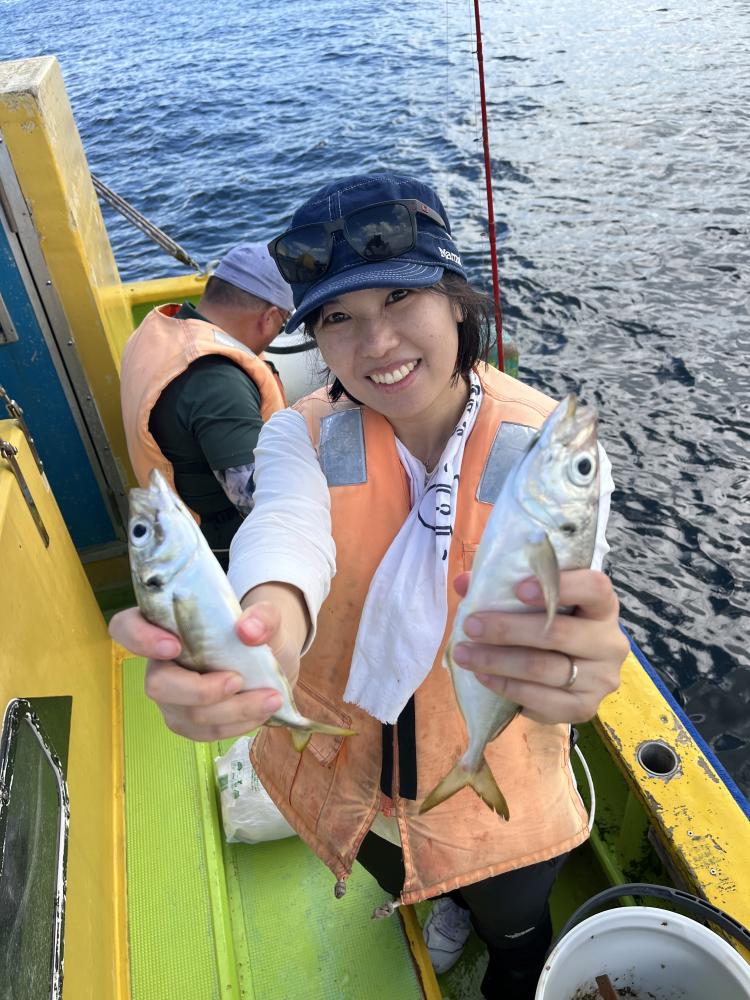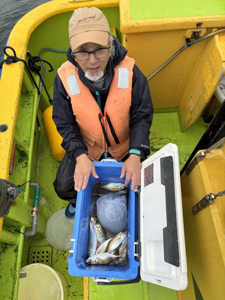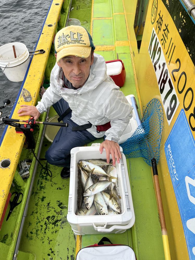 10時45分にタチウオ狙いは終了して、ナギの海上で、レンタルテンヤロッド多数の片付けからレンタルアジロッド多数の支度、ロッドキーパーの取り付けから電源接続、猿島金アジポイントで釣り方レクチャーからの実釣までの取次ぎ時間は1時間20分のアジ釣り開始時間は11時05分となりました、沖上がり時間まで1時間55分とポイント探索時間も限られてある中、実釣開始、反応が入って来ると猿島金アジの顔見られるも❓中々連打❗️連打❗️とはならず、ポイント探索からの探索からの実釣開始するも❓ラスト30分で実釣開始すると活性の高い群れに遭遇して連打❗️連打❗️のシーンもあり、ビシアジデビュー戦の方々にもプチ盛り上がりを体験して頂けました⭕️