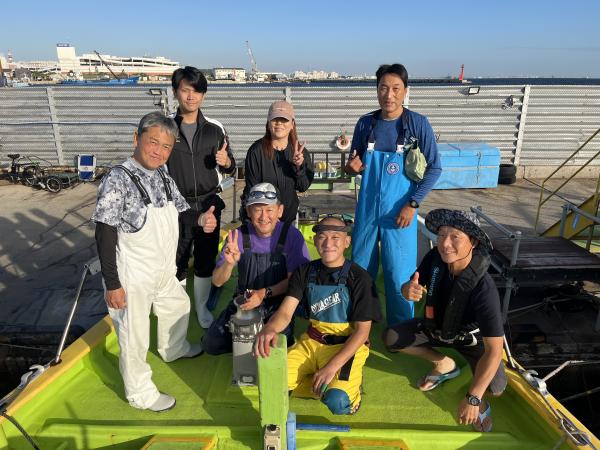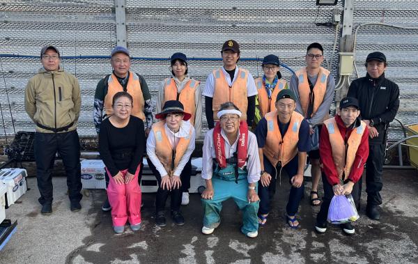 テンヤデビュー戦の「娘さん」「お兄ちゃん」が多数、港でイワシ餌の付け方からロッドアクションのレクチャー後の出船となりました