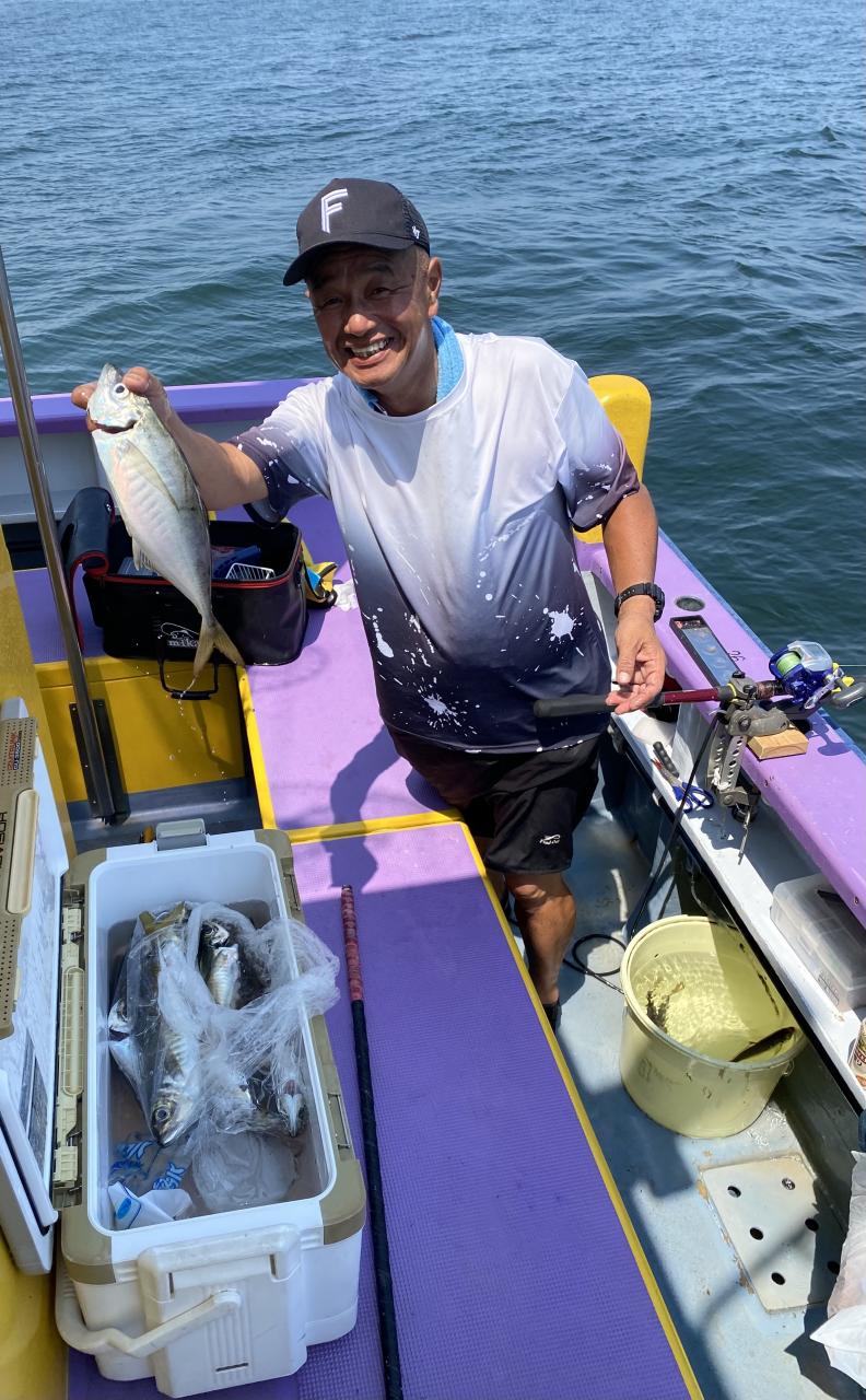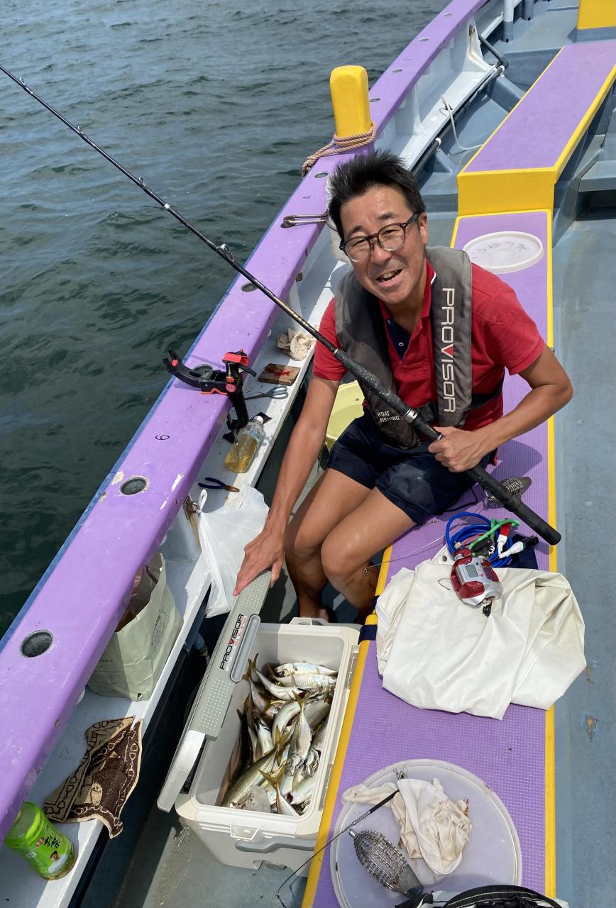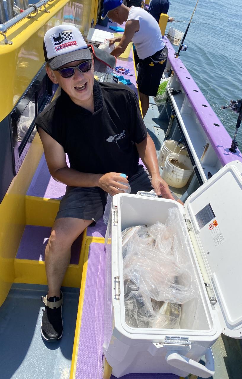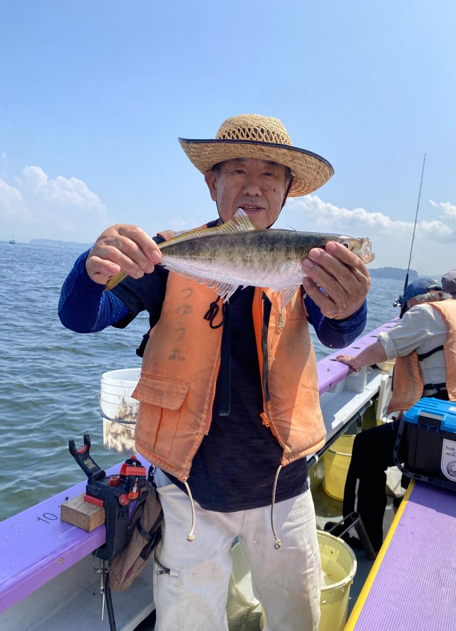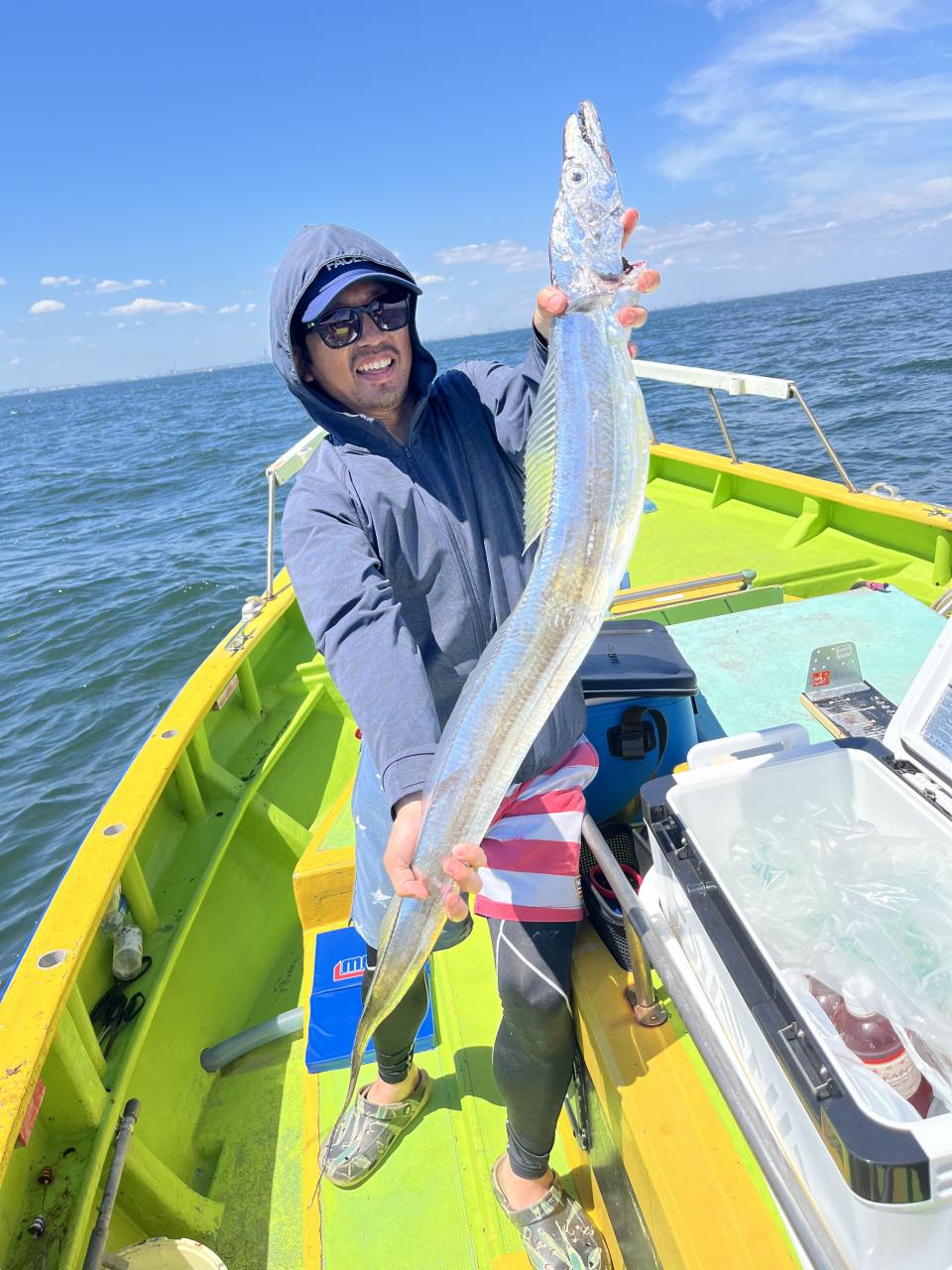 ポイント到着、実釣開始、反応には乗っていても竿が曲がらず❓何だか昨日と違うな❓8時過ぎには横一列の船団が出来るもバタバタ上がる様なシーンは見られないものの釣れれば夏タチウオは交じらず良型メインでドラゴン級の水面バラシもありました、10時過ぎの潮止まりから上げ潮にならないと活性が上がらないのかな❓