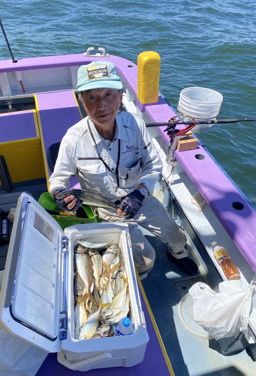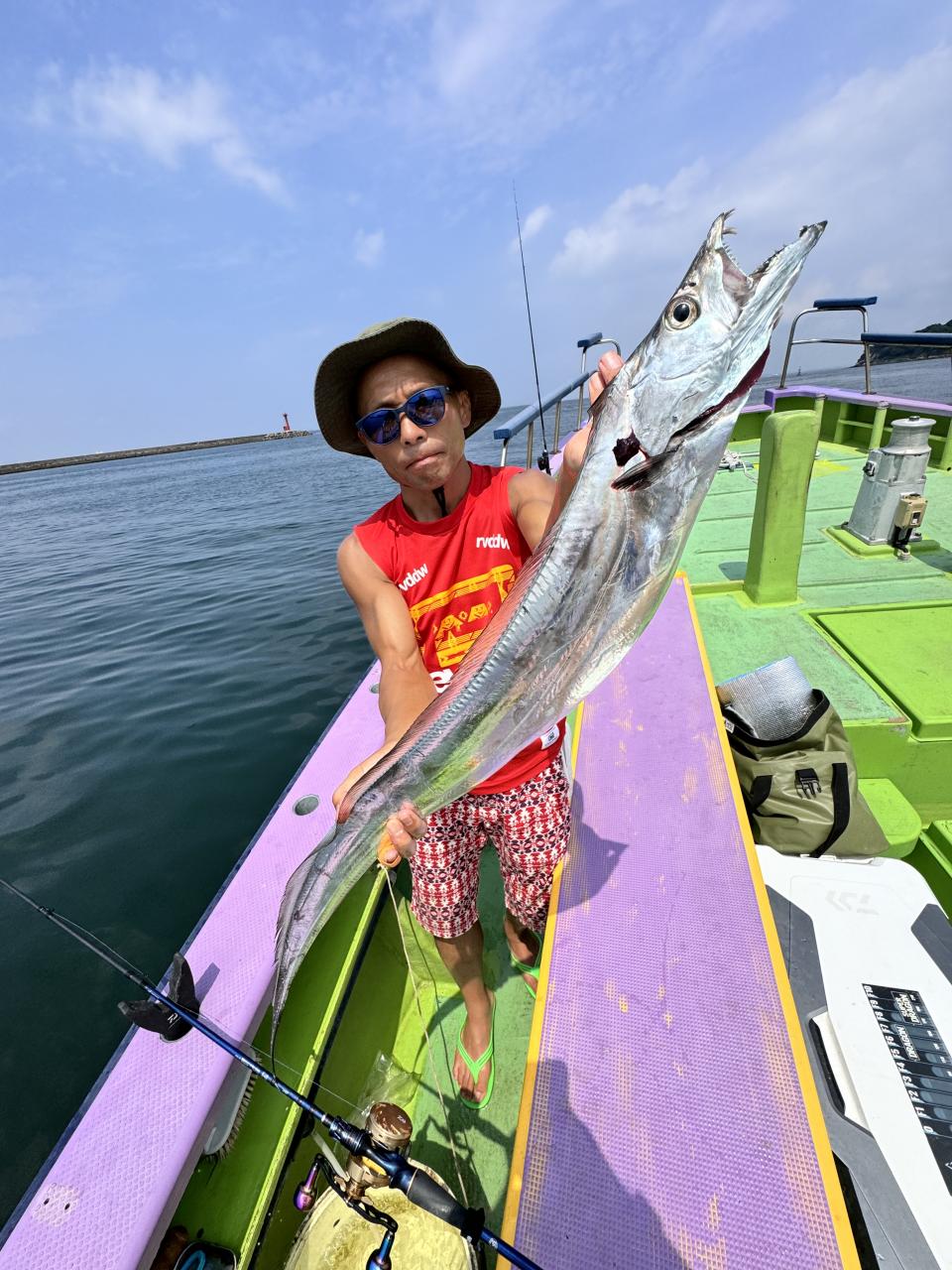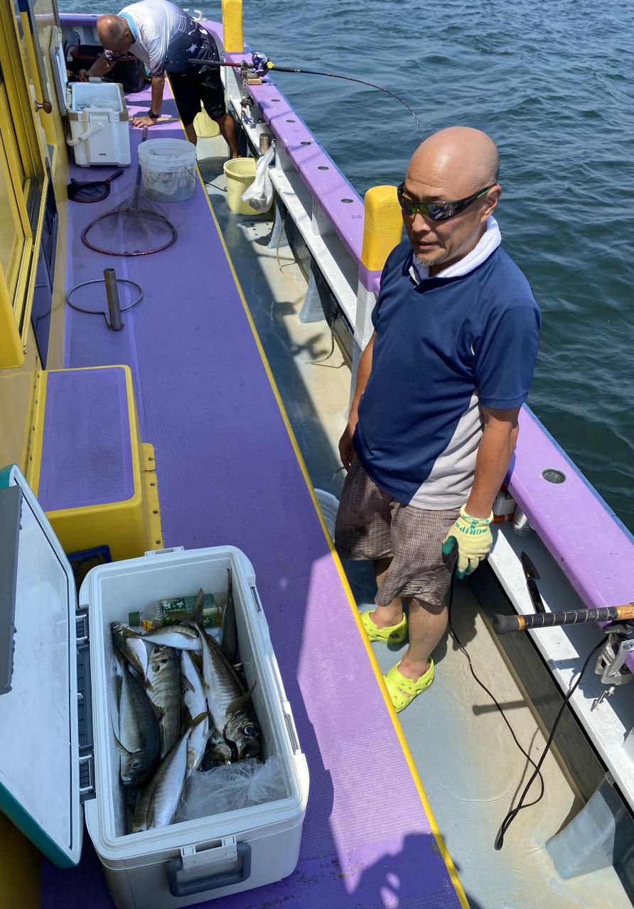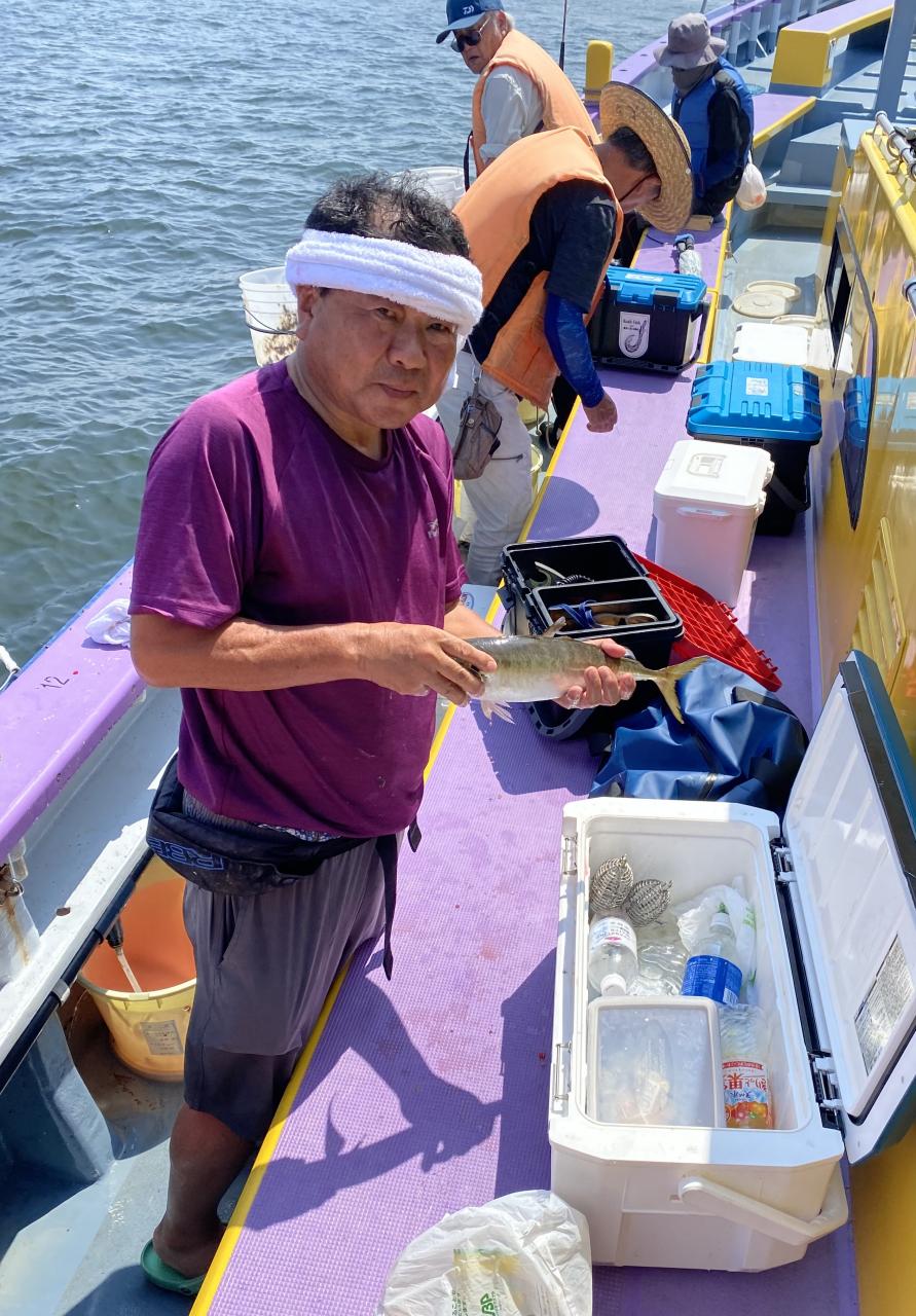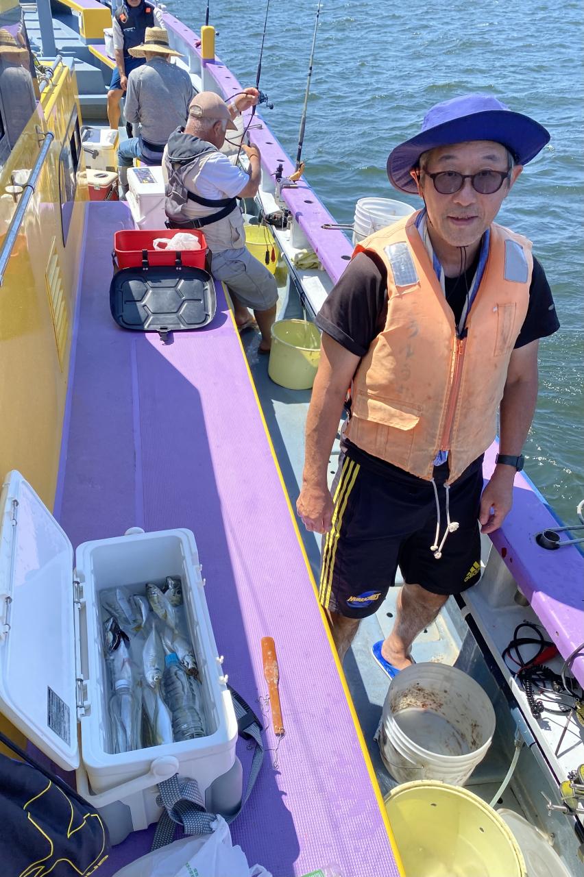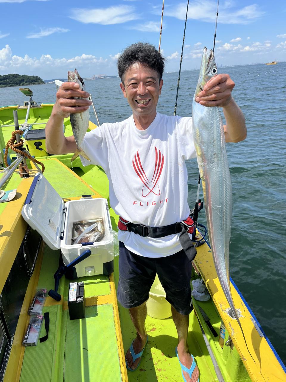 ポイント到着、実釣開始、反応には乗っていても竿が曲がらず❓何だか昨日と違うな❓8時過ぎには横一列の船団が出来るもバタバタ上がる様なシーンは見られないものの釣れれば夏タチウオは交じらず良型メインでドラゴン級の水面バラシもありました、10時過ぎの潮止まりから上げ潮にならないと活性が上がらないのかな❓