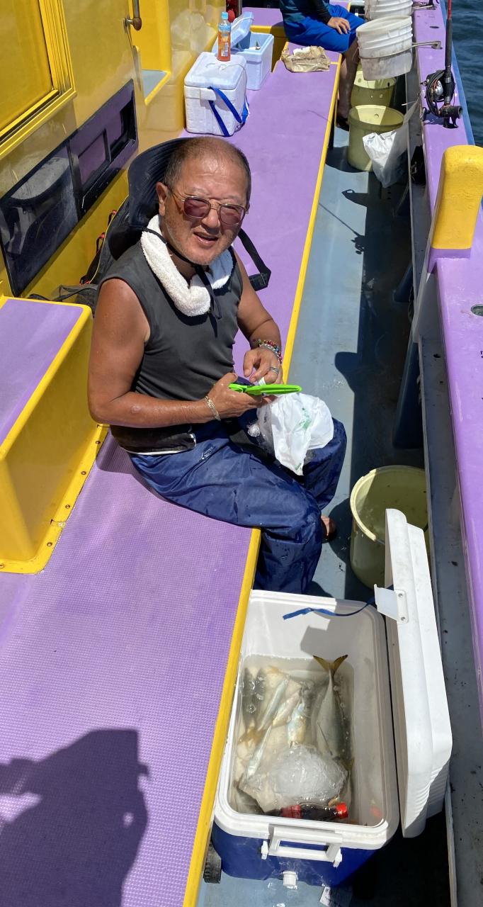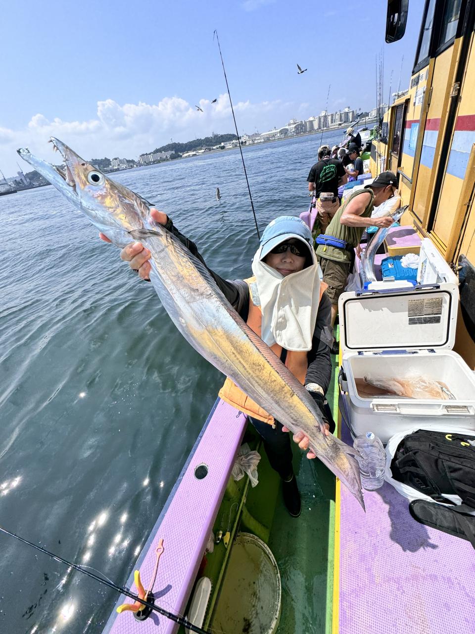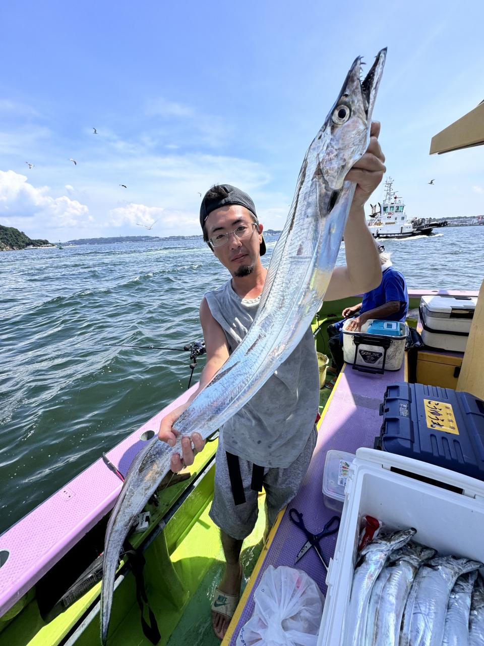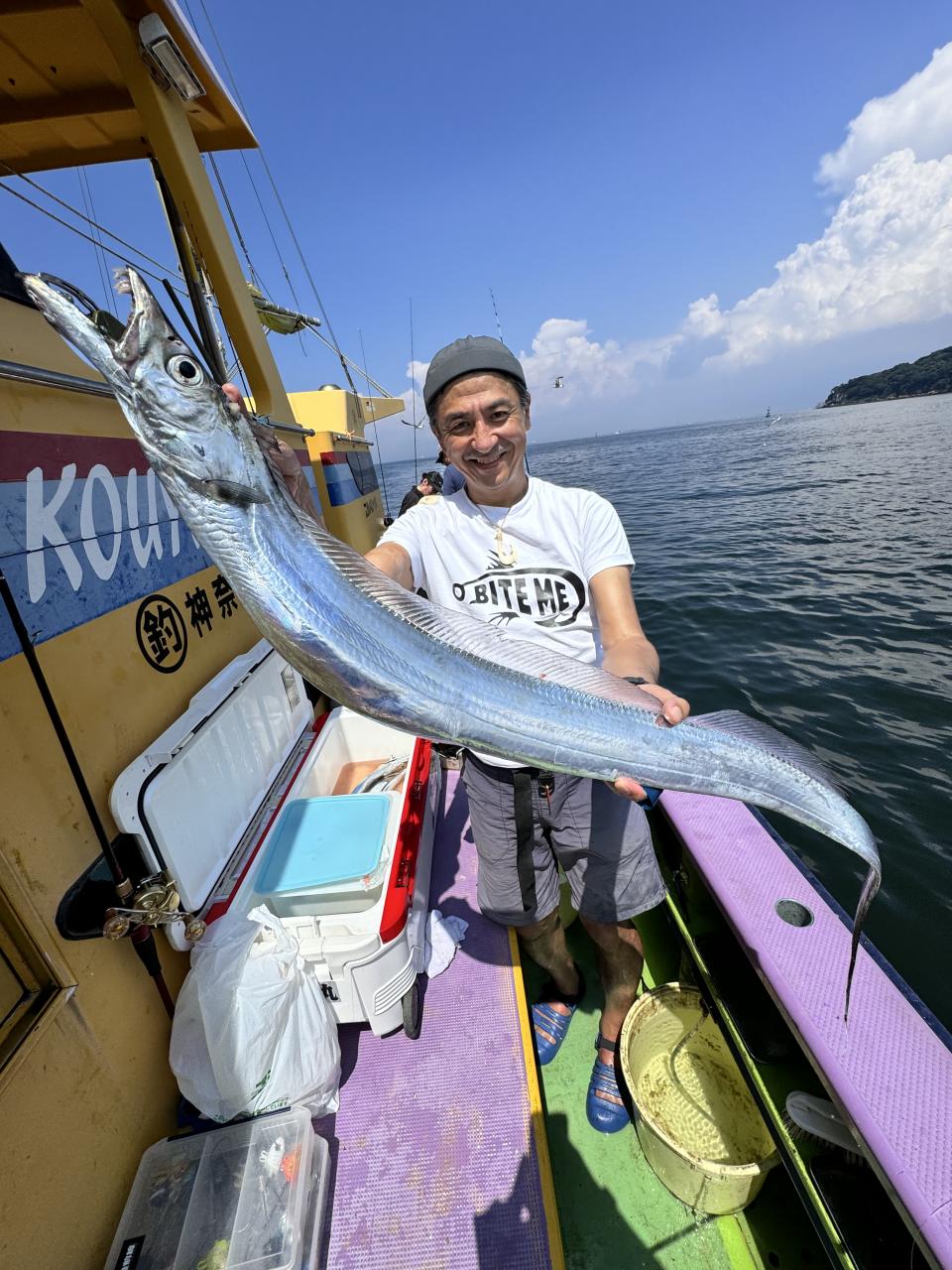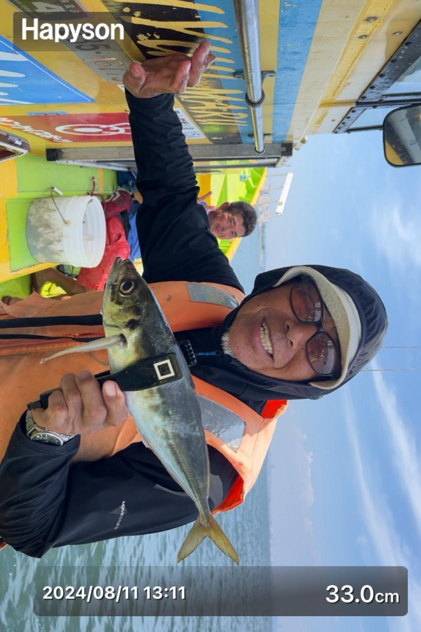 ポイント到着、実釣開始、反応には乗っていても竿が曲がらず❓何だか昨日と違うな❓8時過ぎには横一列の船団が出来るもバタバタ上がる様なシーンは見られないものの釣れれば夏タチウオは交じらず良型メインでドラゴン級の水面バラシもありました、10時過ぎの潮止まりから上げ潮にならないと活性が上がらないのかな❓