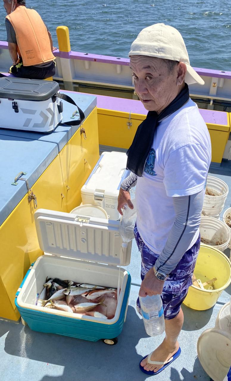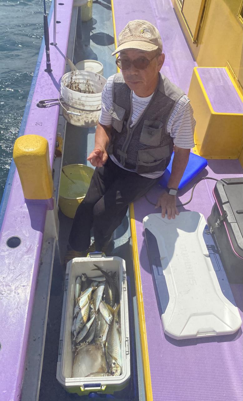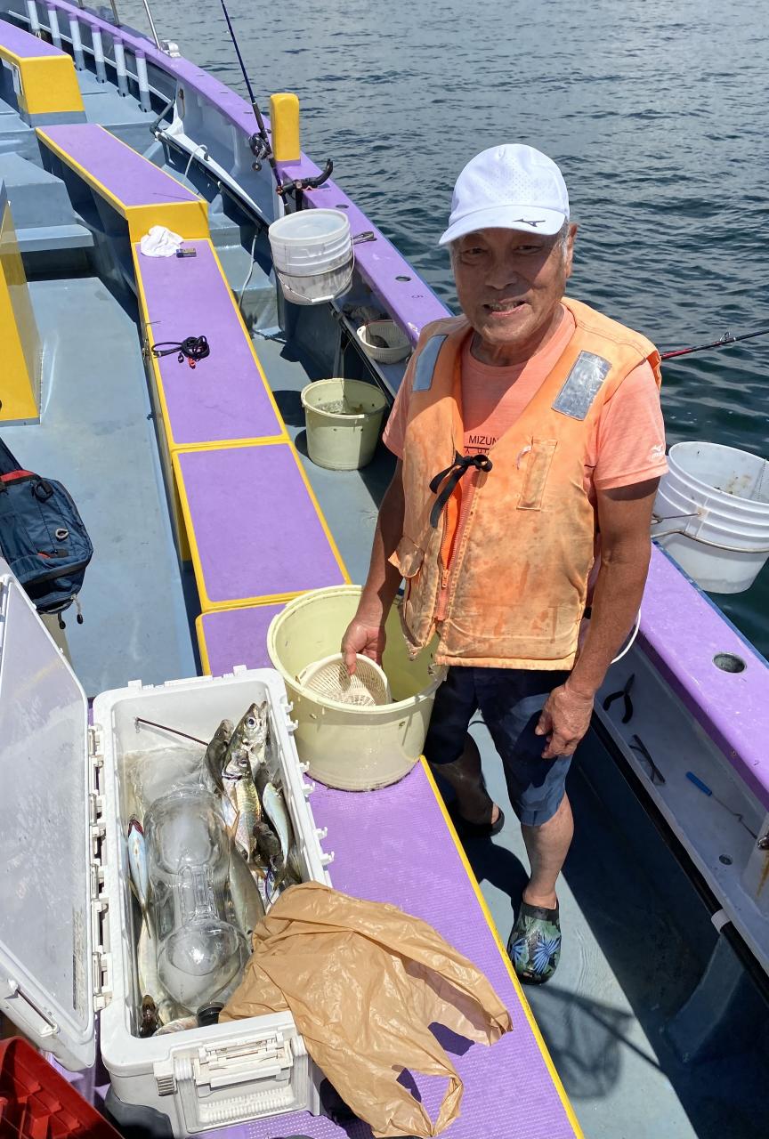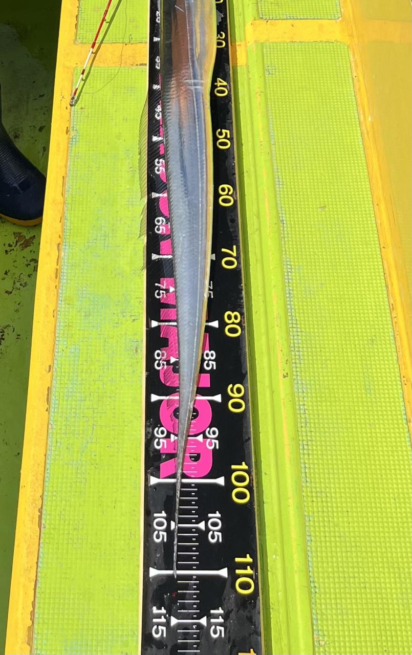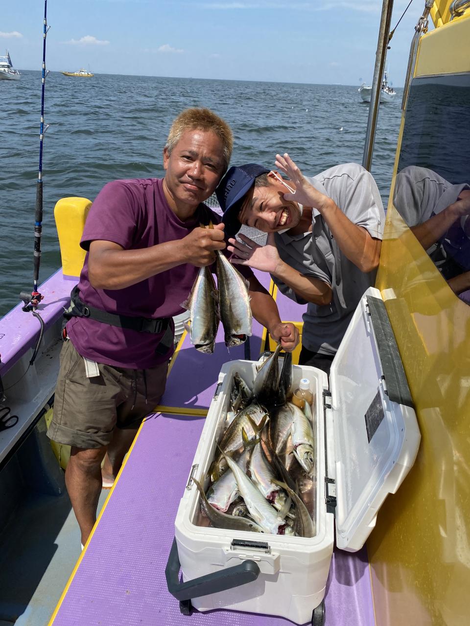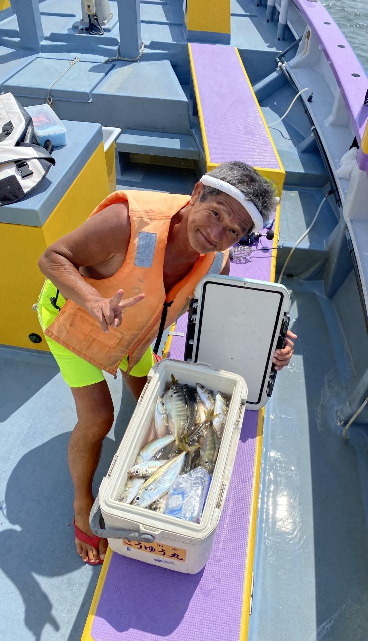 ポイント到着、実釣開始、反応には乗っていても竿が曲がらず❓何だか昨日と違うな❓8時過ぎには横一列の船団が出来るもバタバタ上がる様なシーンは見られないものの釣れれば夏タチウオは交じらず良型メインでドラゴン級の水面バラシもありました、10時過ぎの潮止まりから上げ潮にならないと活性が上がらないのかな❓