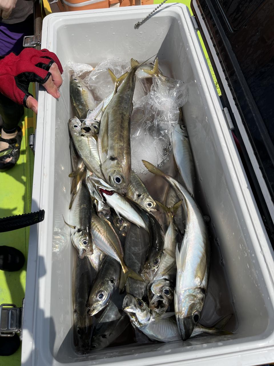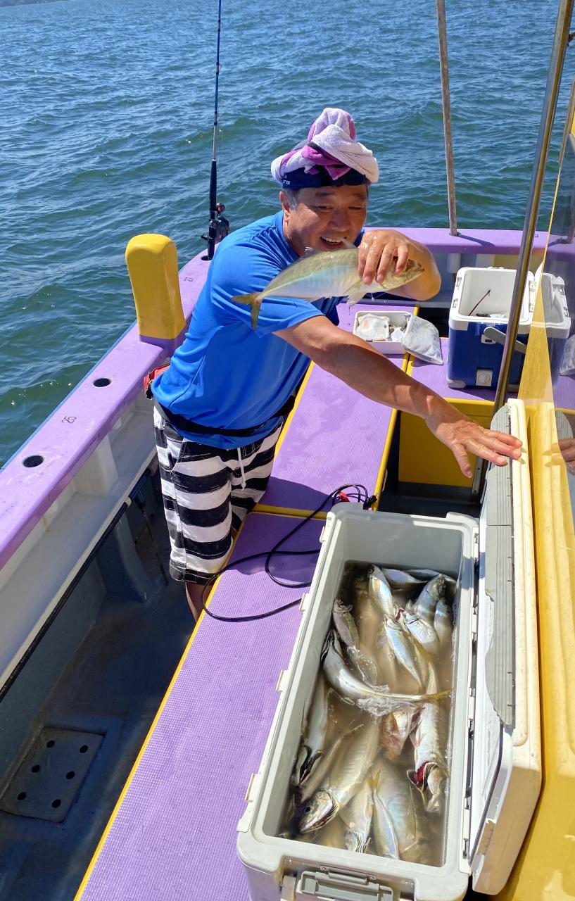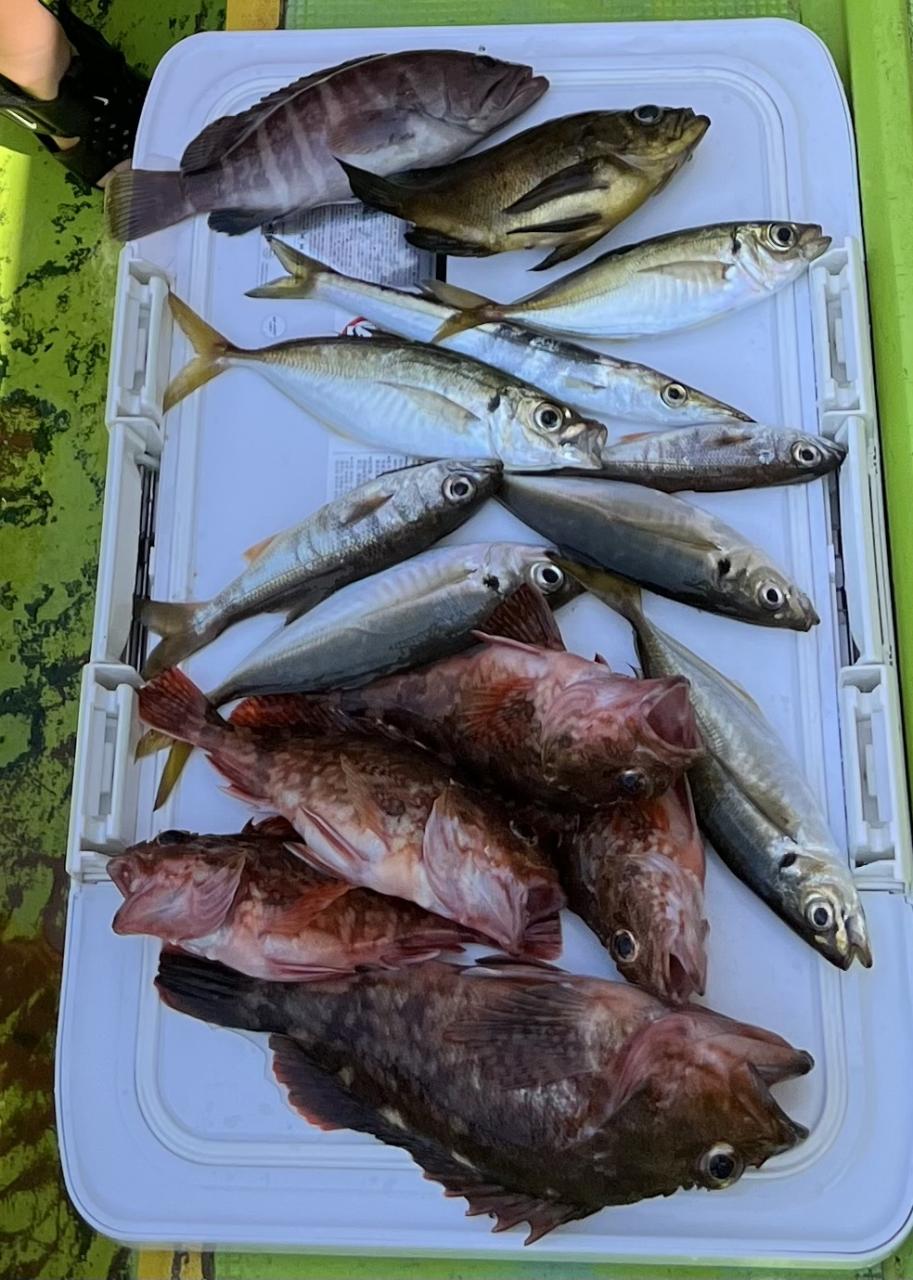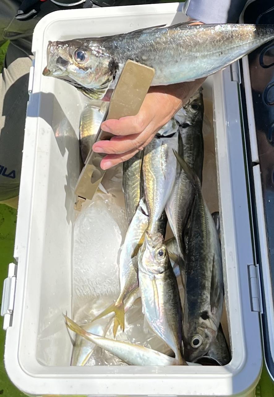 朝イチ安浦ドラゴン探索から!反応は各所確認できるものの釣れてくるのは中型ばかりで?なんとか中型に混じって安浦ドラゴンゲットの人もいましたが、後々釣れそうな雰囲気がなく沖へ。反応は出ているもののアタリいまいち?型見た程度だったり、ポツポツと見れる時もあったりと。後半上潮で変化あるかな〜と期待して港前に戻ると…やはり中型主体…と思っていたら最後の最後に安浦ドラゴン上がり始めて、これからなんじゃないか?って雰囲気はありましたが、時間切れでした。