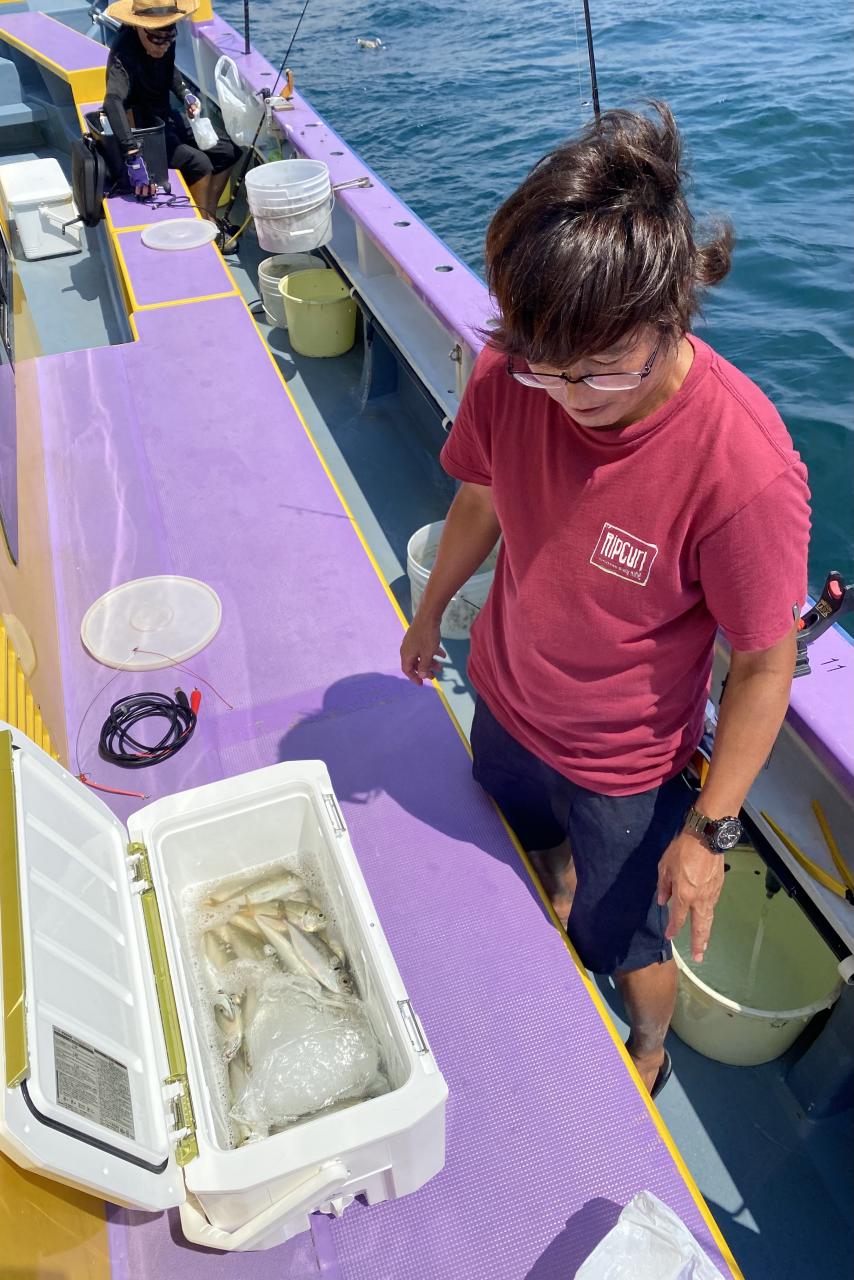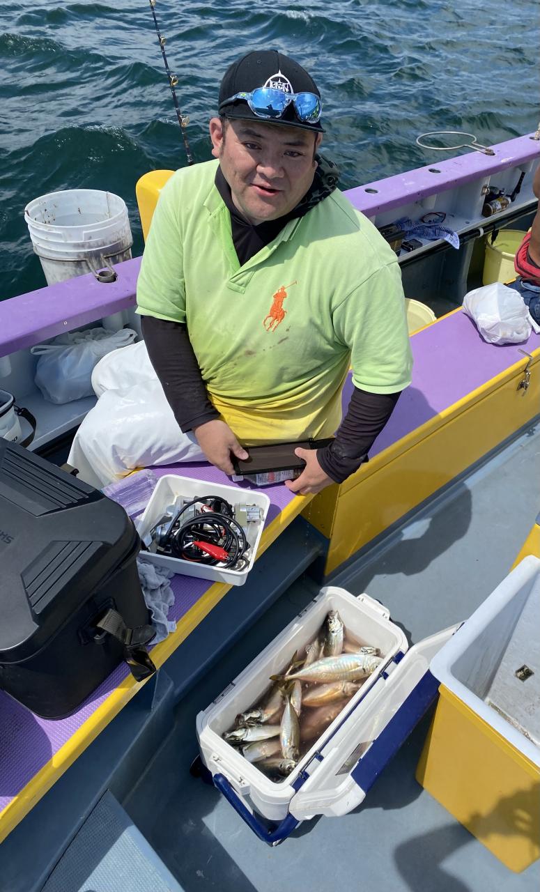 ☆ラインはPE2号まで(PE1.5号がオススメ)で、テンヤは40・50号、餌の冷凍イワシは10尾600円で販売もしています。