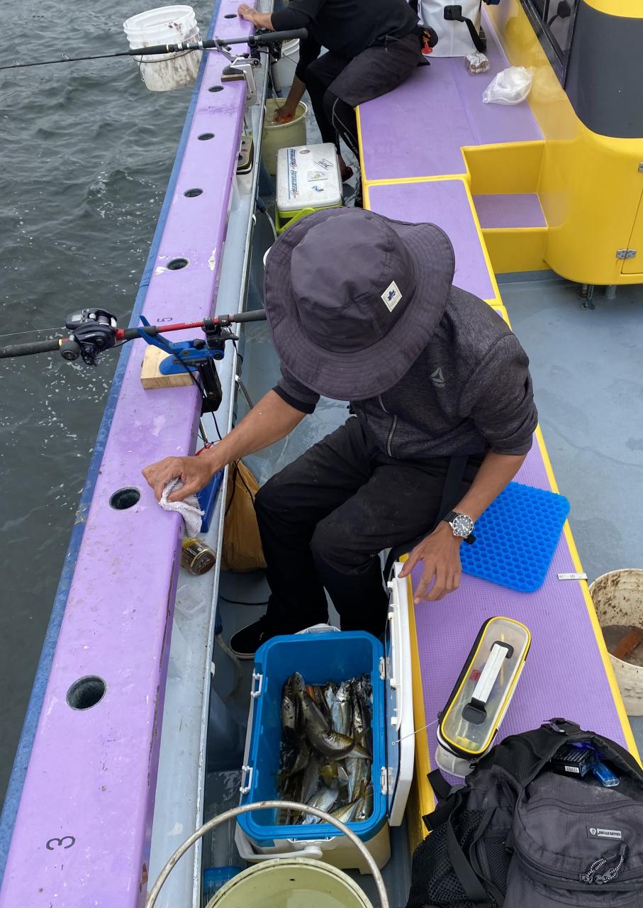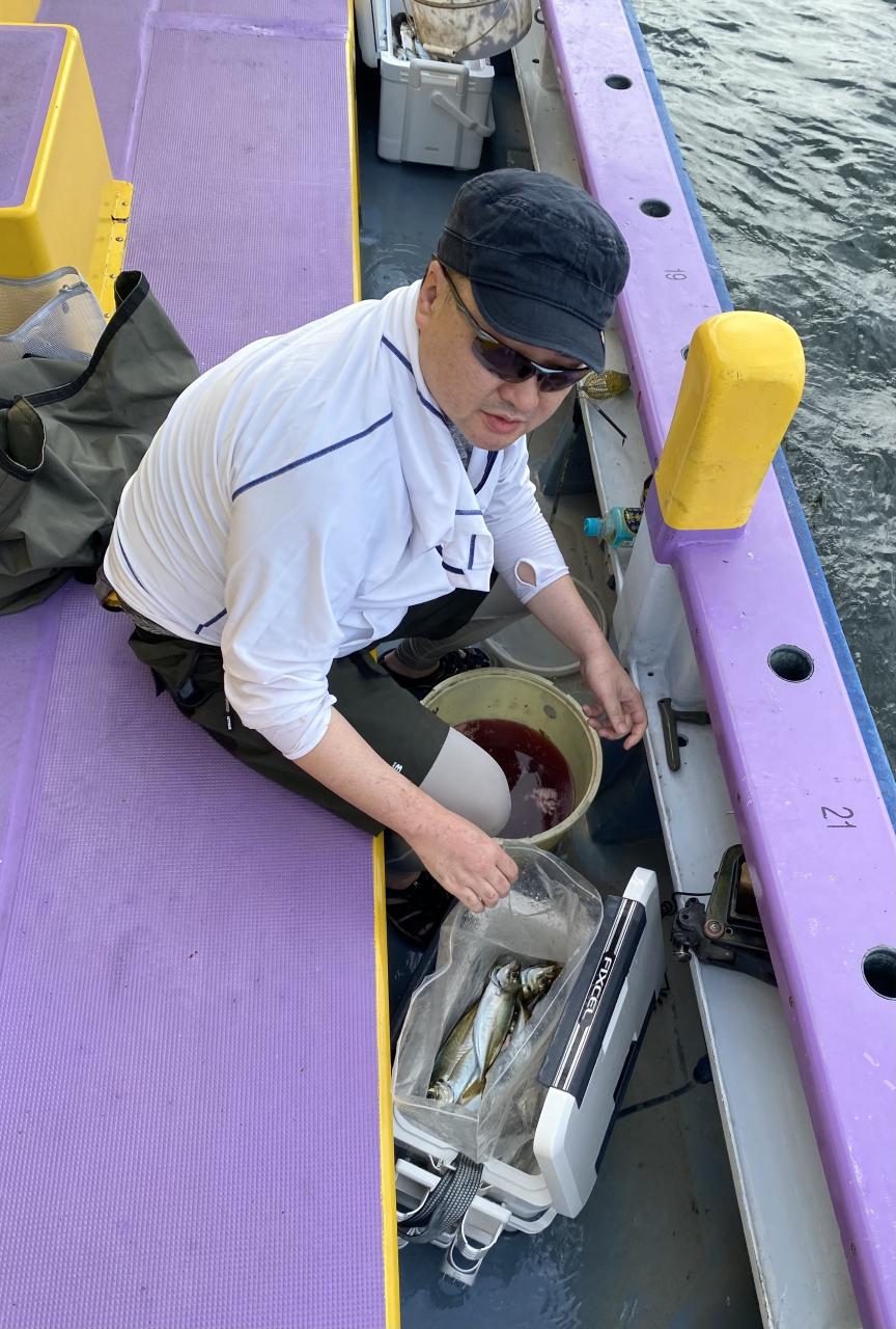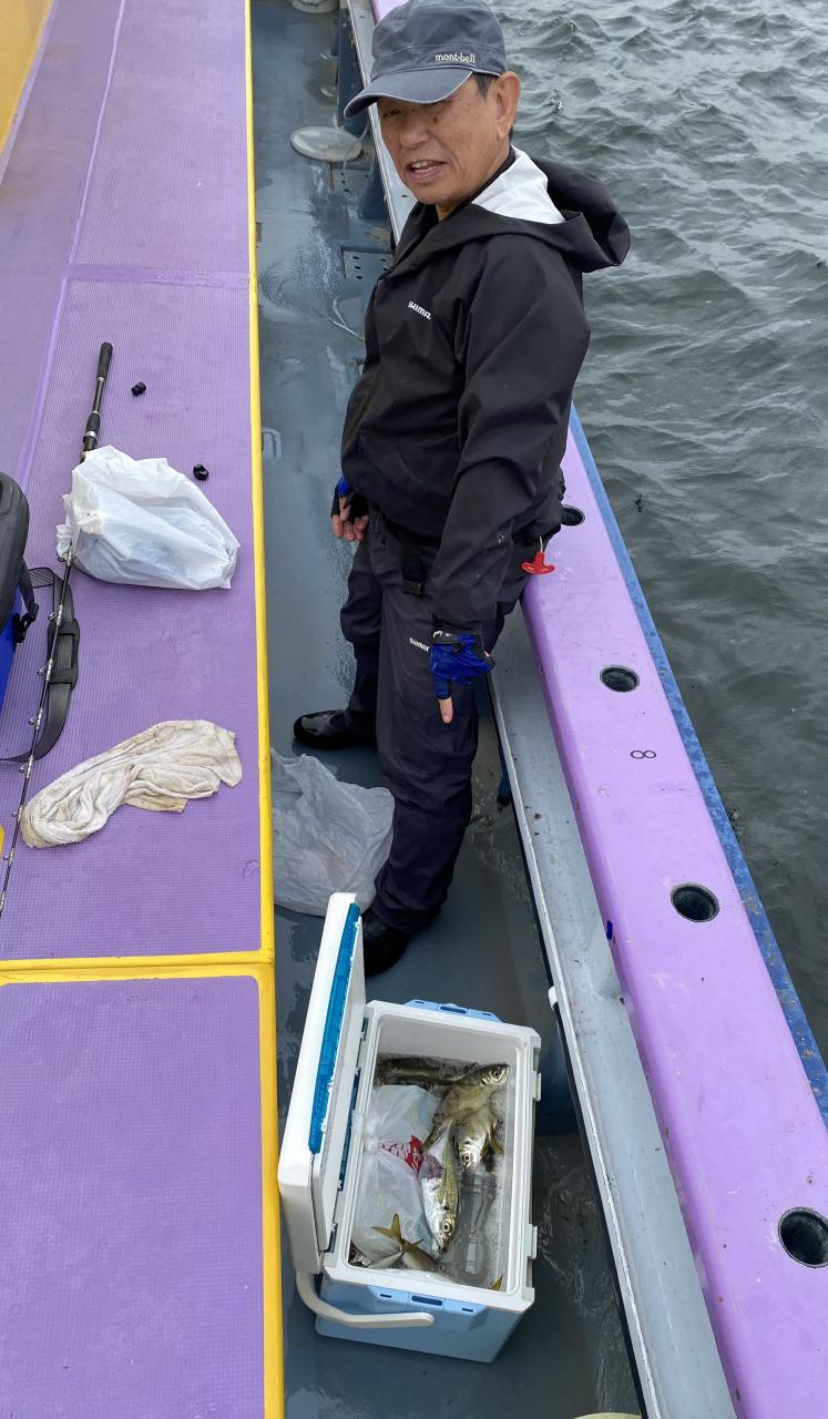 朝イチチャンスタイムからスタート!後に反応が台船の中へと消えてしまい台船東側へ。下潮で流れながらポツリ〜ポツリと。ハマった人は連チャンする時間もありで!型は中型〜良型主体でしたが、ドラゴン級も!