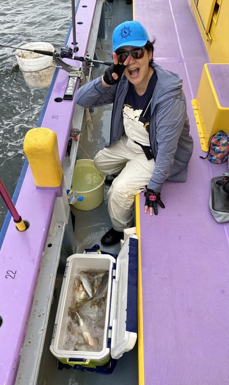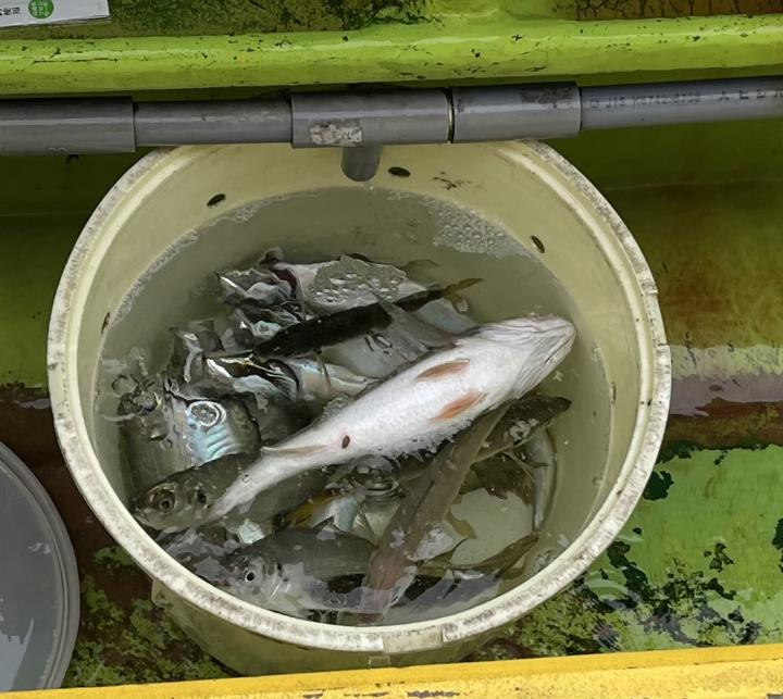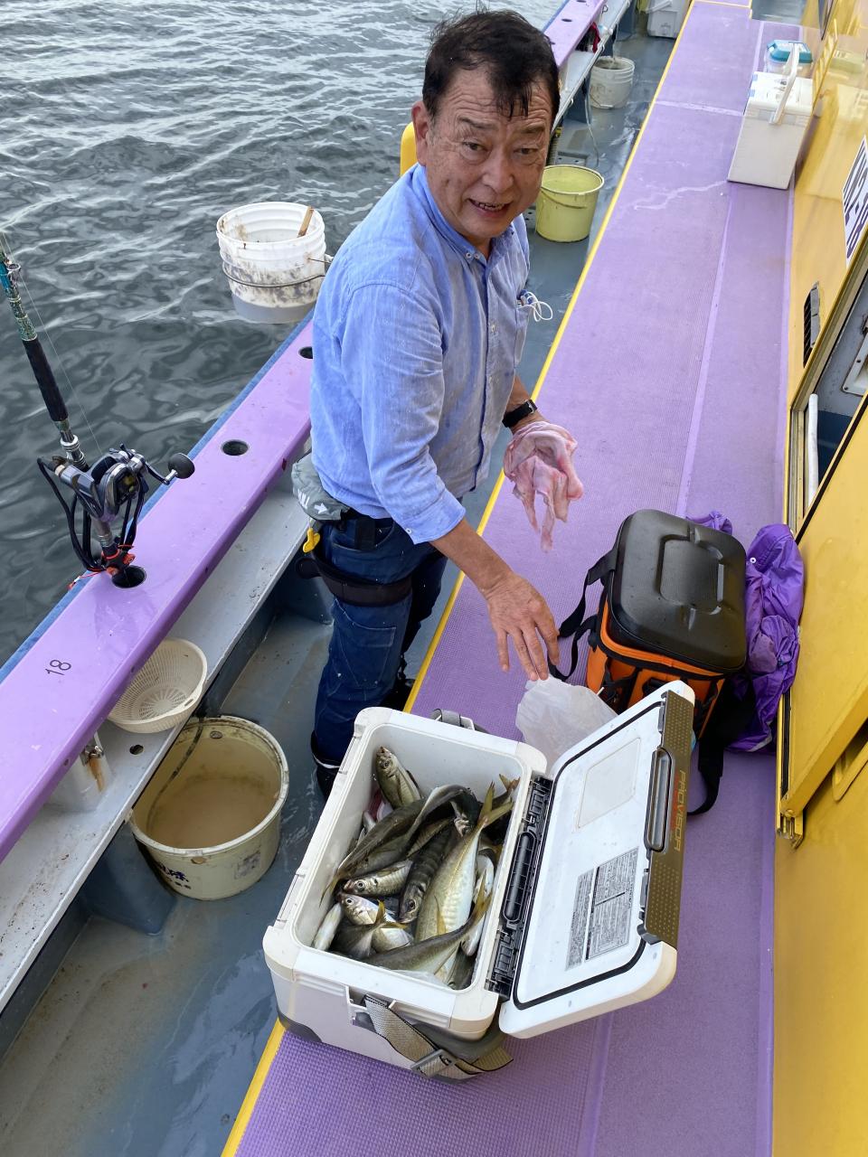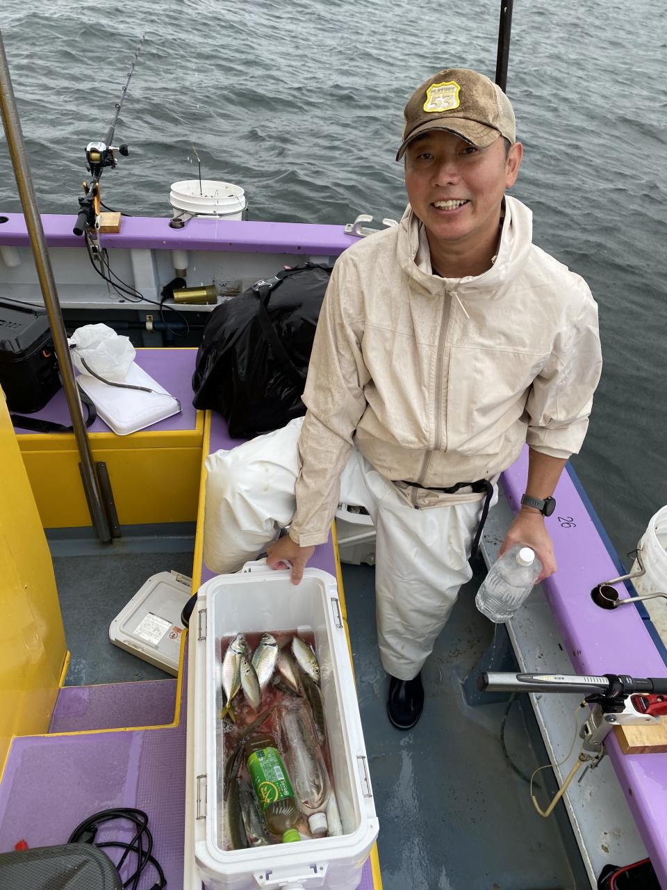 朝イチチャンスタイムからスタート!後に反応が台船の中へと消えてしまい台船東側へ。下潮で流れながらポツリ〜ポツリと。ハマった人は連チャンする時間もありで!型は中型〜良型主体でしたが、ドラゴン級も!