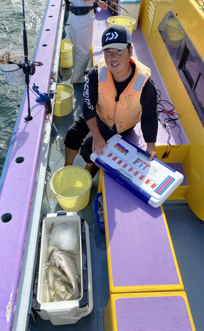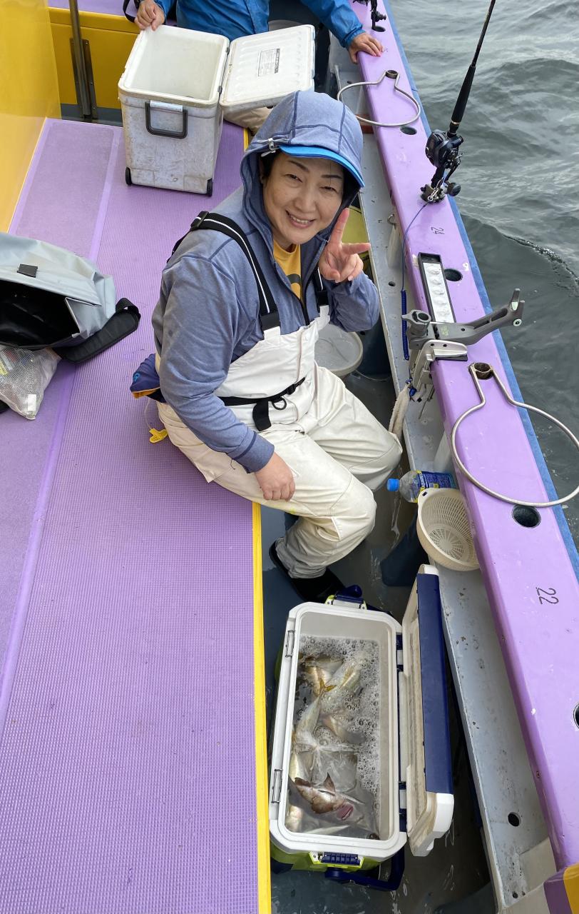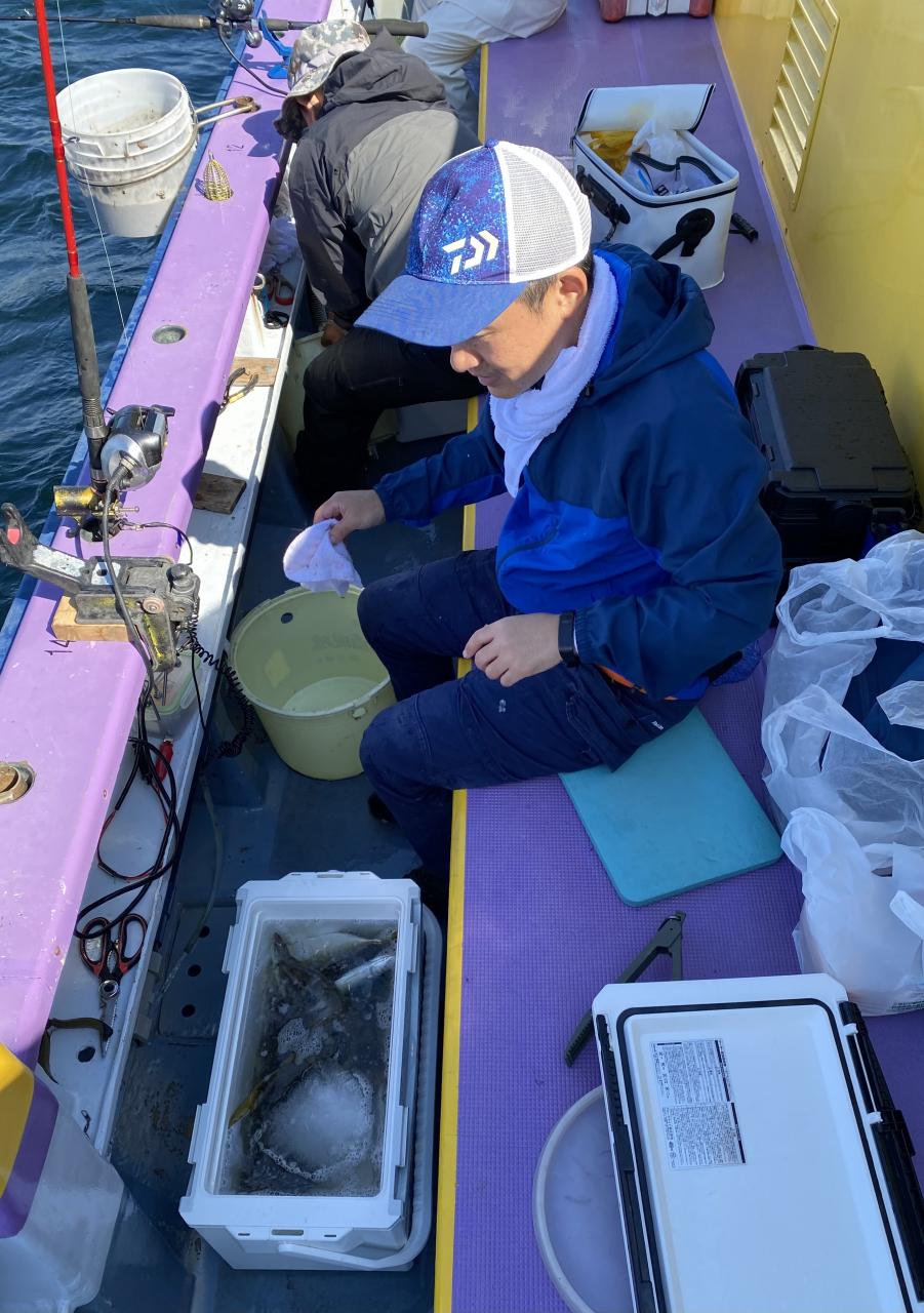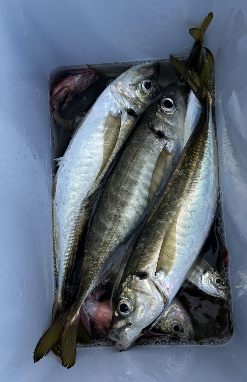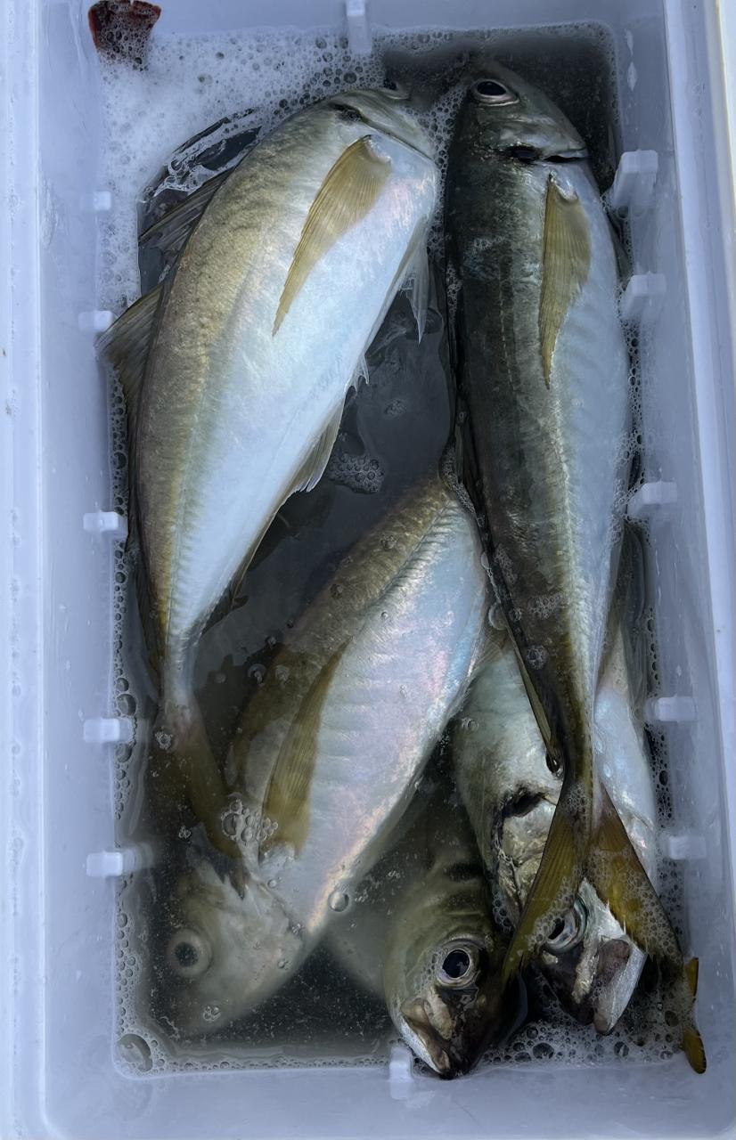 朝イチはチャンスタイム!その後、潮止まりから上潮が速くなるまでもアタリ出せる人はアタリあり、ポツリ〜ポツリと追加!後半は探索へ向かうも海悪く…。ラストは上潮で流れて数匹追加でした!