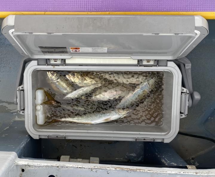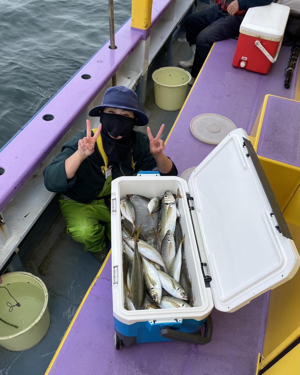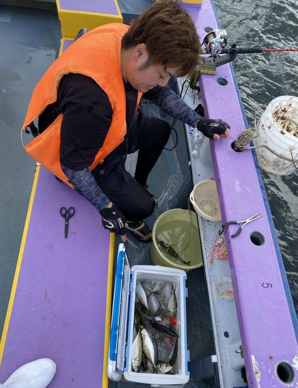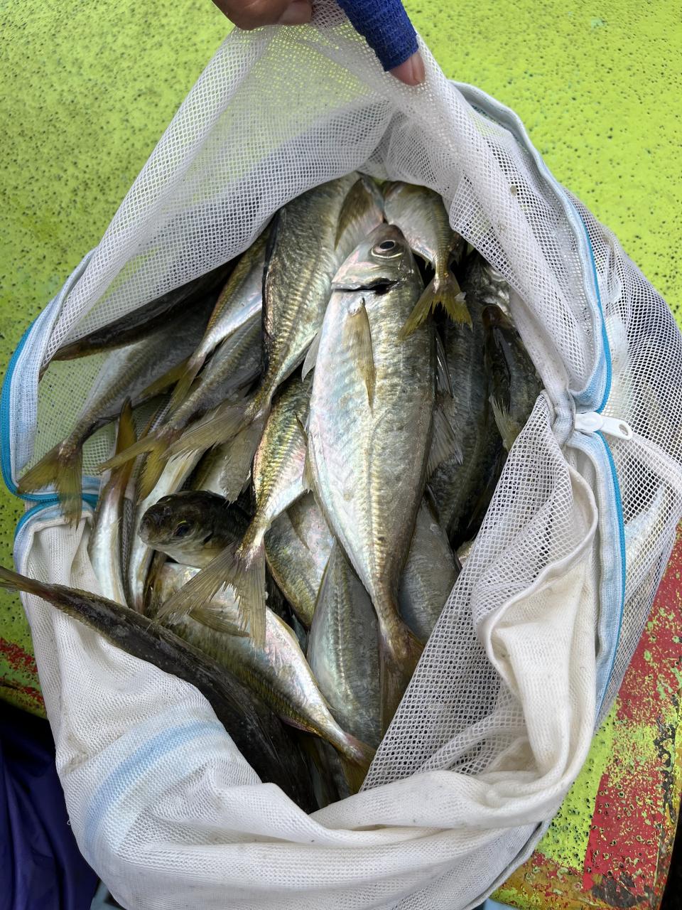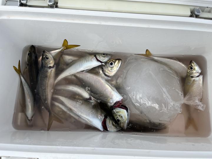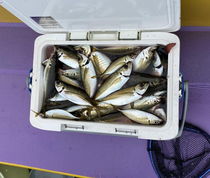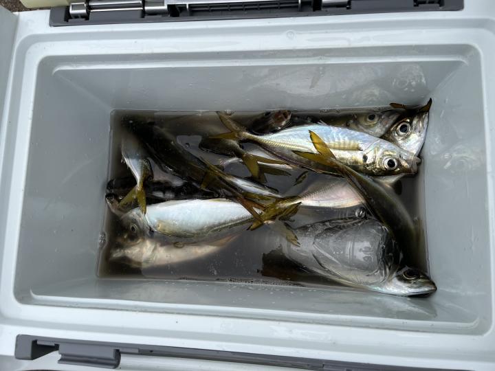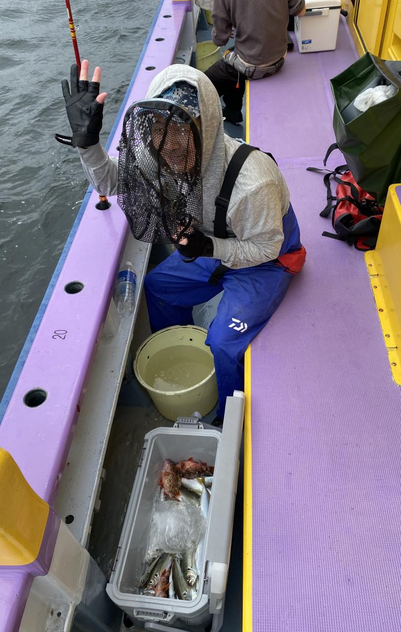 朝イチはチャンスタイム!その後、潮止まりから上潮が速くなるまでもアタリ出せる人はアタリあり、ポツリ〜ポツリと追加!後半は探索へ向かうも海悪く…。ラストは上潮で流れて数匹追加でした!