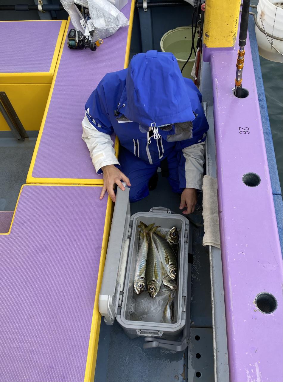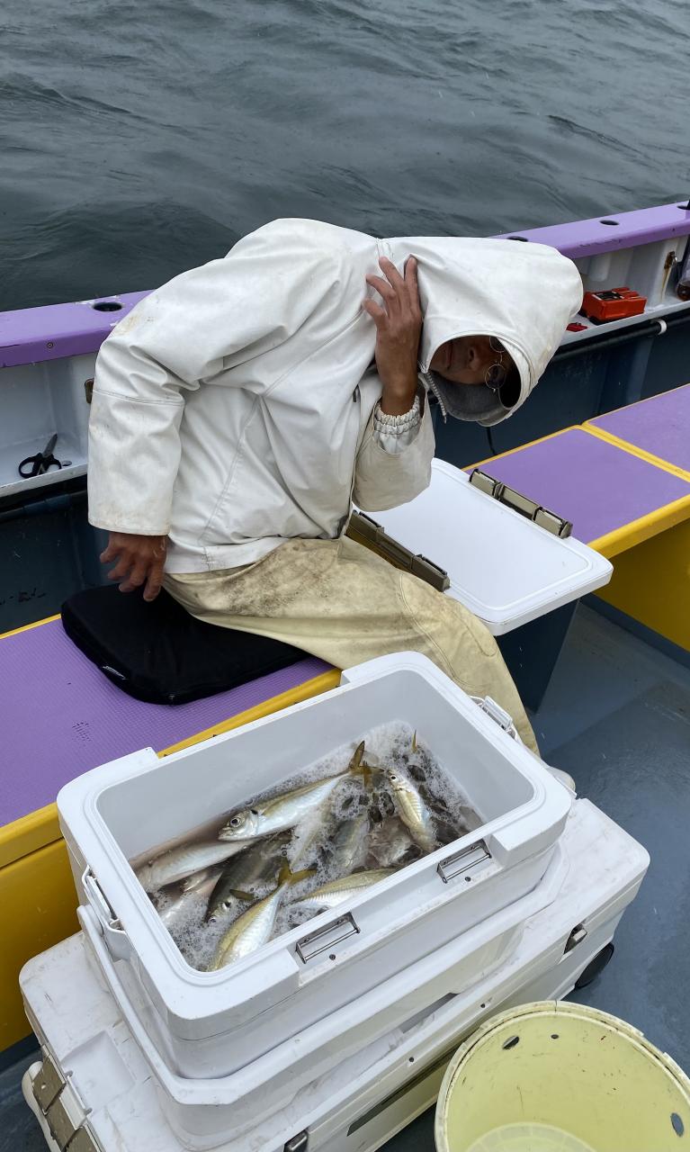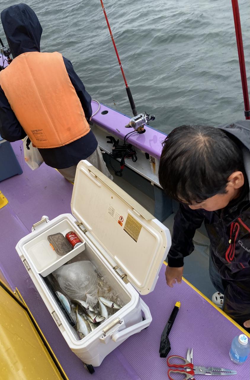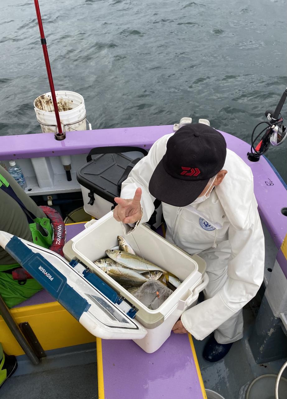 雨、風予報もまだ悪くなってはいませんが予報では間もなく雨が降り出すと北風も強くなるとの予報なので、猿島金アジポイントへポイント到着間もなく悪天候となり昨日より猿島金アジサイズはまちまちでしたがアジの顔見れていたので我慢の釣りとなりました