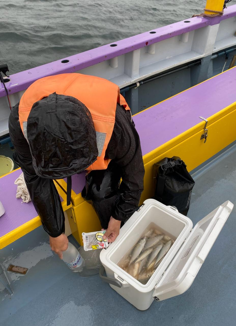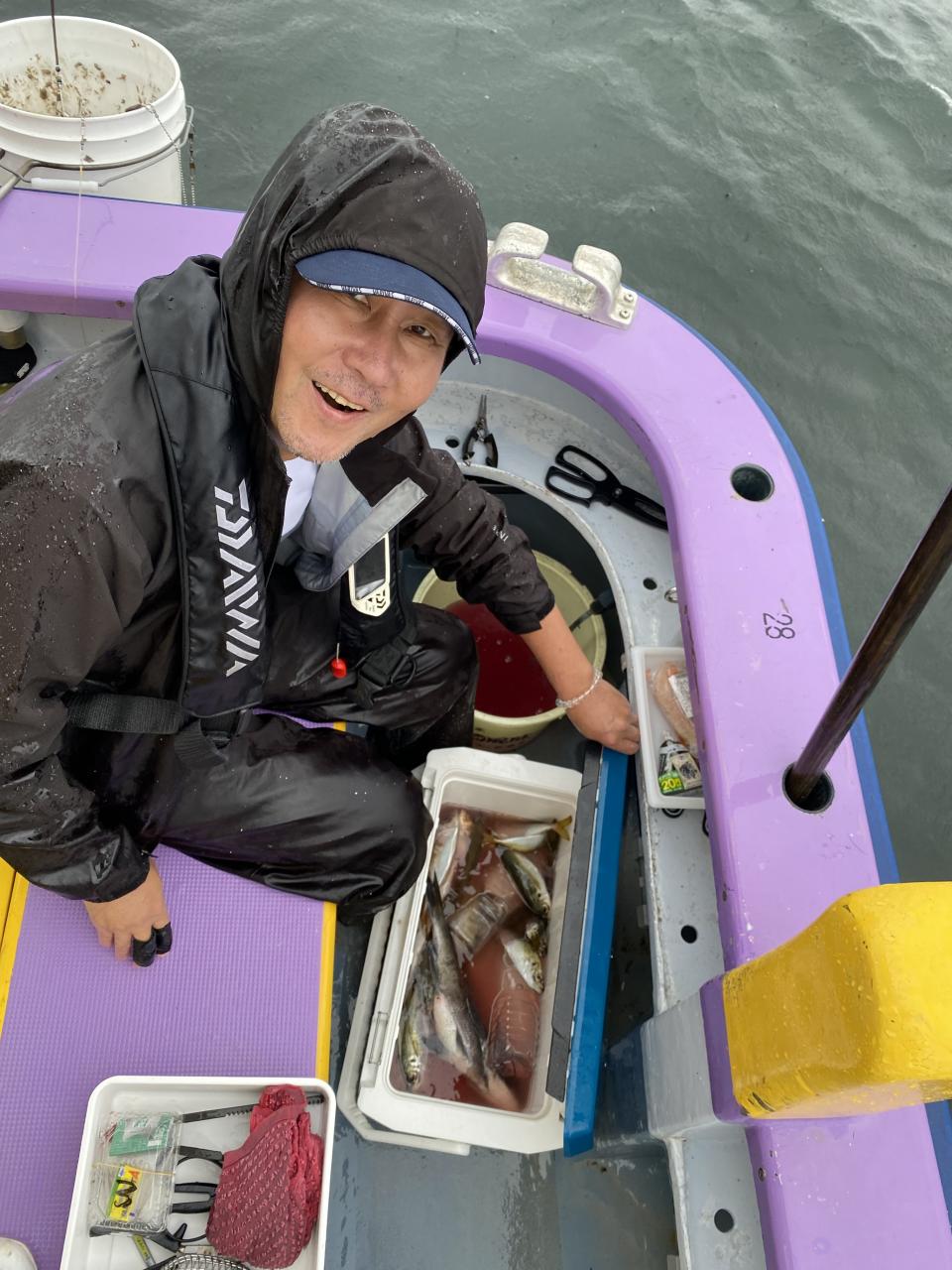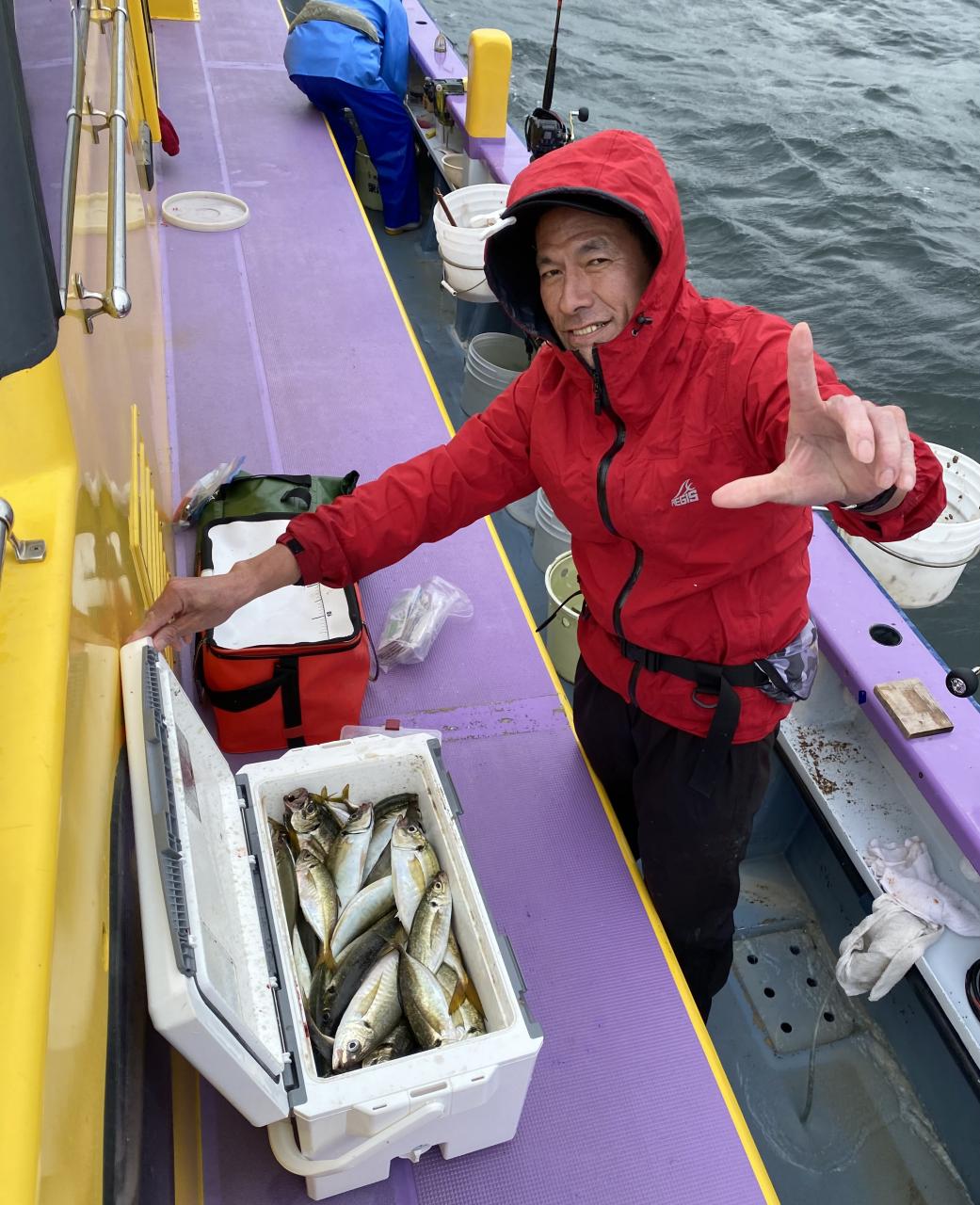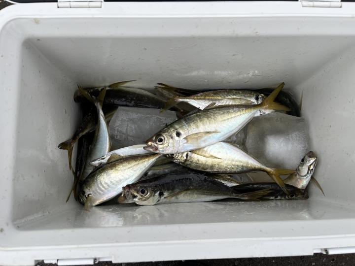 雨、風予報もまだ悪くなってはいませんが予報では間もなく雨が降り出すと北風も強くなるとの予報なので、猿島金アジポイントへポイント到着間もなく悪天候となり昨日より猿島金アジサイズはまちまちでしたがアジの顔見れていたので我慢の釣りとなりました