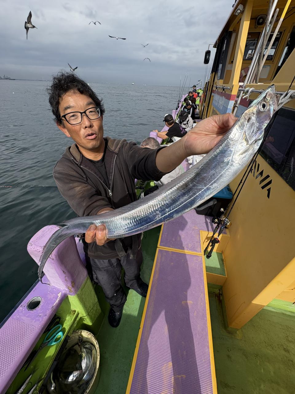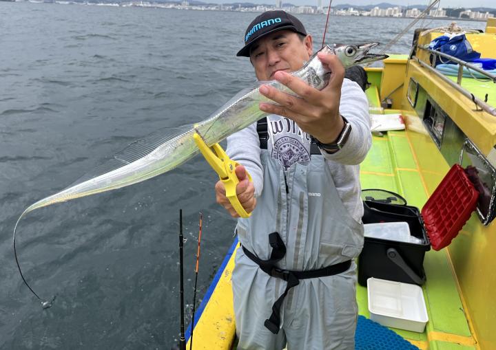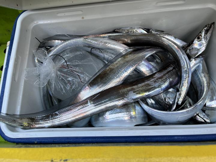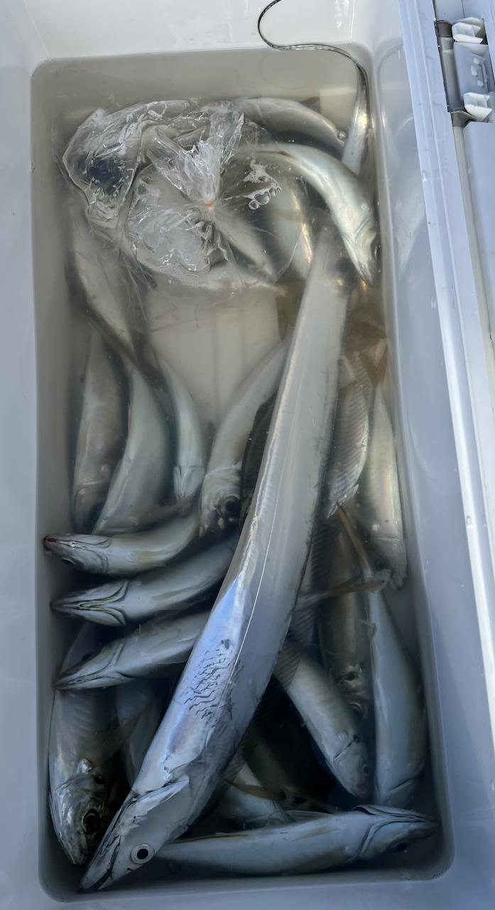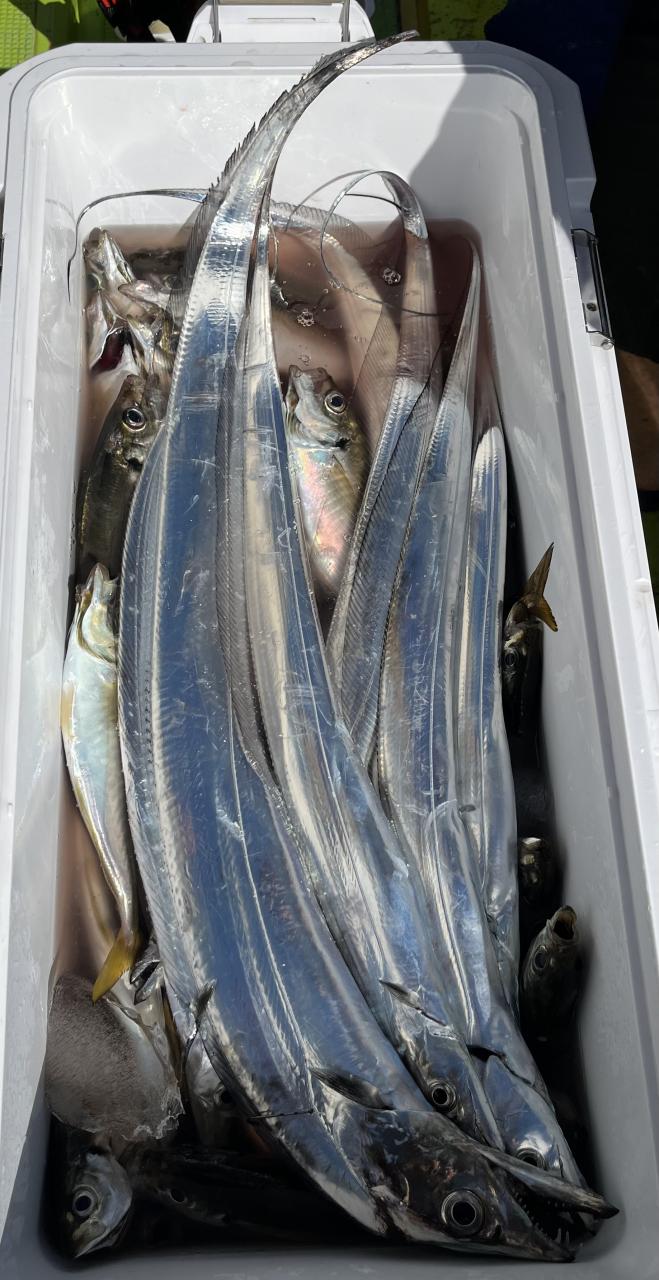 朝イチ、モーニングサービスありでヒト流し目で皆さんタチウオゲット、テンヤではドラゴン級も出ました❗️