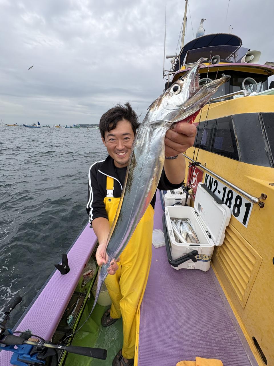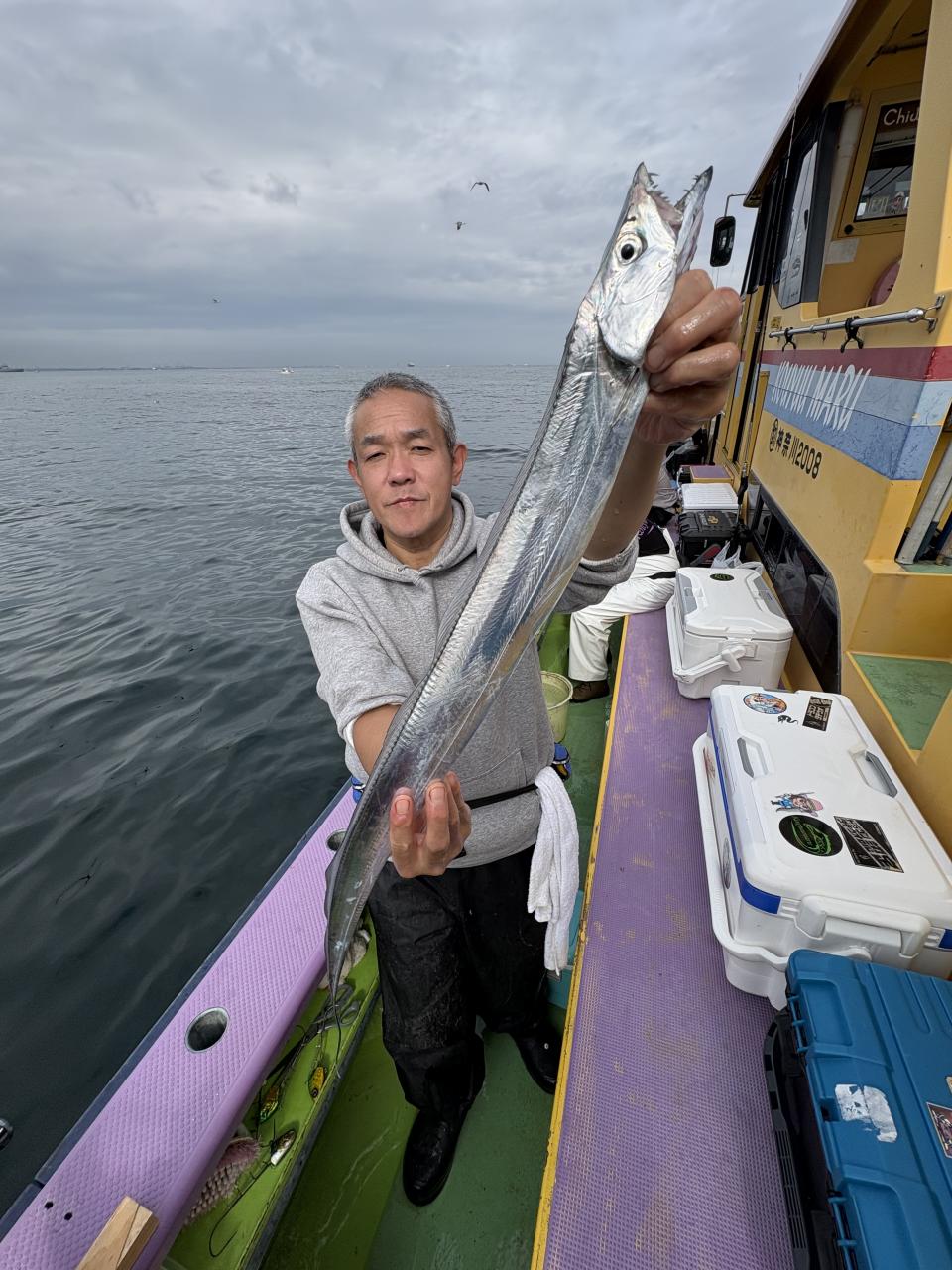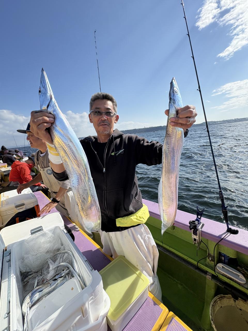 朝イチ、モーニングサービスありでヒト流し目で皆さんタチウオゲット、テンヤではドラゴン級も出ました❗️