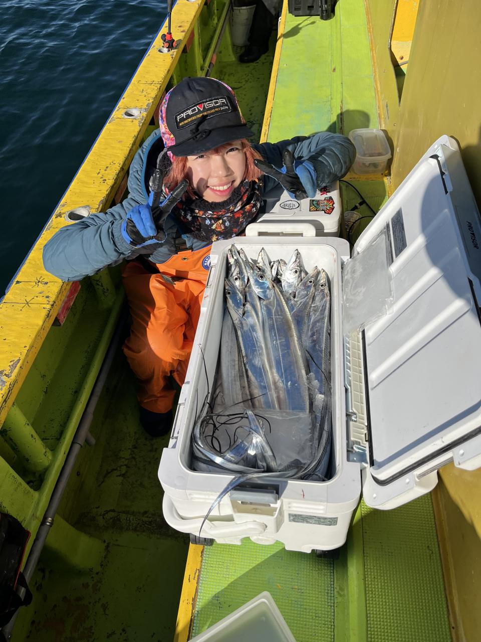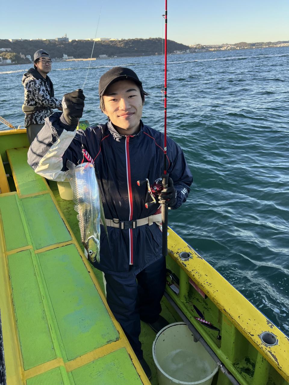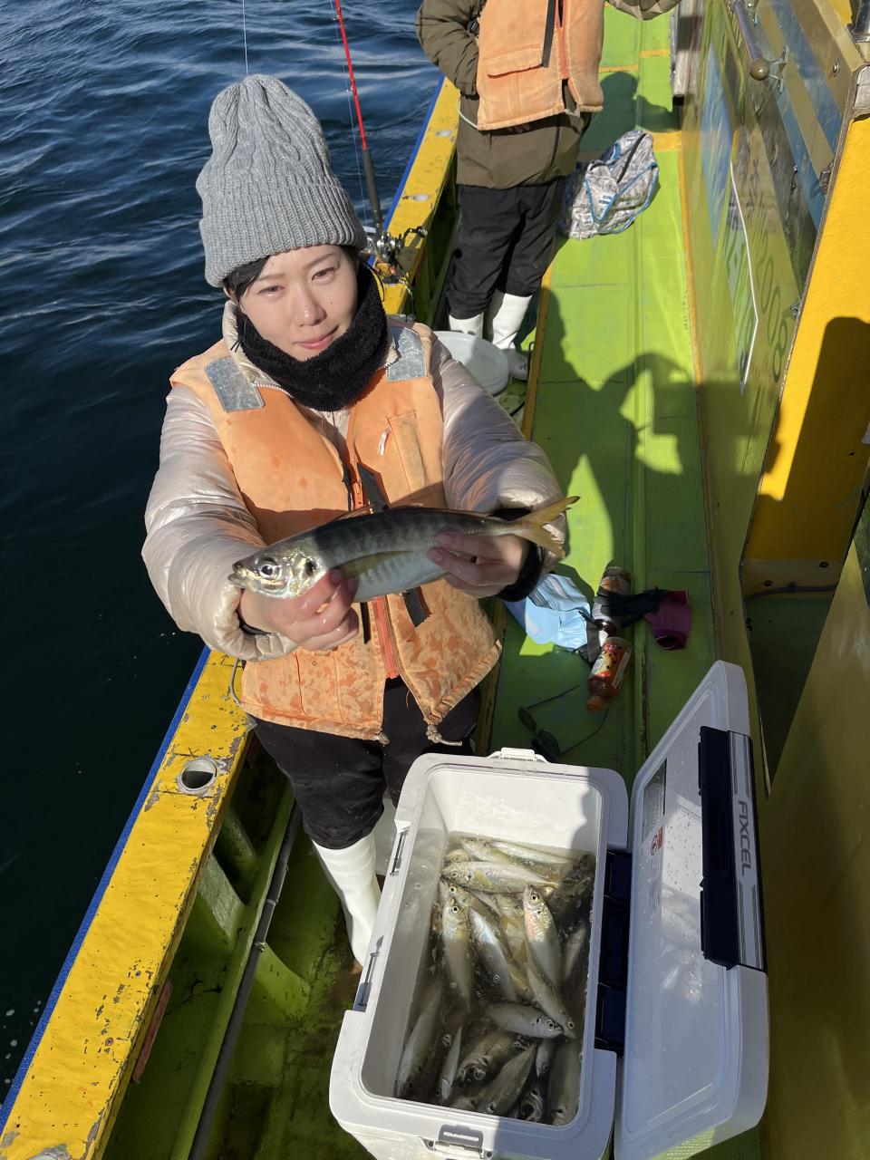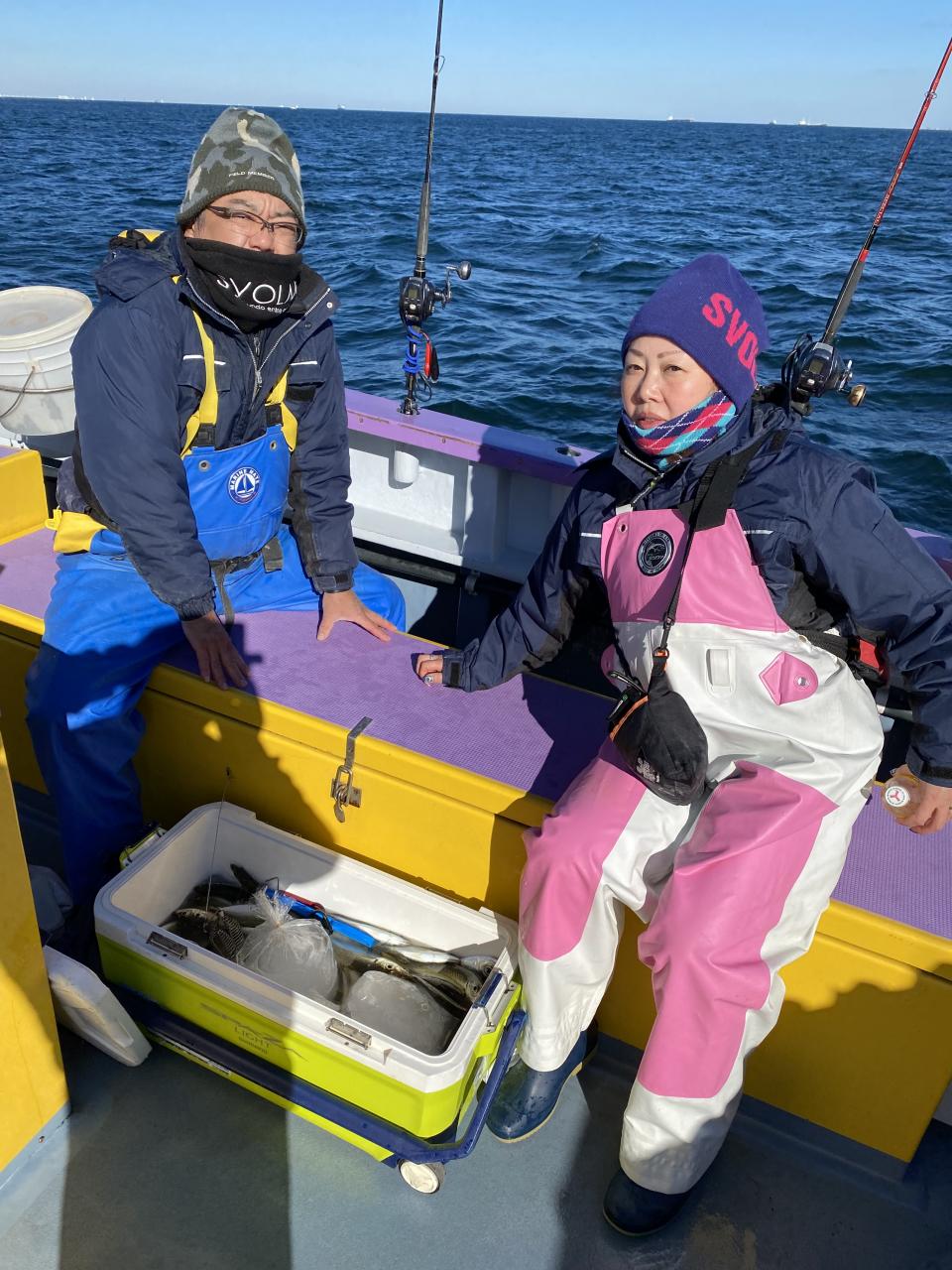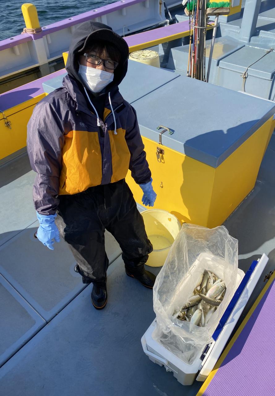 裕司船長、左舷側のお二人のお兄さん達、寒い中頑張ってレクチャー通りのロッドアクションでタチウオゲット✌️