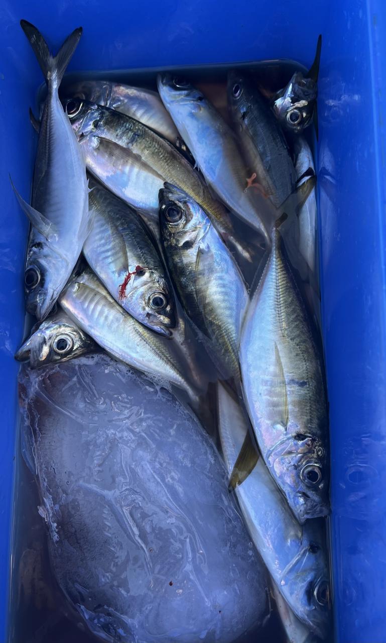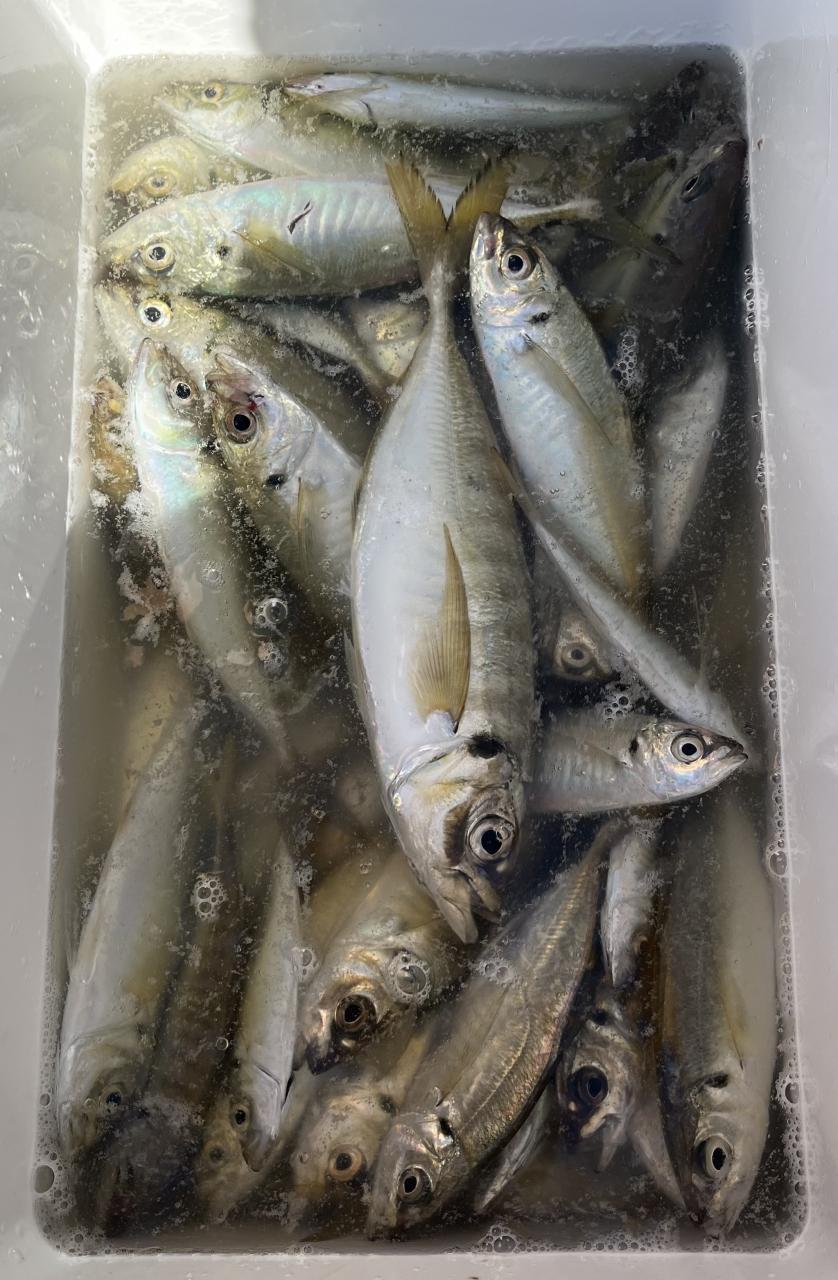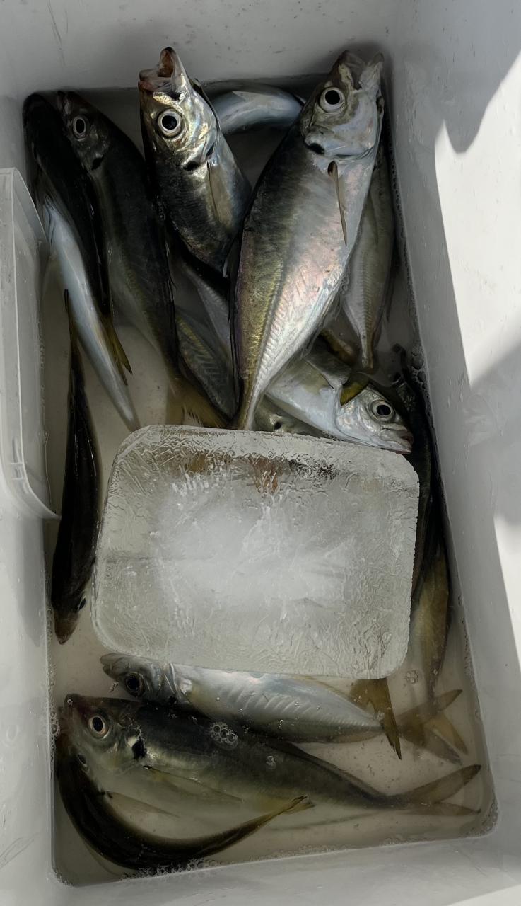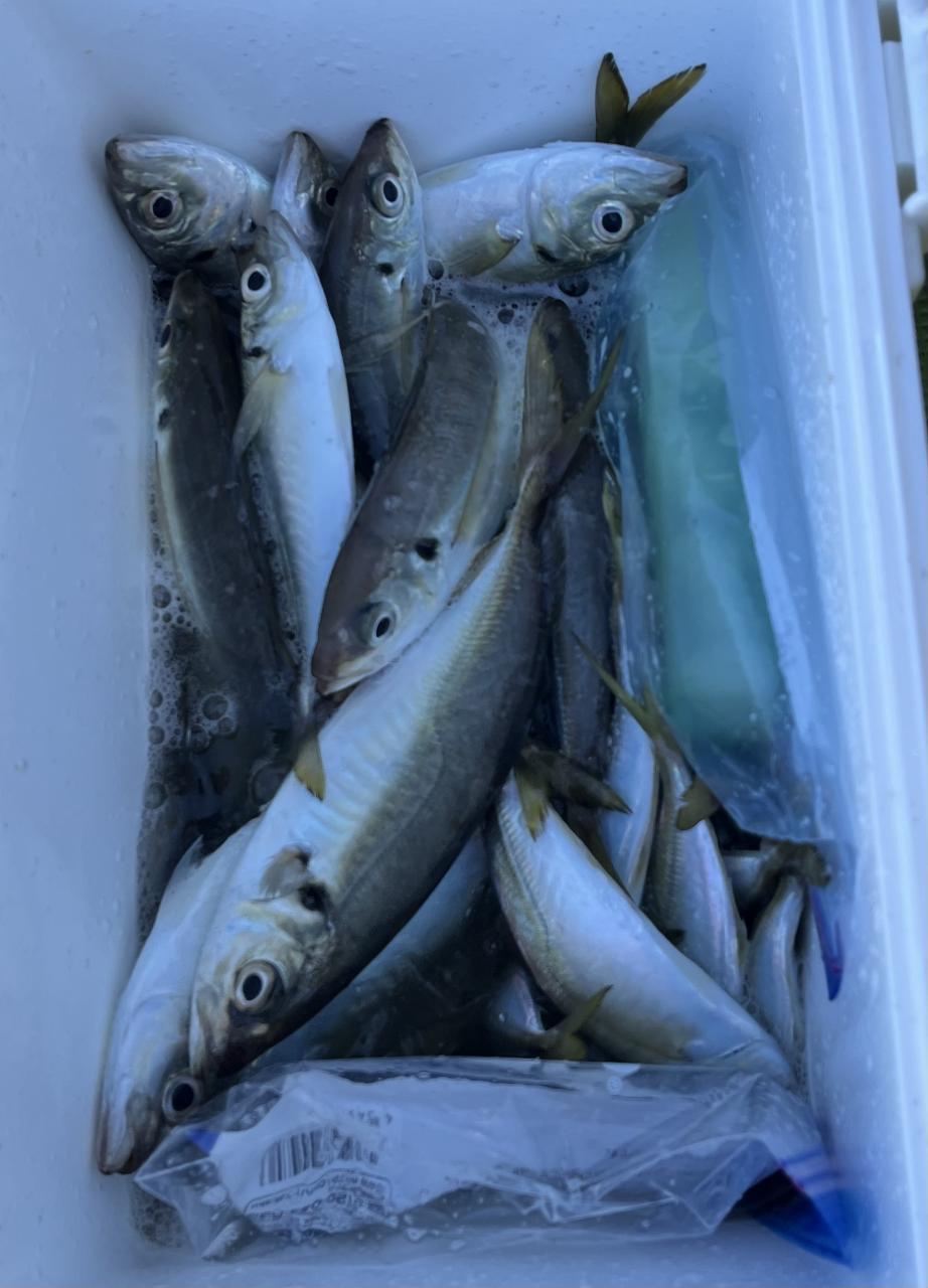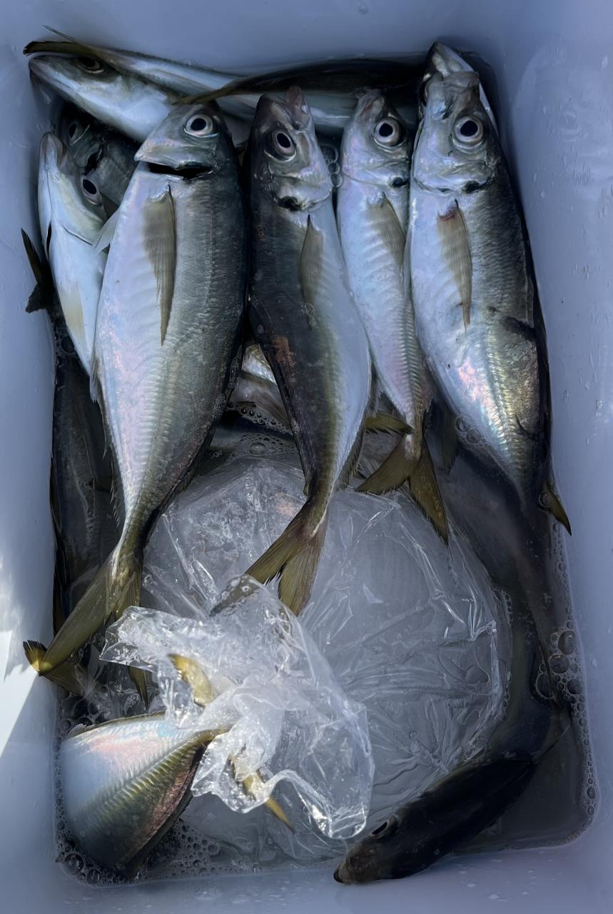 朝のうちは昨日釣れた様な大型アジ狙いでチャレンジも大型アジの水面バラシのみで、型見たのは中アジでダブルもありましたが後々が無く、昨日後半のポイントもやりたかったんですが仲間の「型見れてます❗️」とのお言葉に甘えて大移動して沖上がりまで移動なくやれました⭕️