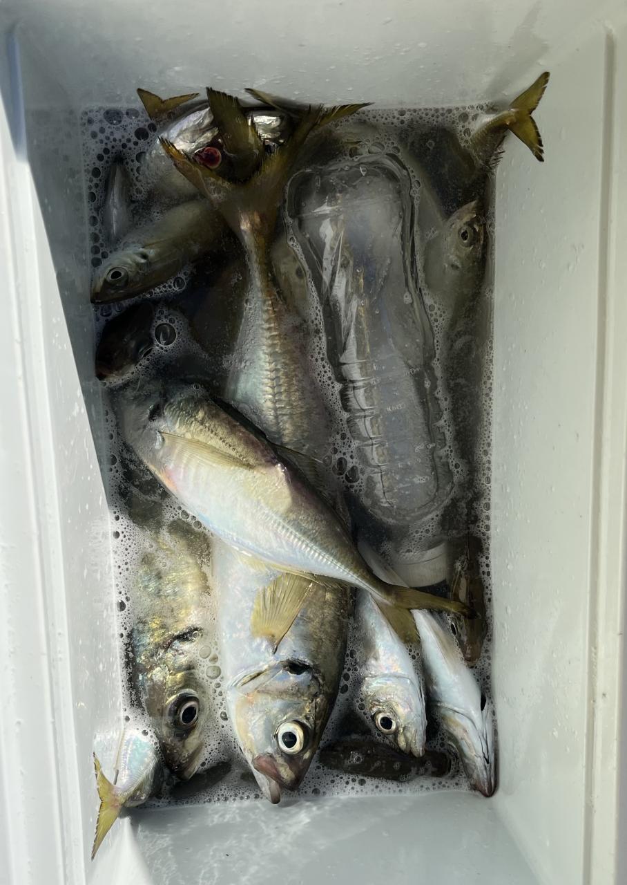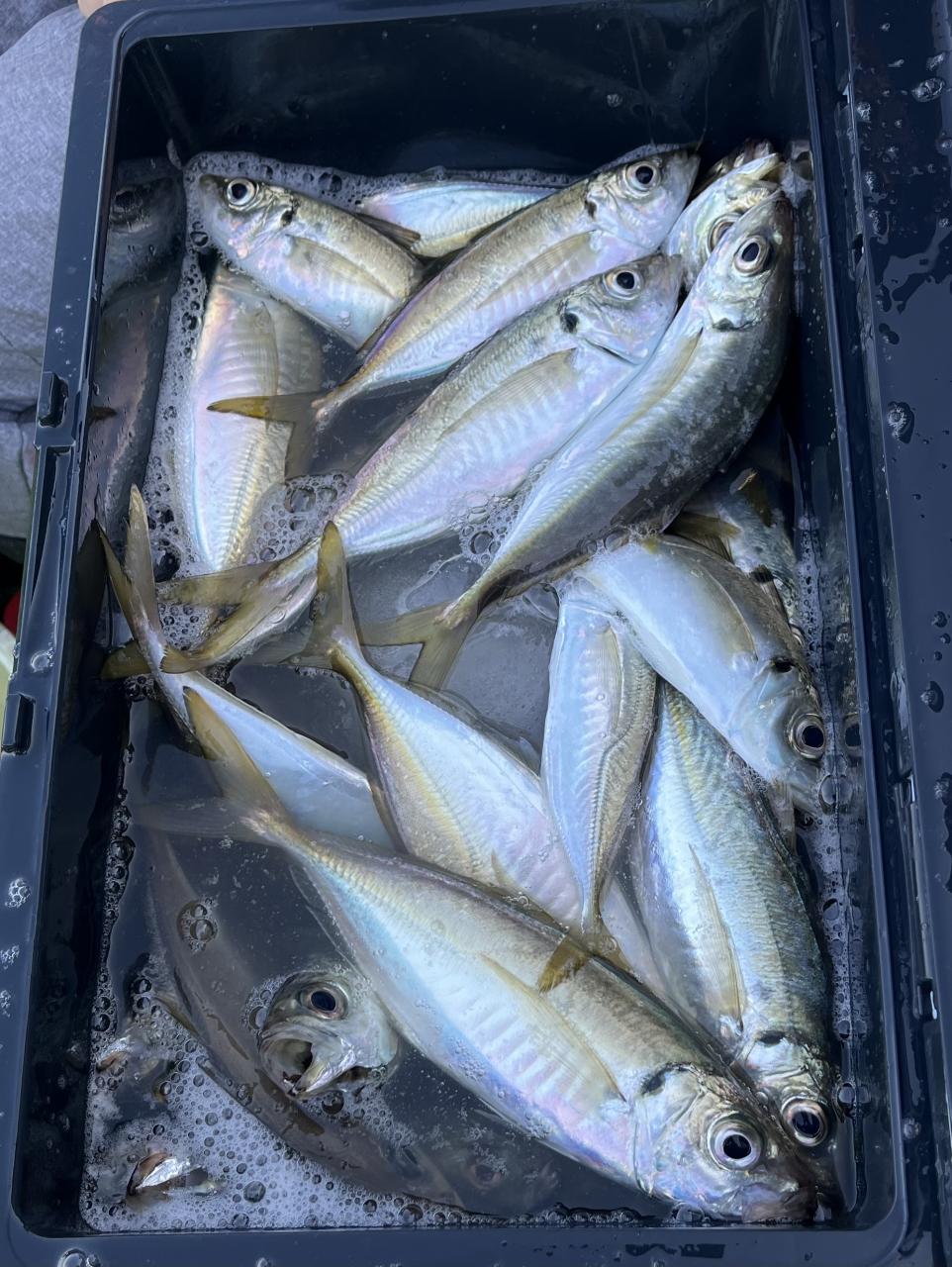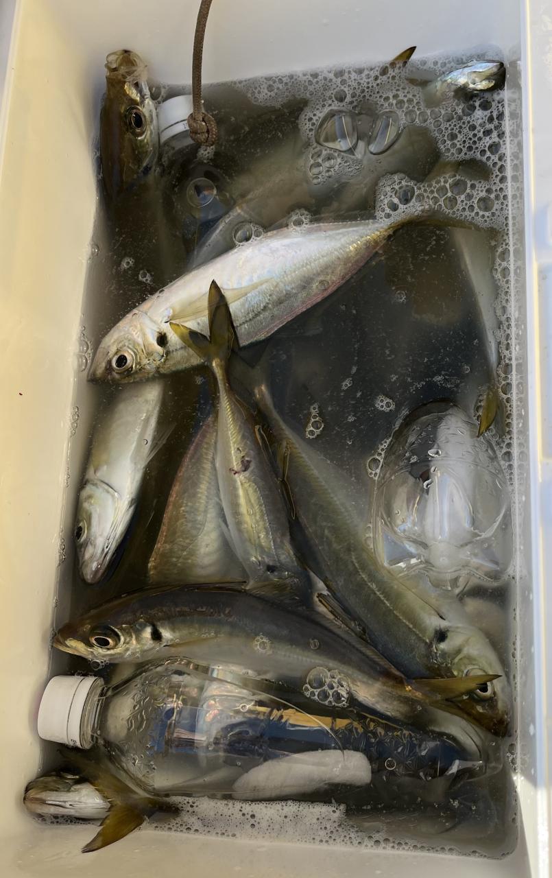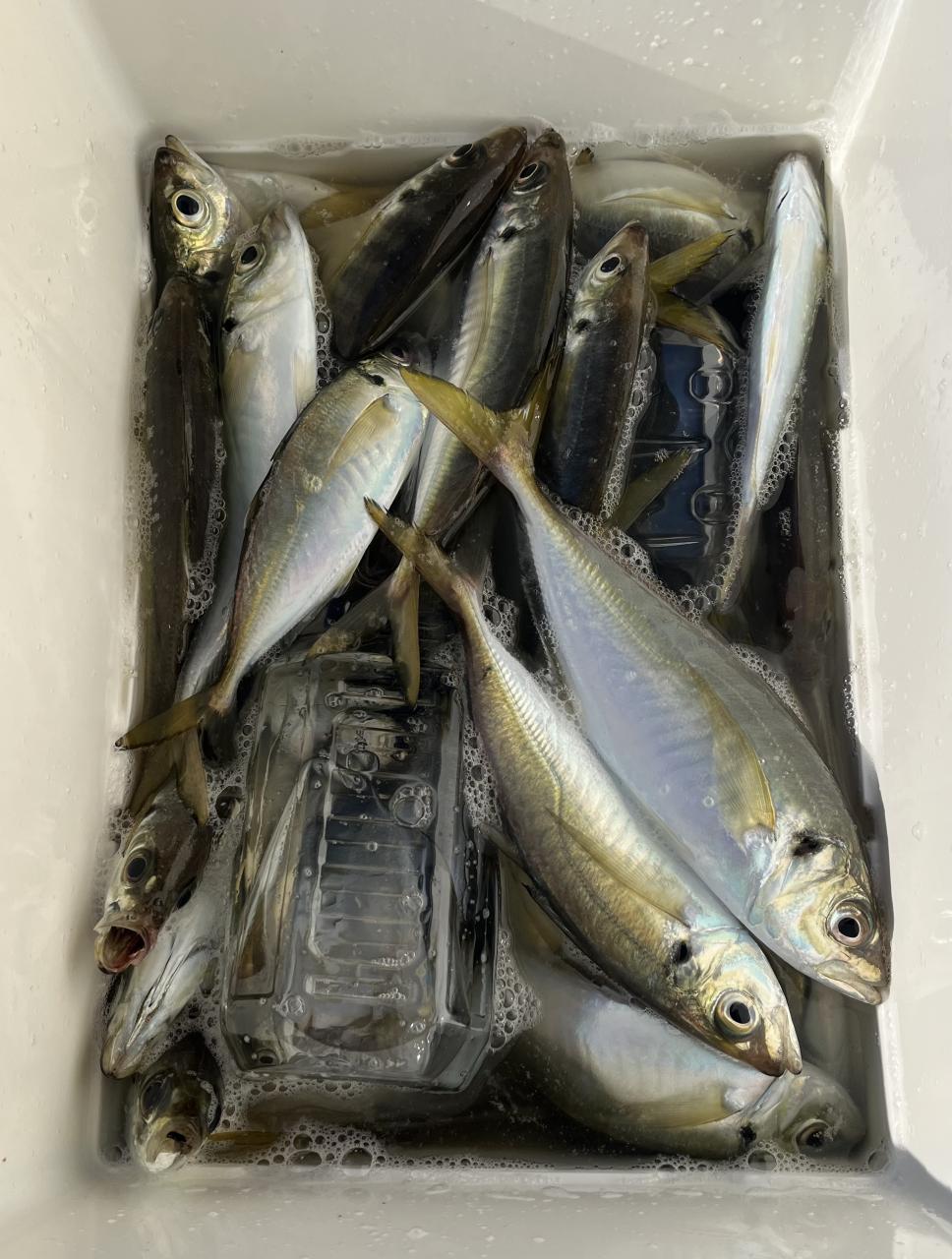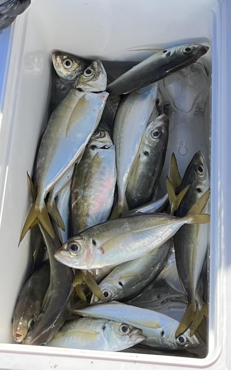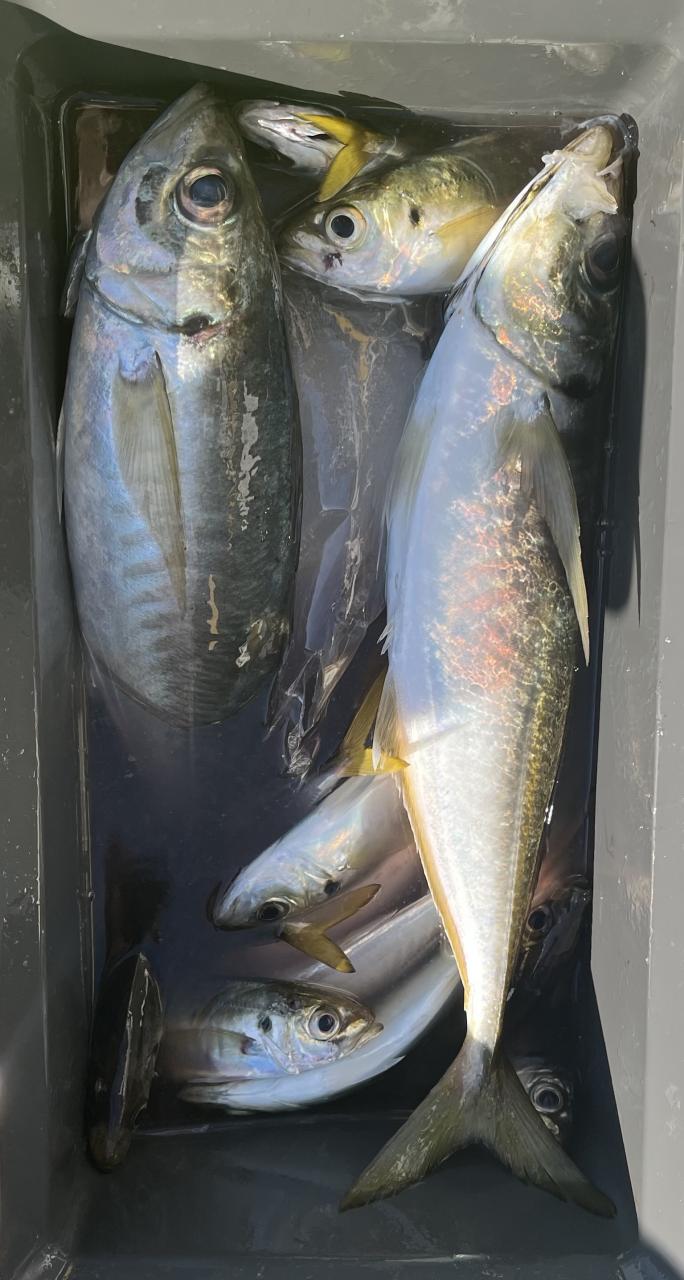 朝のうちは昨日釣れた様な大型アジ狙いでチャレンジも大型アジの水面バラシのみで、型見たのは中アジでダブルもありましたが後々が無く、昨日後半のポイントもやりたかったんですが仲間の「型見れてます❗️」とのお言葉に甘えて大移動して沖上がりまで移動なくやれました⭕️