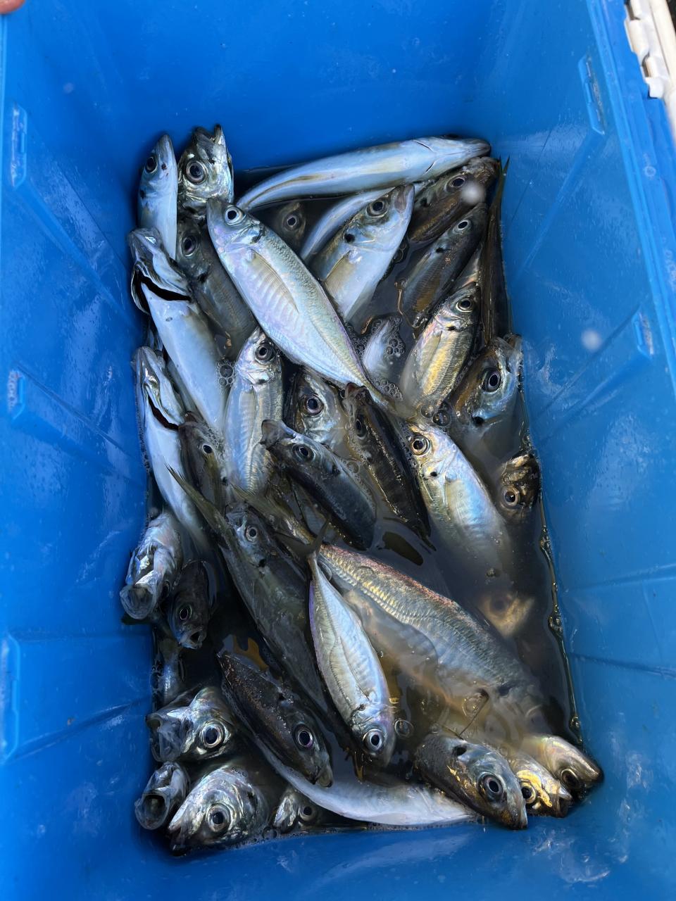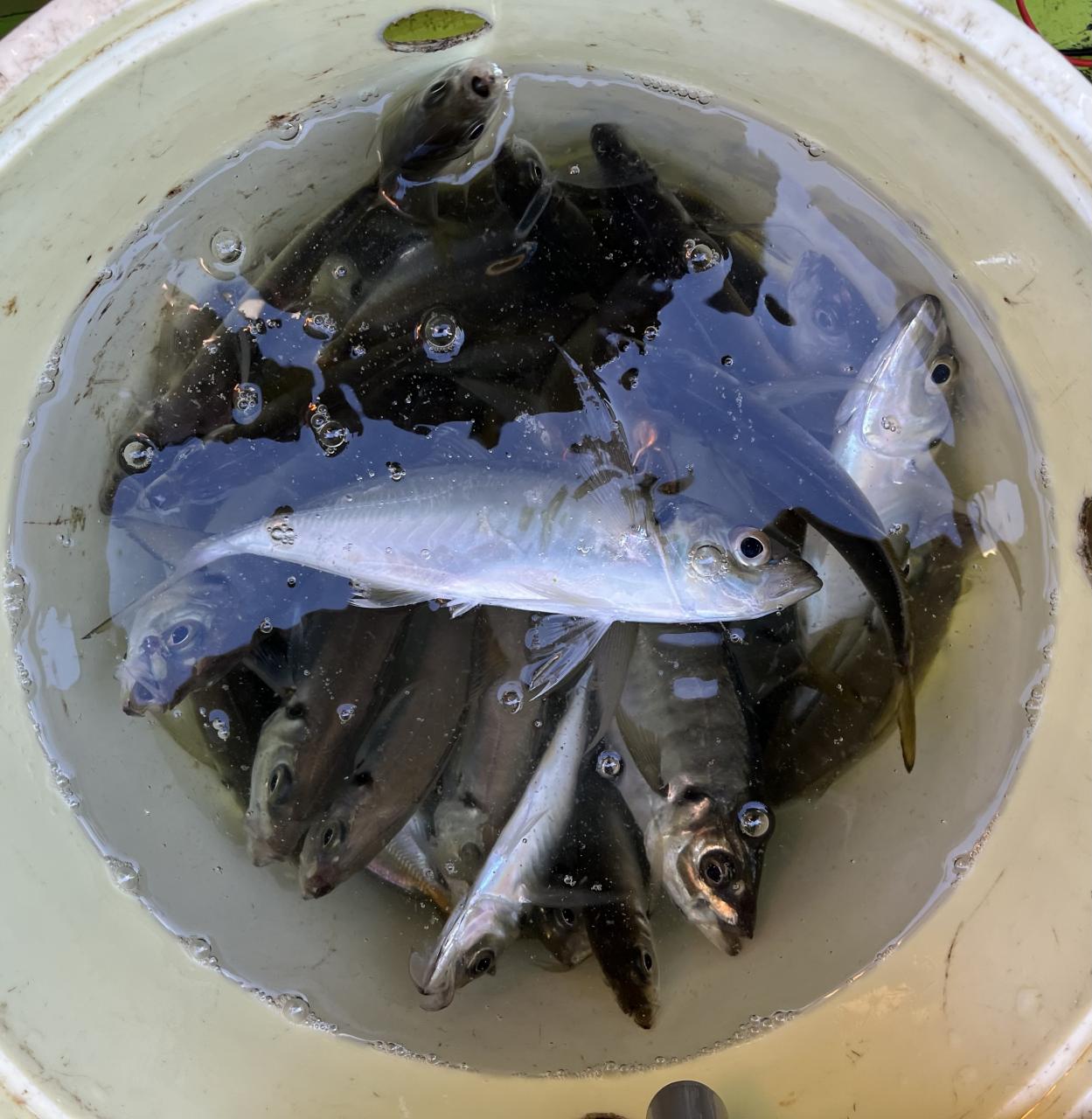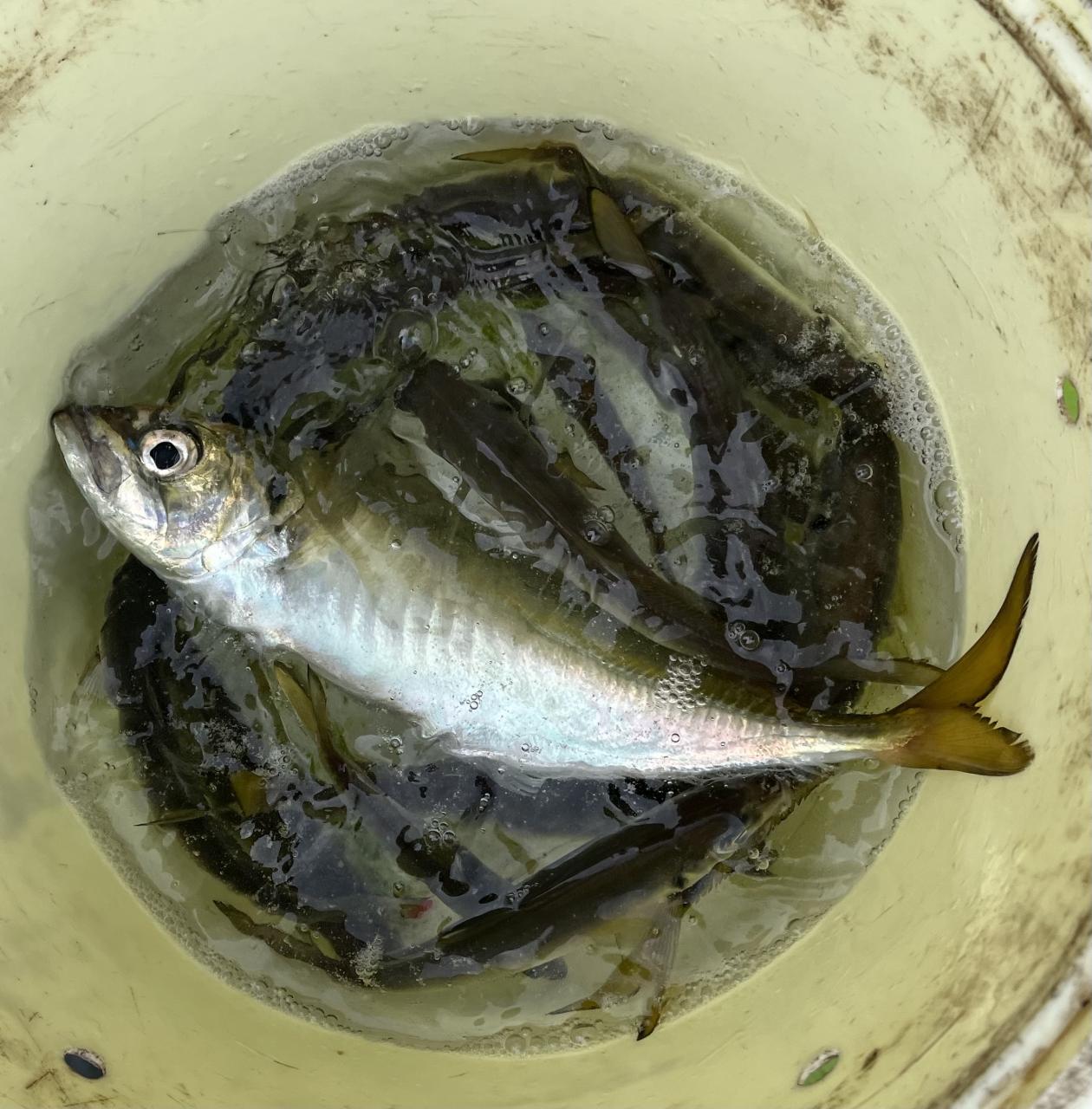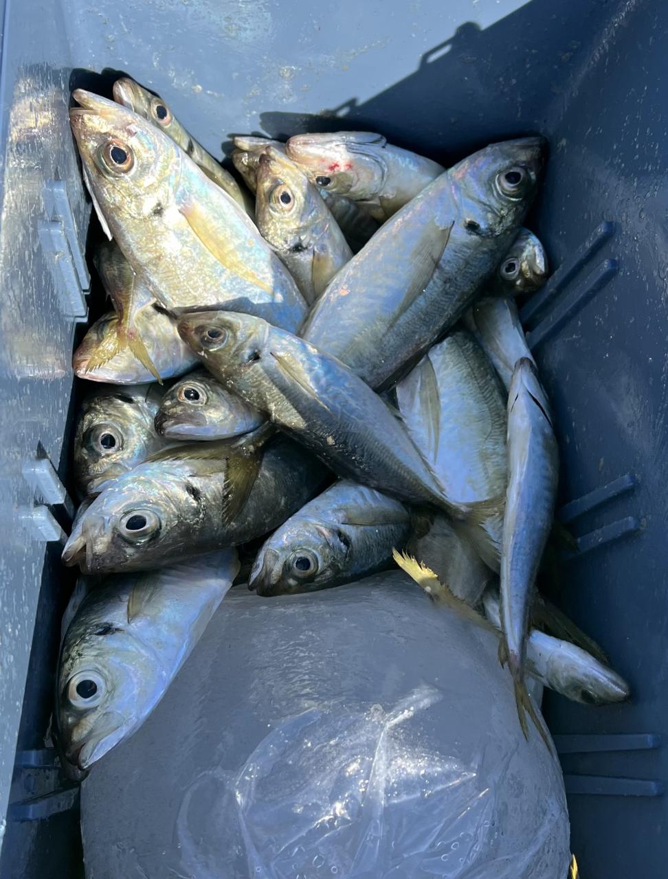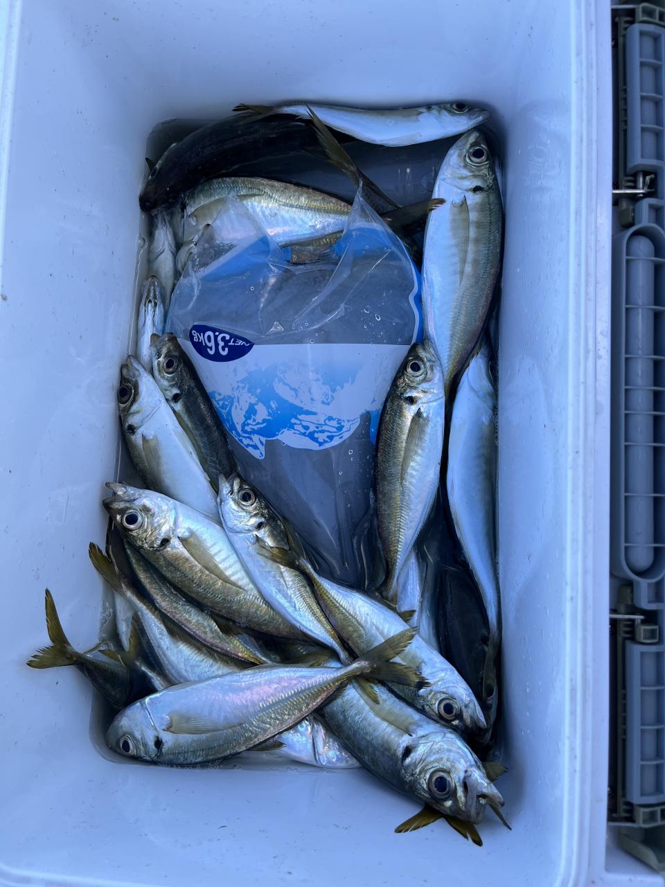 朝のうちは昨日釣れた様な大型アジ狙いでチャレンジも大型アジの水面バラシのみで、型見たのは中アジでダブルもありましたが後々が無く、昨日後半のポイントもやりたかったんですが仲間の「型見れてます❗️」とのお言葉に甘えて大移動して沖上がりまで移動なくやれました⭕️