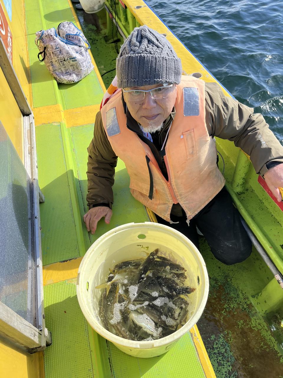 ラストのブツ待ち写真撮影なんですが「生きてるアジが捕まらない❌」魚屋さん何ですけど❓笑