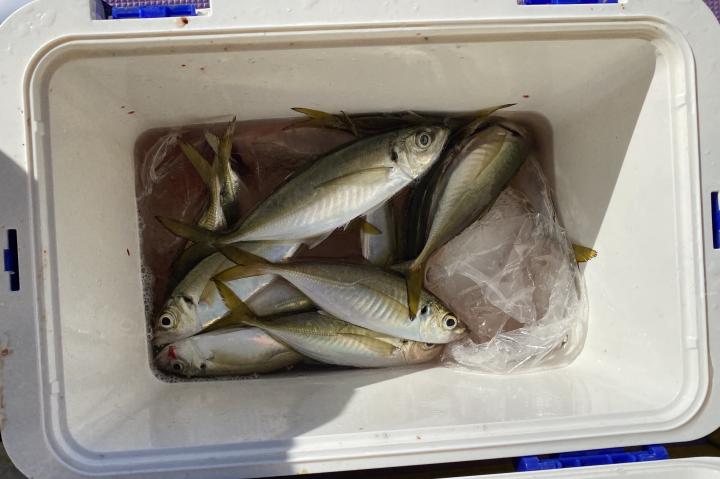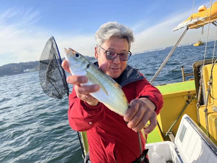 レンタルロッド多数で釣りデビュー戦の方も居るので、ビシが海底に着く感覚確認からのレクチャー後の出船、まずは浅場ポイントからの実釣開始で、小型交じりでしたが時折ダブルもありデビュー戦の方々も含め皆さん猿島金アジゲット✌️