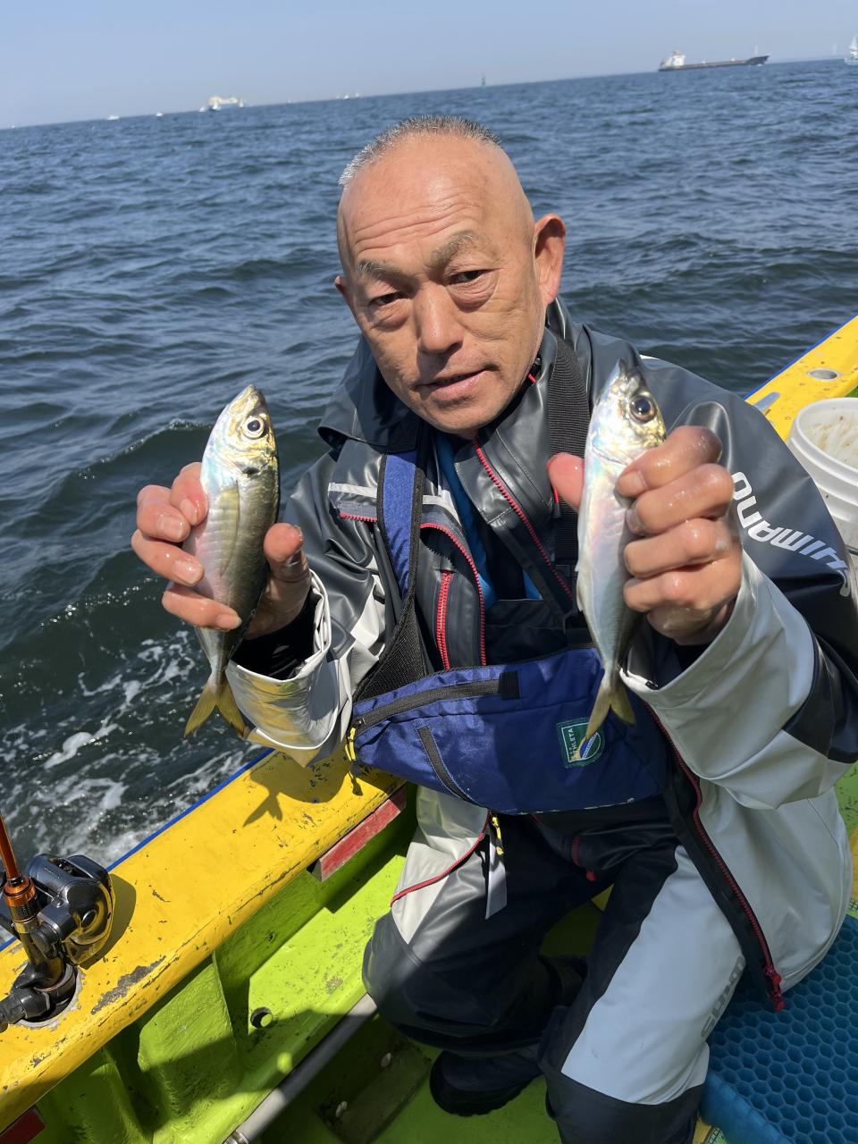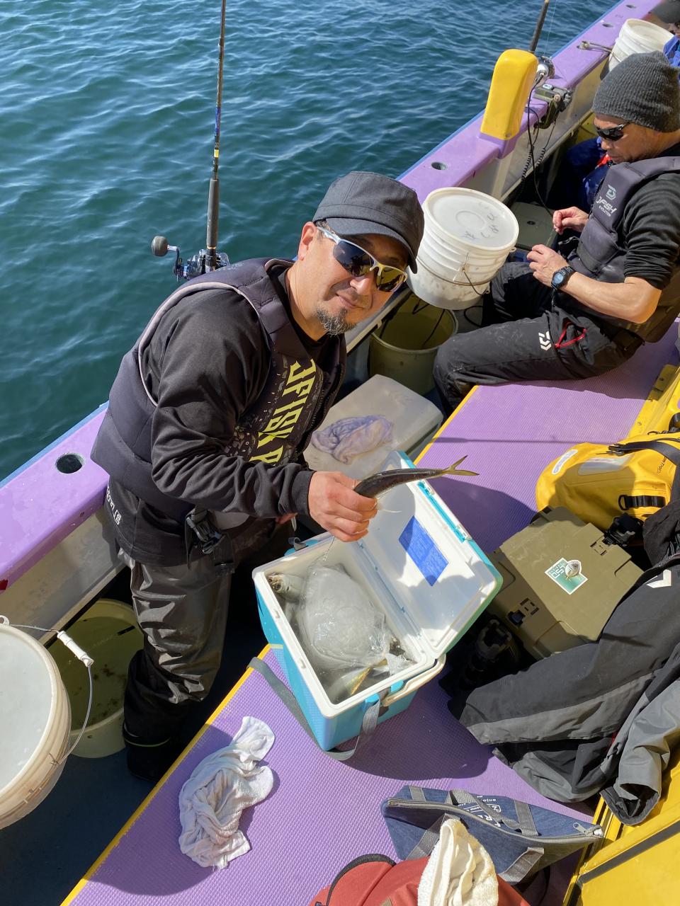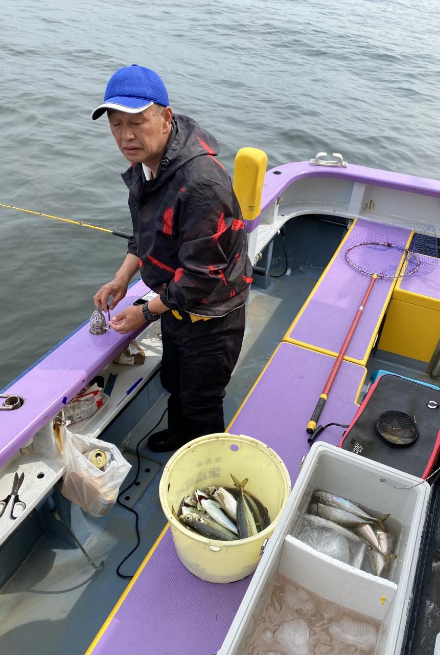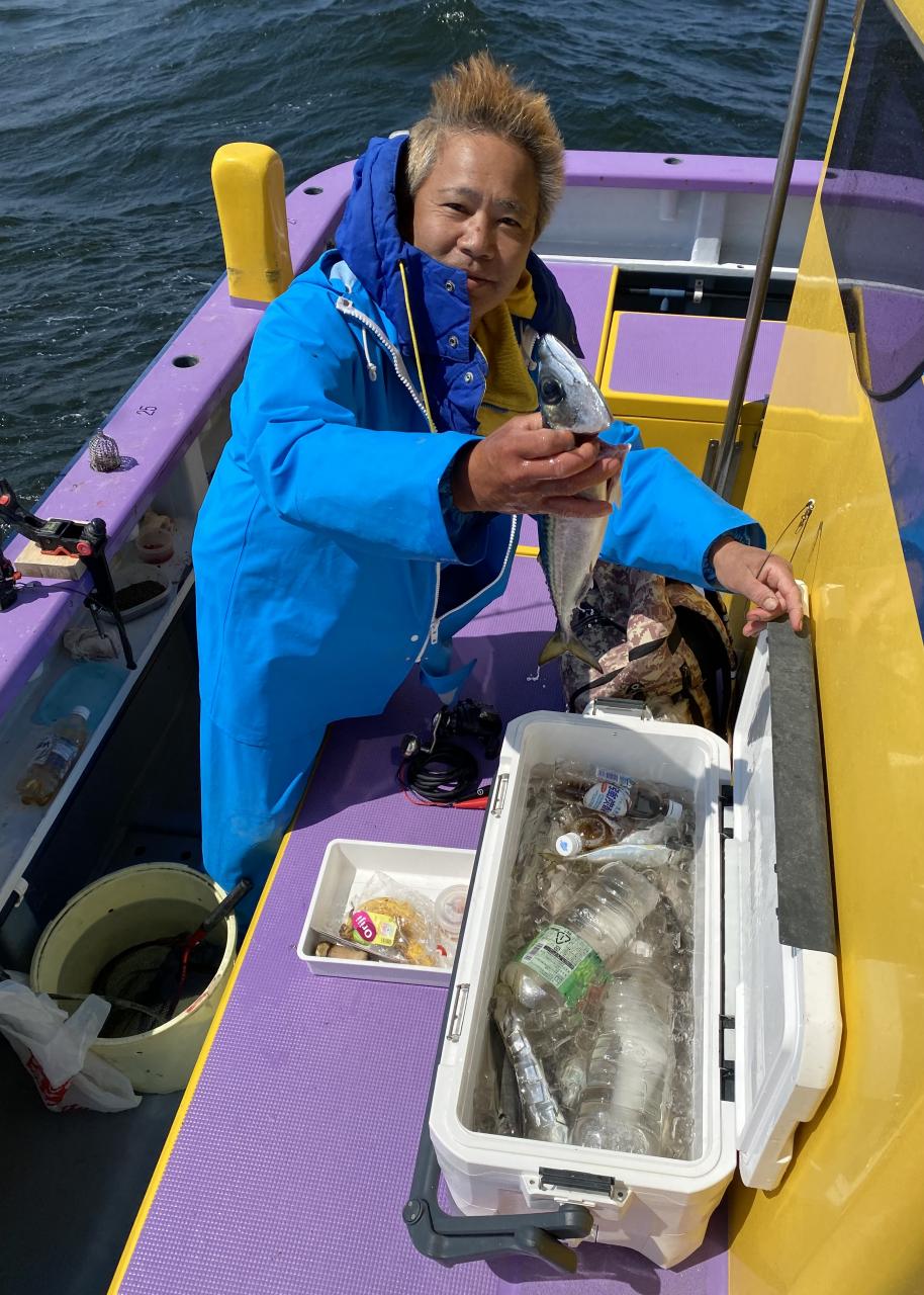 朝イチからいい反応には乗ってるものの型見た程度で…。活性の高い群れを求めて広範囲に探索しましたが、型見るばかりで。上潮が流れてきたタイミングで好転期待して船団へ戻りましたが、やはり型見るばかりで…たまには1人当たると3人、4人当たって複数人ヒットなんて時もありましたが、長続きせずで苦戦でした。
