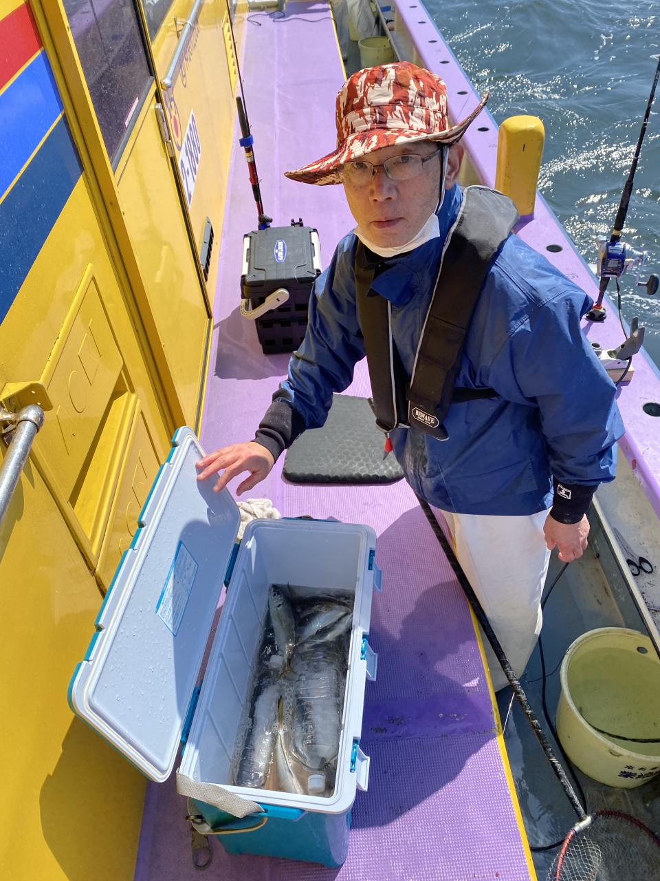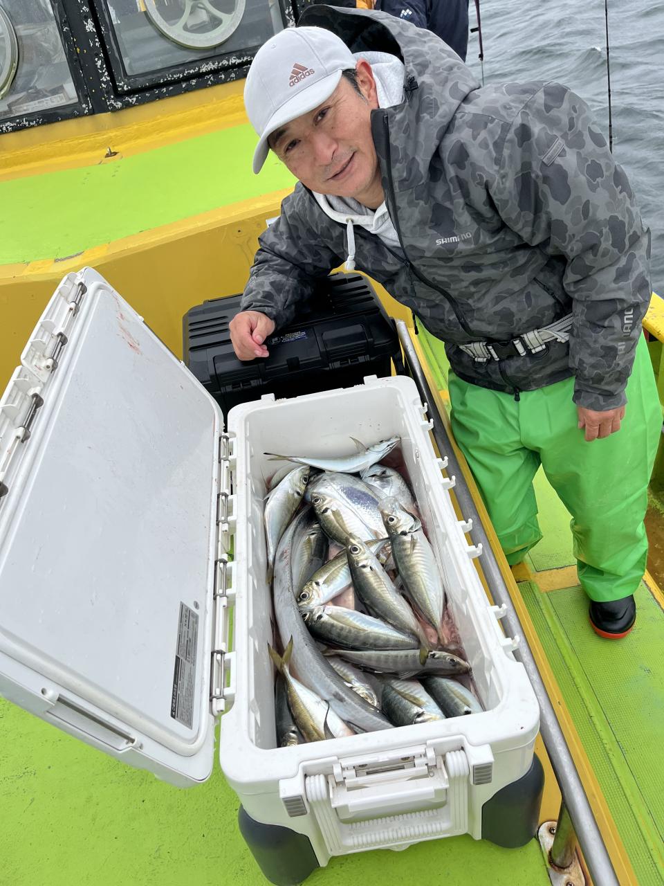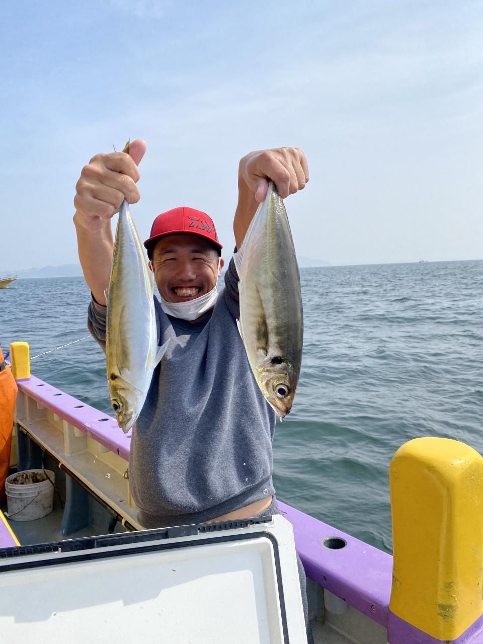 朝イチからいい反応には乗ってるものの型見た程度で…。活性の高い群れを求めて広範囲に探索しましたが、型見るばかりで。上潮が流れてきたタイミングで好転期待して船団へ戻りましたが、やはり型見るばかりで…たまには1人当たると3人、4人当たって複数人ヒットなんて時もありましたが、長続きせずで苦戦でした。