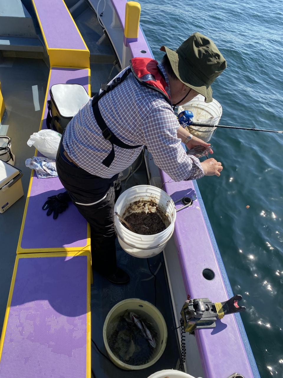 昨日まであった反応が?朝から広範囲に探索〜型は見れたもののどこも細切れ反応で…。見切りをつけて台船周りに戻り、こちらも細切れ反応当ててなんとか型見るばかりでした。