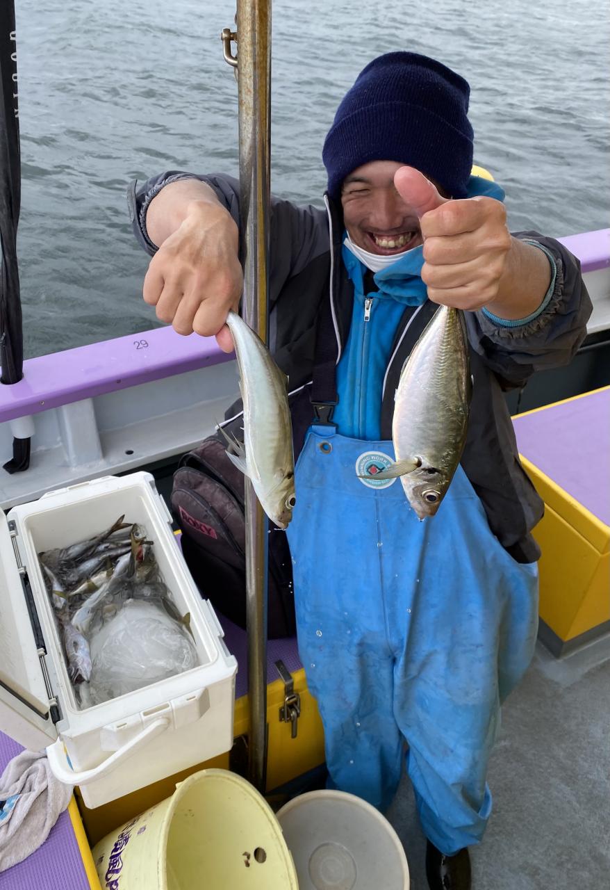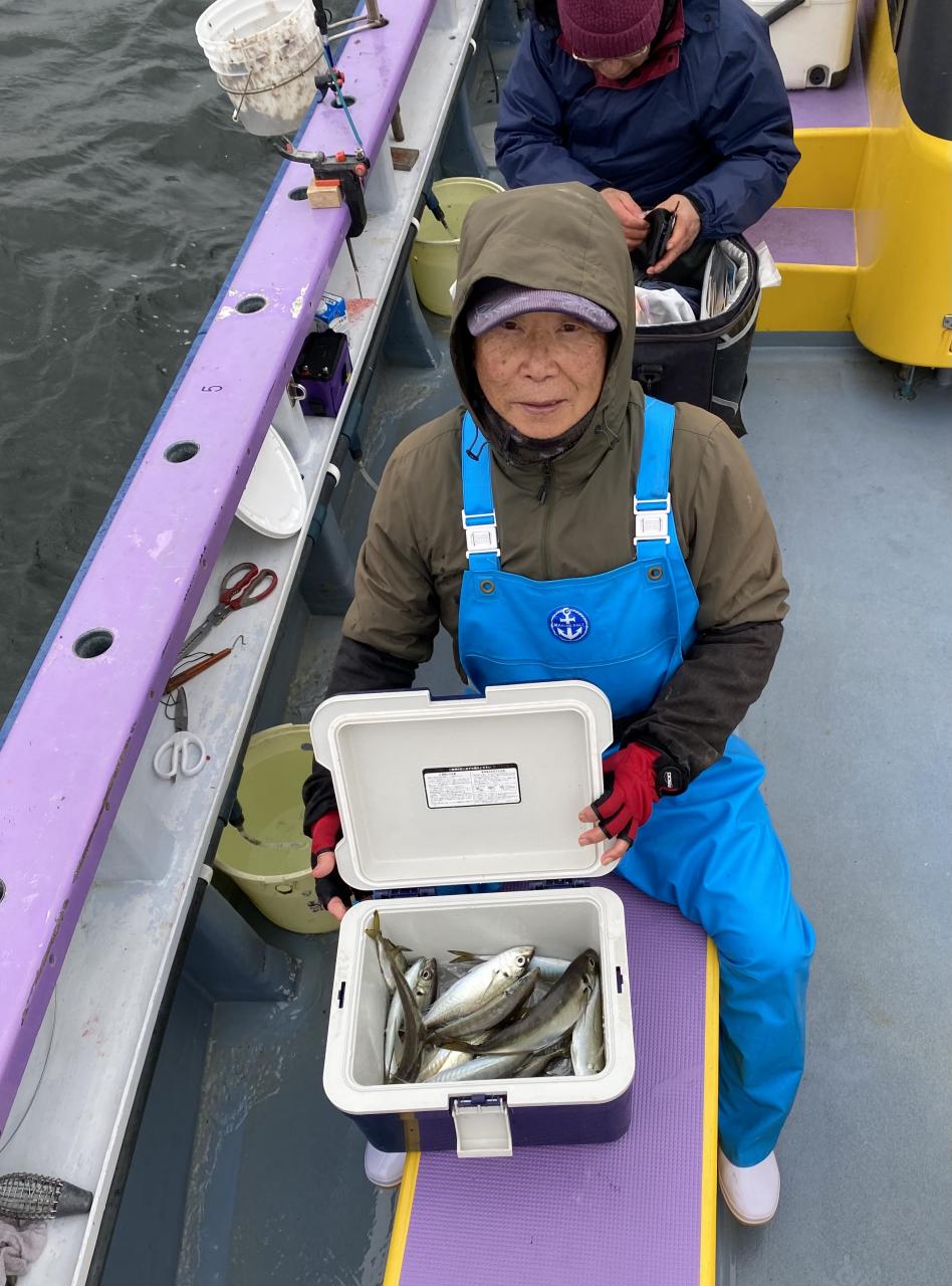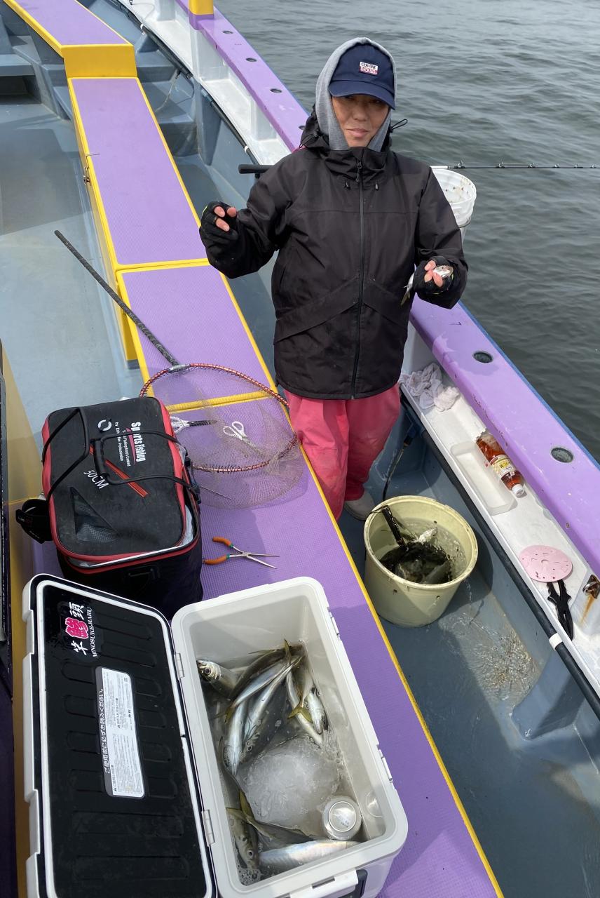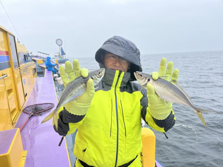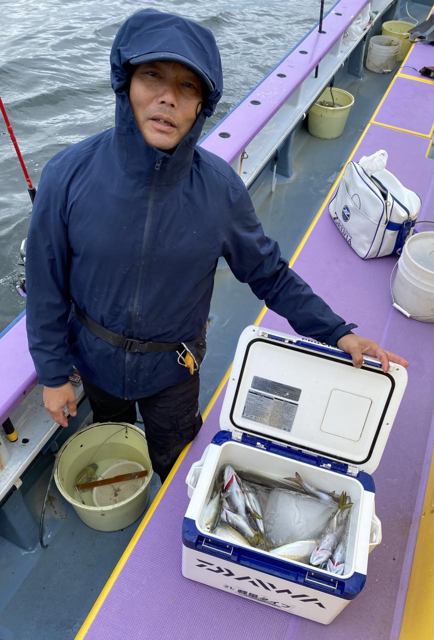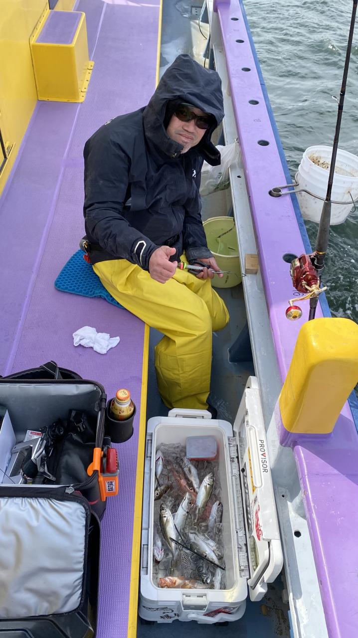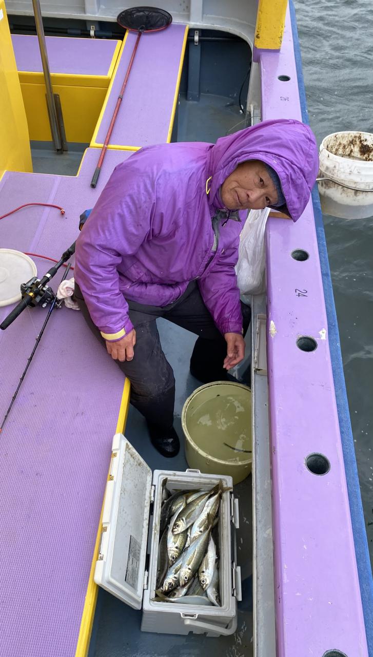今日は、雨予報?寂しく3名様での出船でした。下げ潮は速いが手慣れた方だったので助かりました。アジ型を出すと25センチ28センチ30センチクラスに35センチオーバーも交じって型を出す!が、雨と北風が強くなりお昼過ぎに沖上がり致しました。雨、風で風邪ひかない様にして下さい。