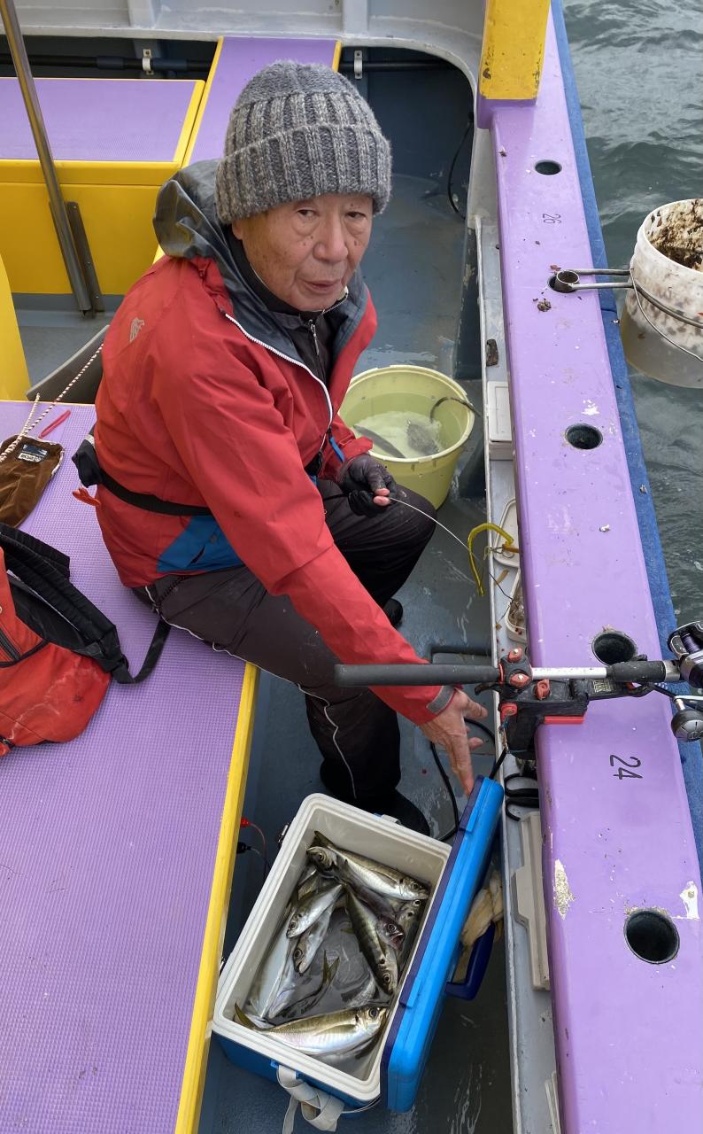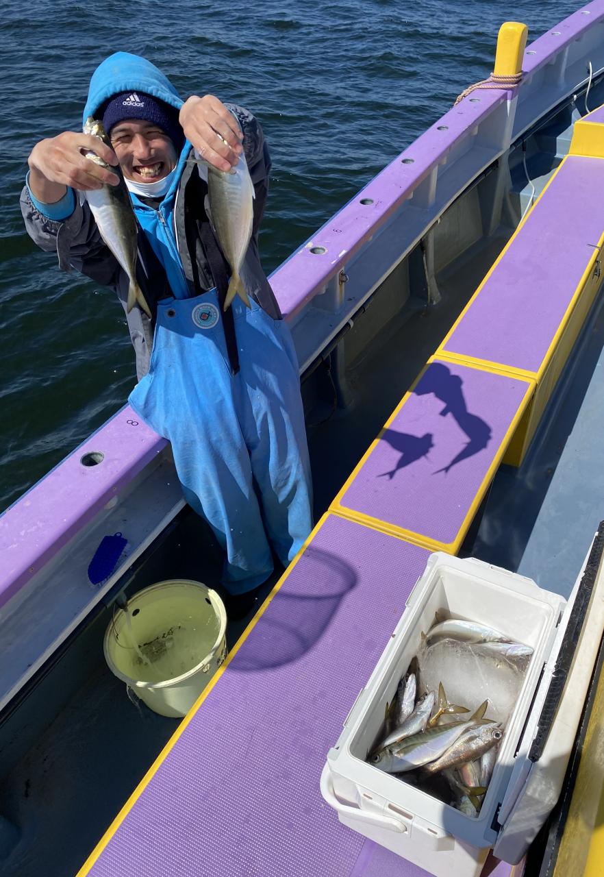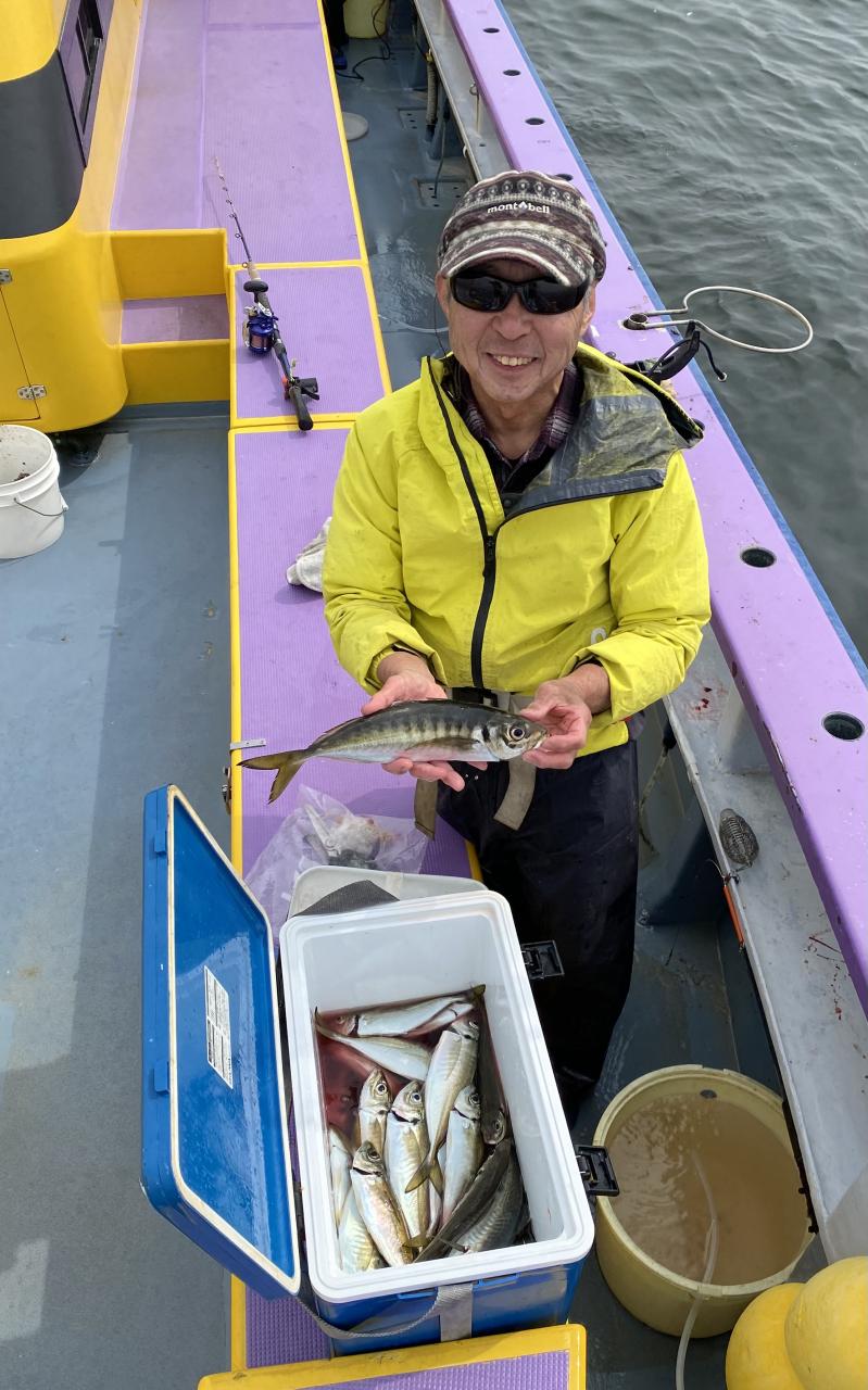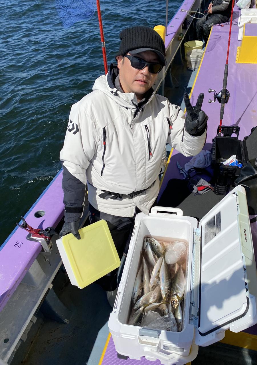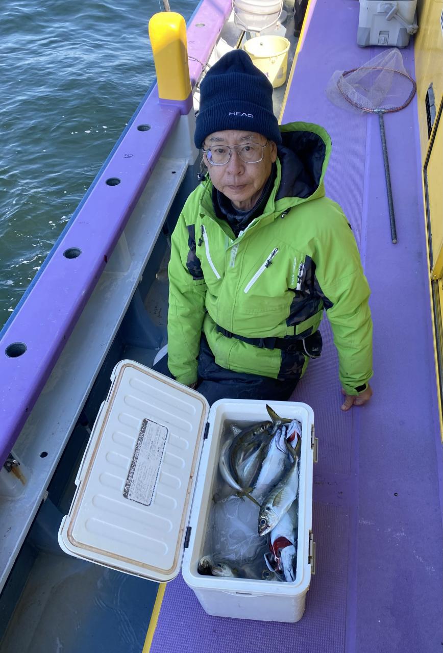 今日は、雨予報?寂しく3名様での出船でした。下げ潮は速いが手慣れた方だったので助かりました。アジ型を出すと25センチ28センチ30センチクラスに35センチオーバーも交じって型を出す!が、雨と北風が強くなりお昼過ぎに沖上がり致しました。雨、風で風邪ひかない様にして下さい。