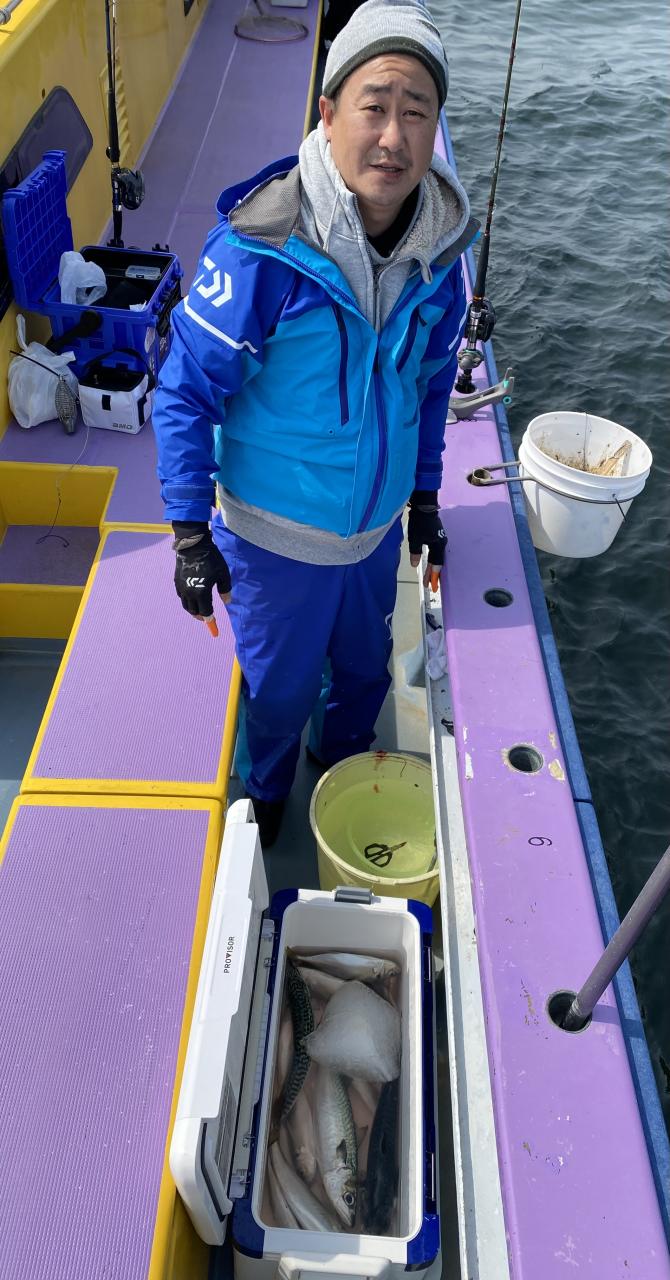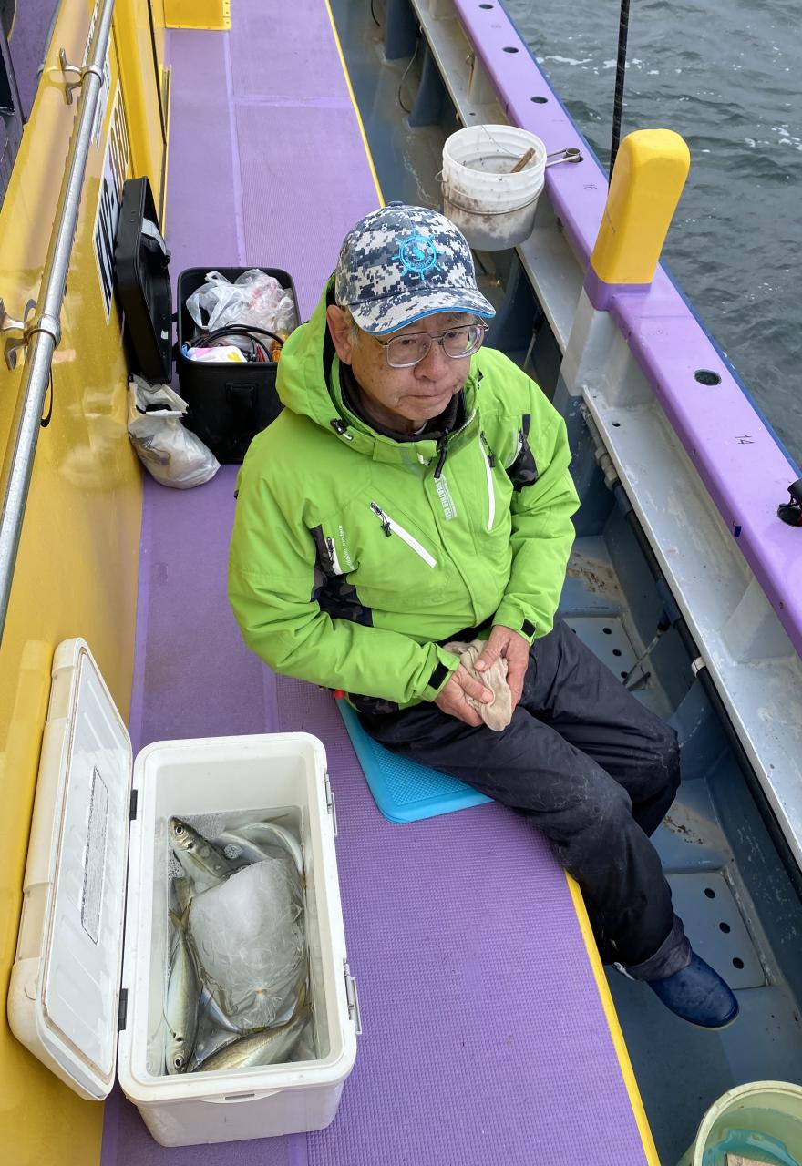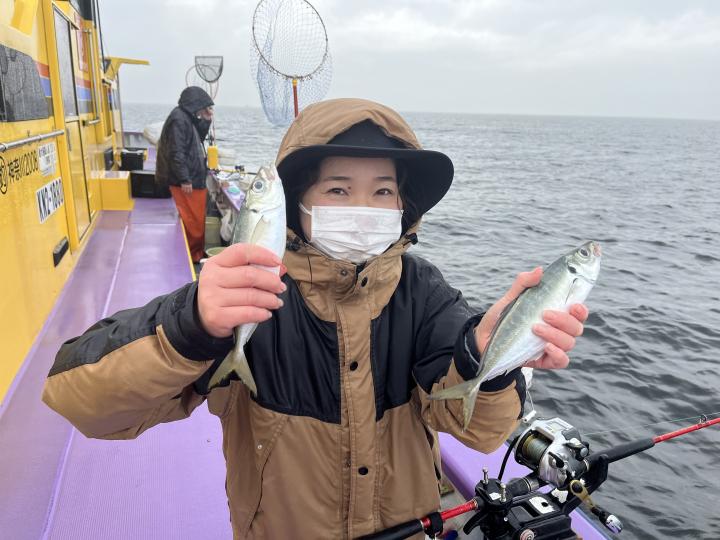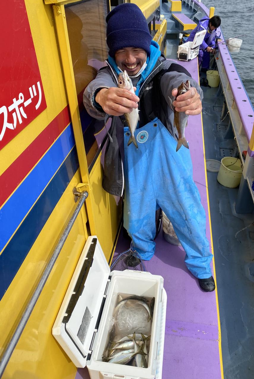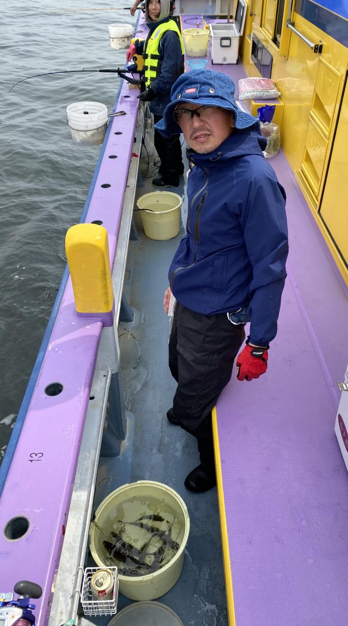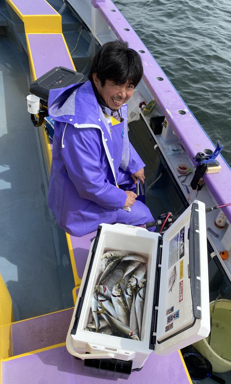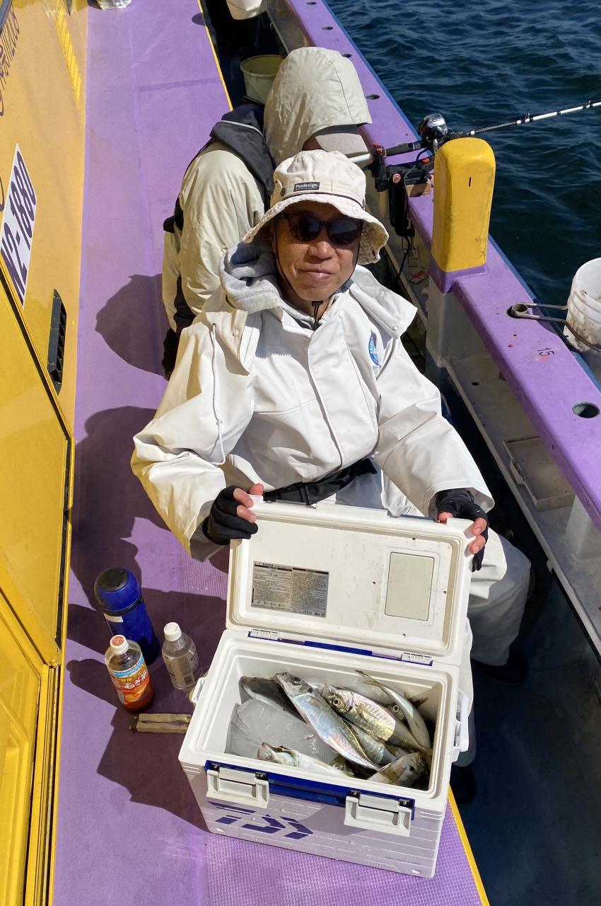 今日は、雨予報?寂しく3名様での出船でした。下げ潮は速いが手慣れた方だったので助かりました。アジ型を出すと25センチ28センチ30センチクラスに35センチオーバーも交じって型を出す!が、雨と北風が強くなりお昼過ぎに沖上がり致しました。雨、風で風邪ひかない様にして下さい。