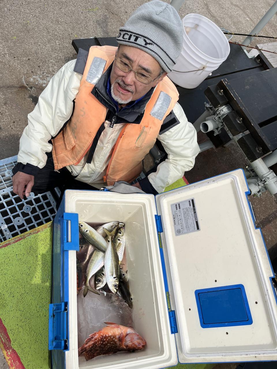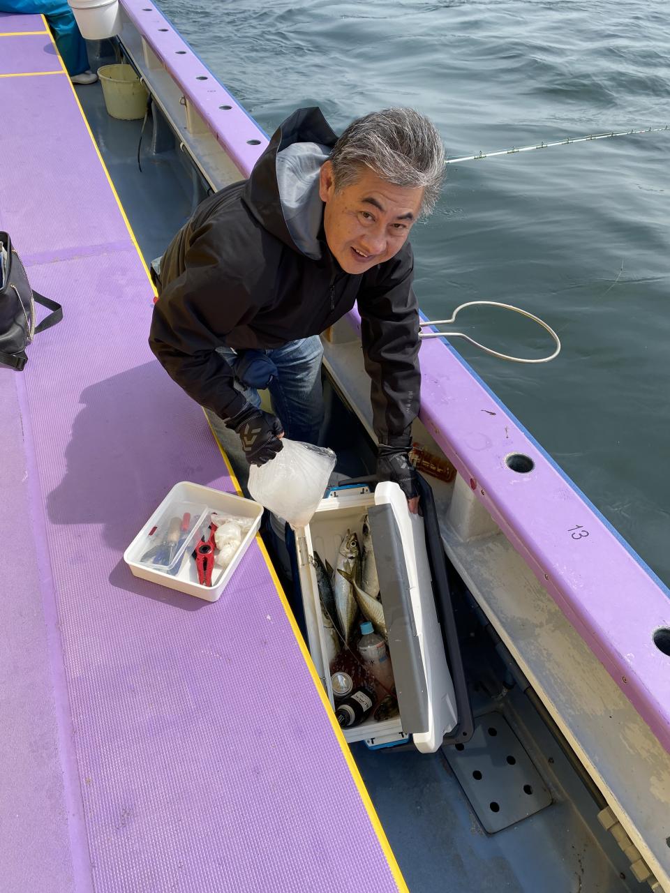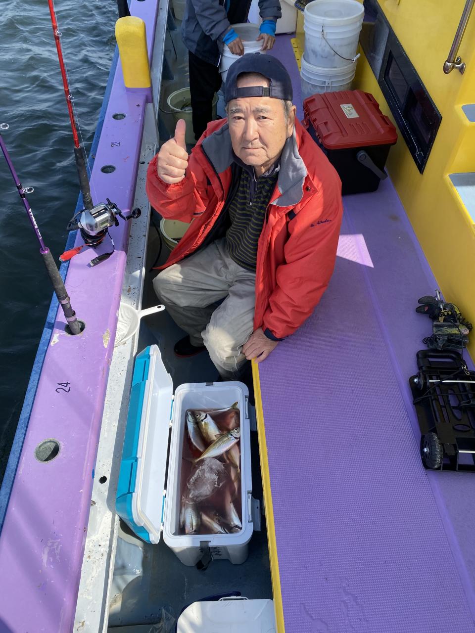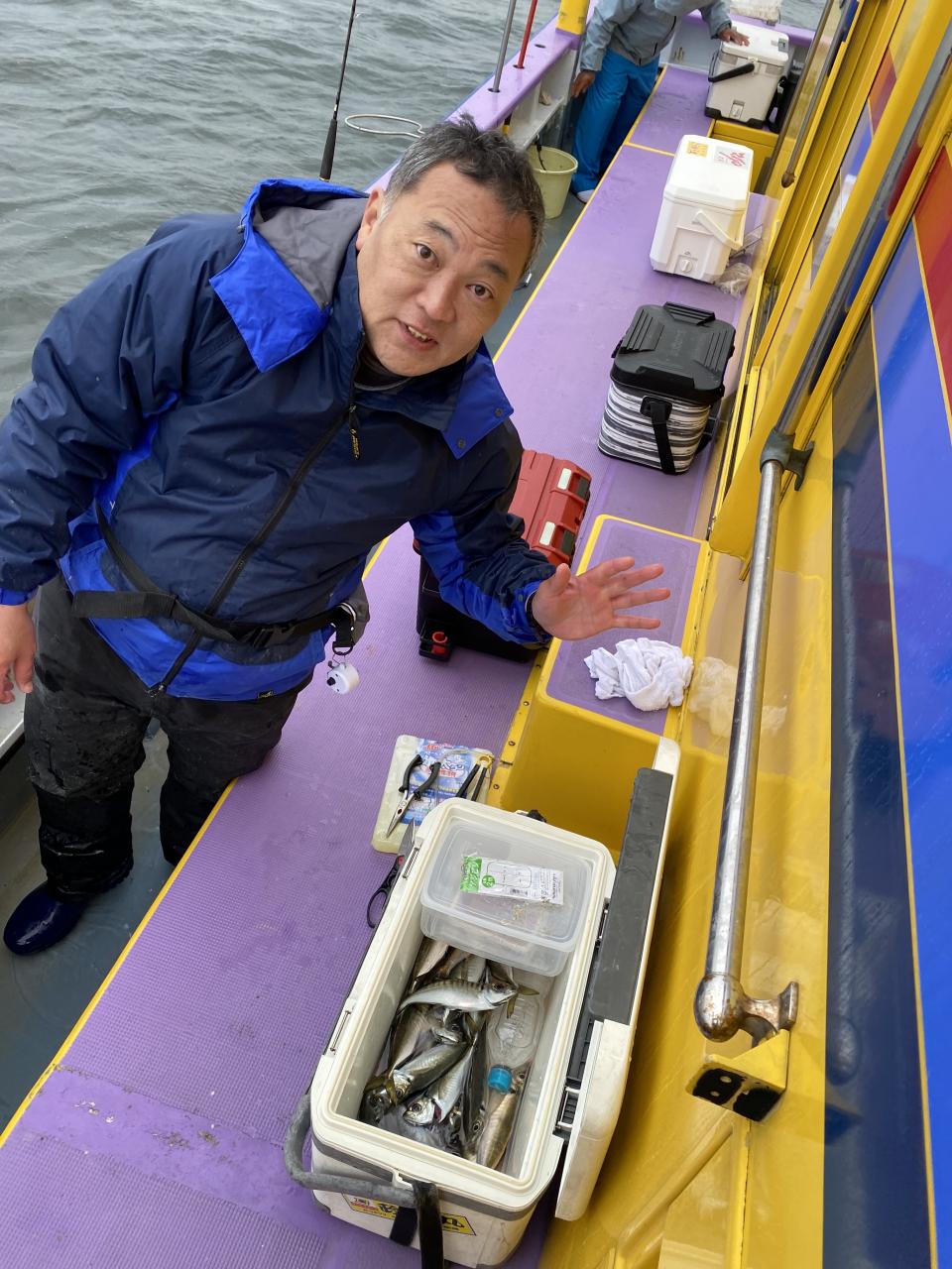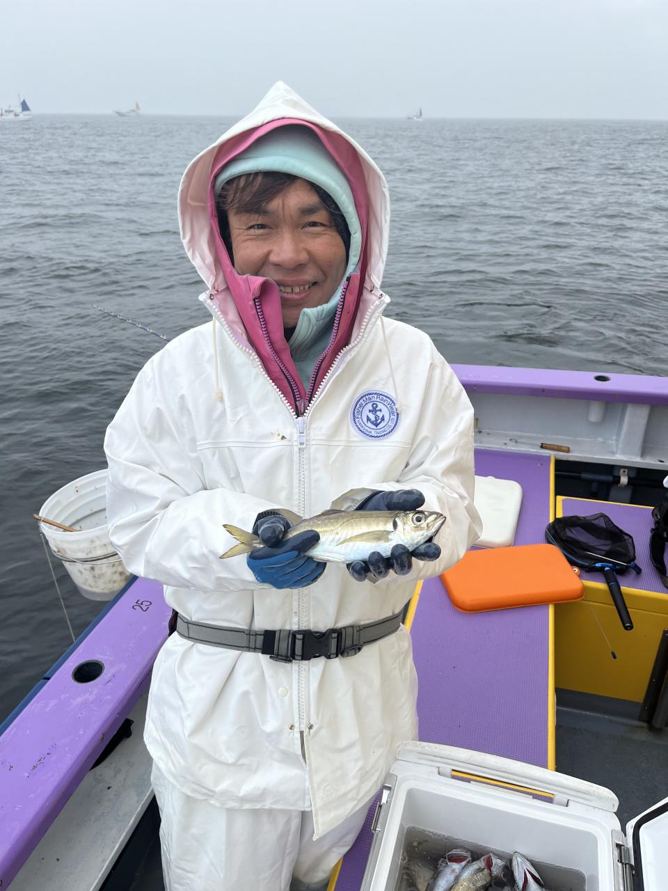 今日は、雨予報?寂しく3名様での出船でした。下げ潮は速いが手慣れた方だったので助かりました。アジ型を出すと25センチ28センチ30センチクラスに35センチオーバーも交じって型を出す!が、雨と北風が強くなりお昼過ぎに沖上がり致しました。雨、風で風邪ひかない様にして下さい。