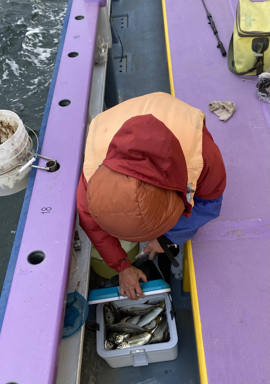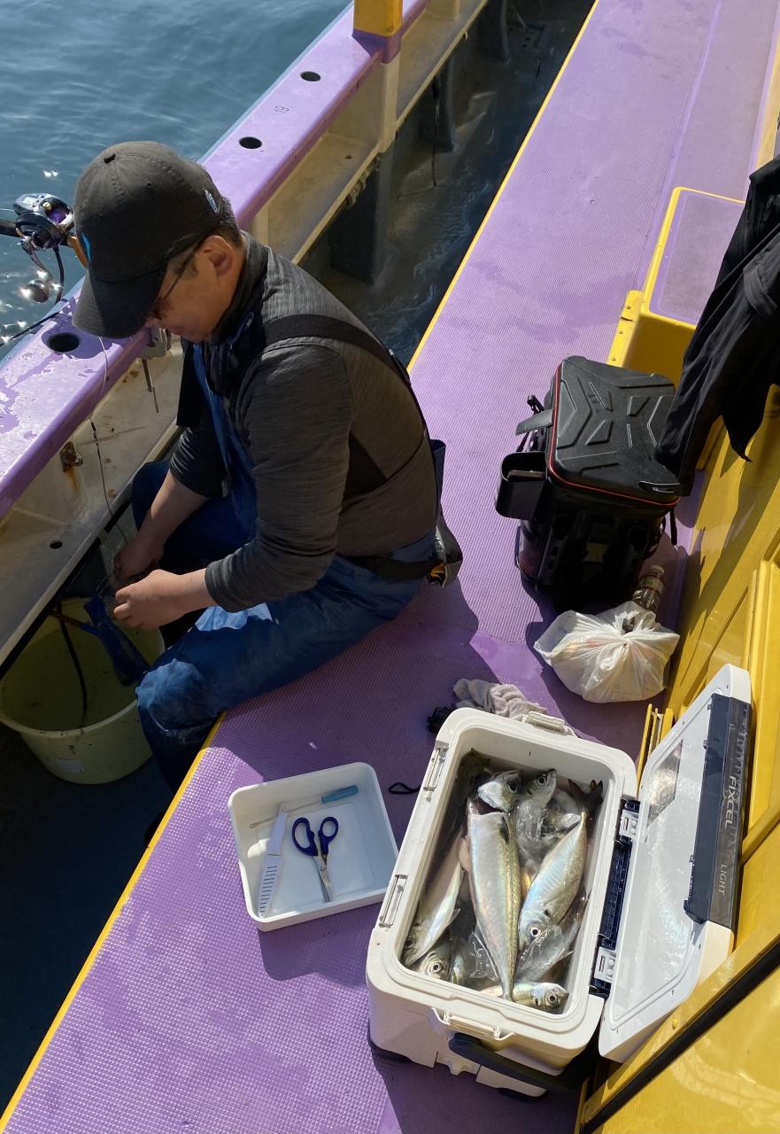 予報が悪くサビキメバルはデビュー戦のお客様2名様で出船前に長い仕掛けの取り扱いレクチャー後の出船となりました