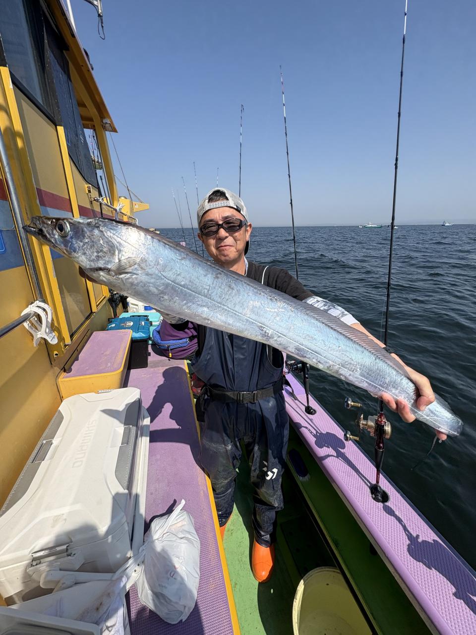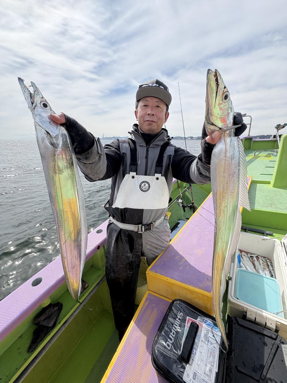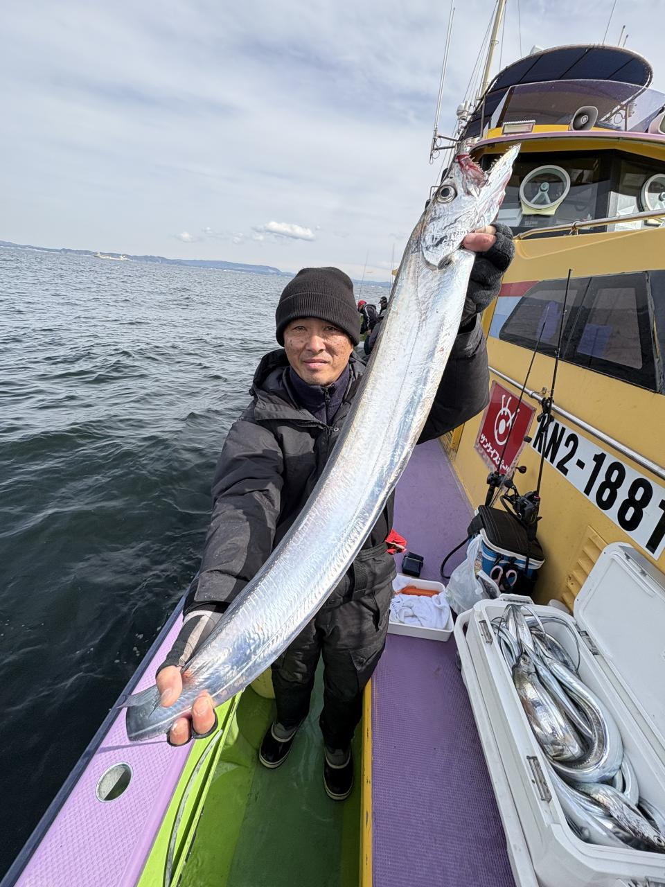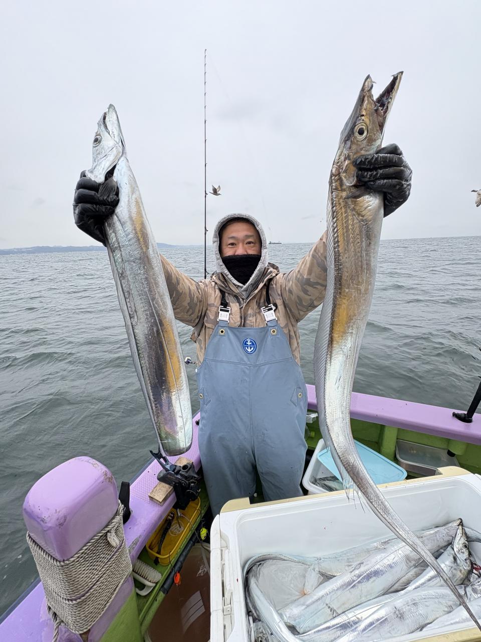 凪なので、朝イチはどこから見ていこうかな〜とフラフラしてたら赤白の相棒から情報貰い極太ドラゴン級ゲット〜!その後は観音崎沖の船団へと合流させてもらい攻略できた人はアタリ多めに!大流し出来る時もありポツリ〜ポツリと良型主体にドラゴン級混じりで!今日はタチウオ復活でした!
