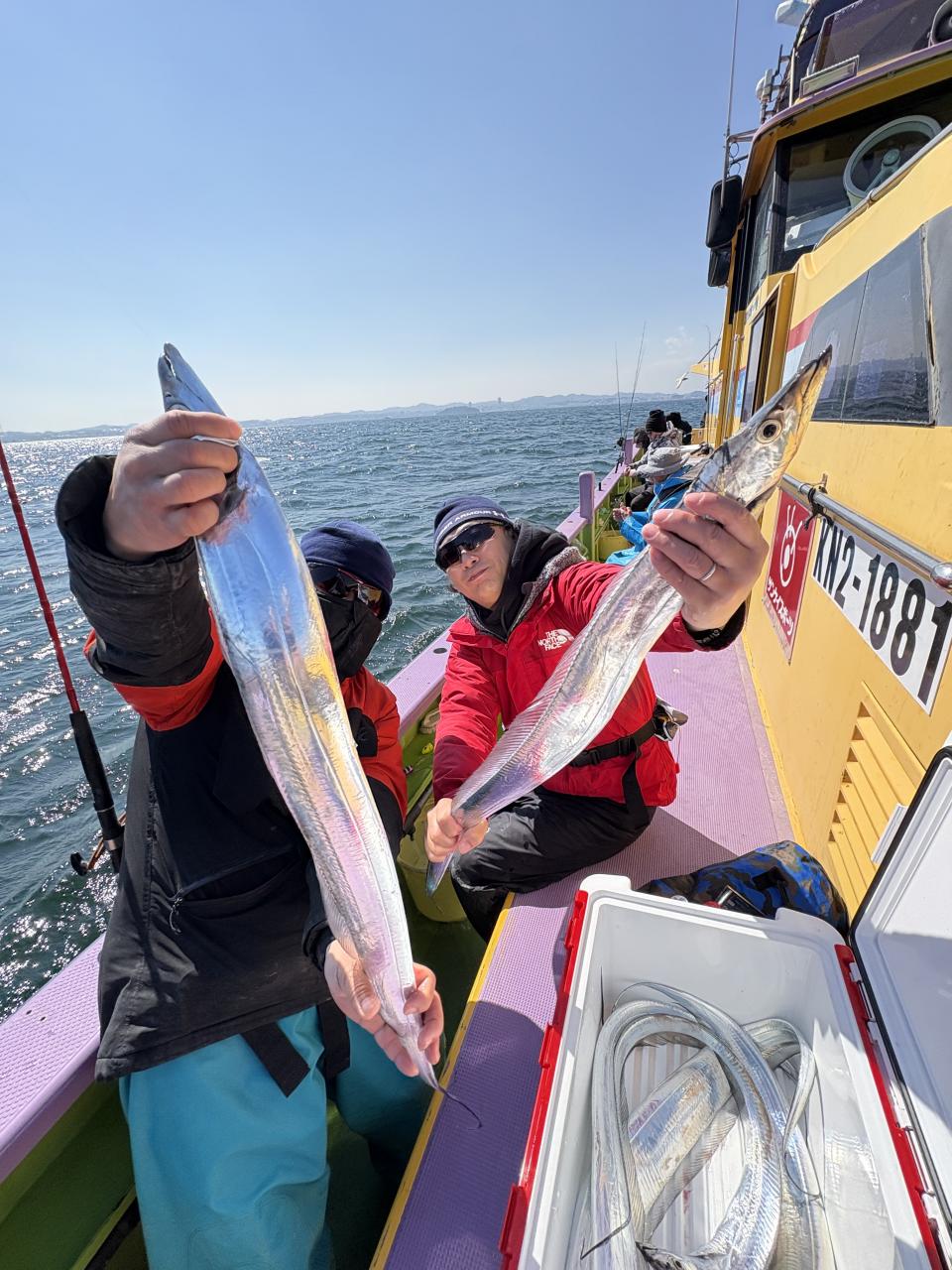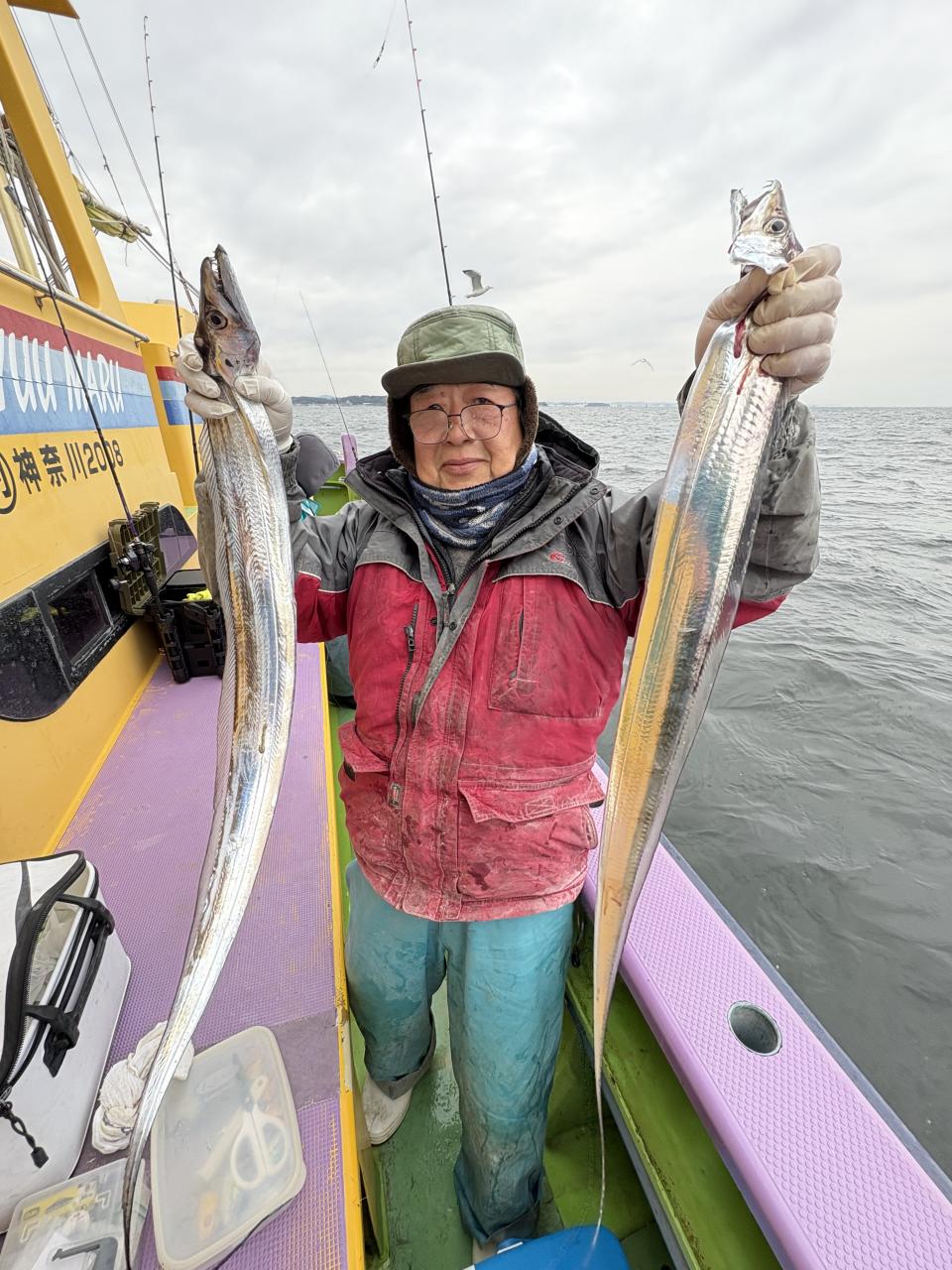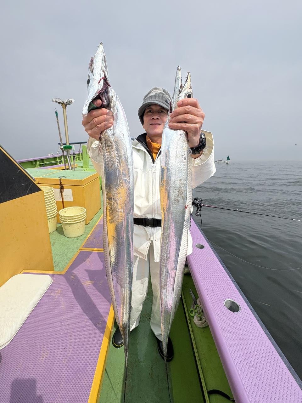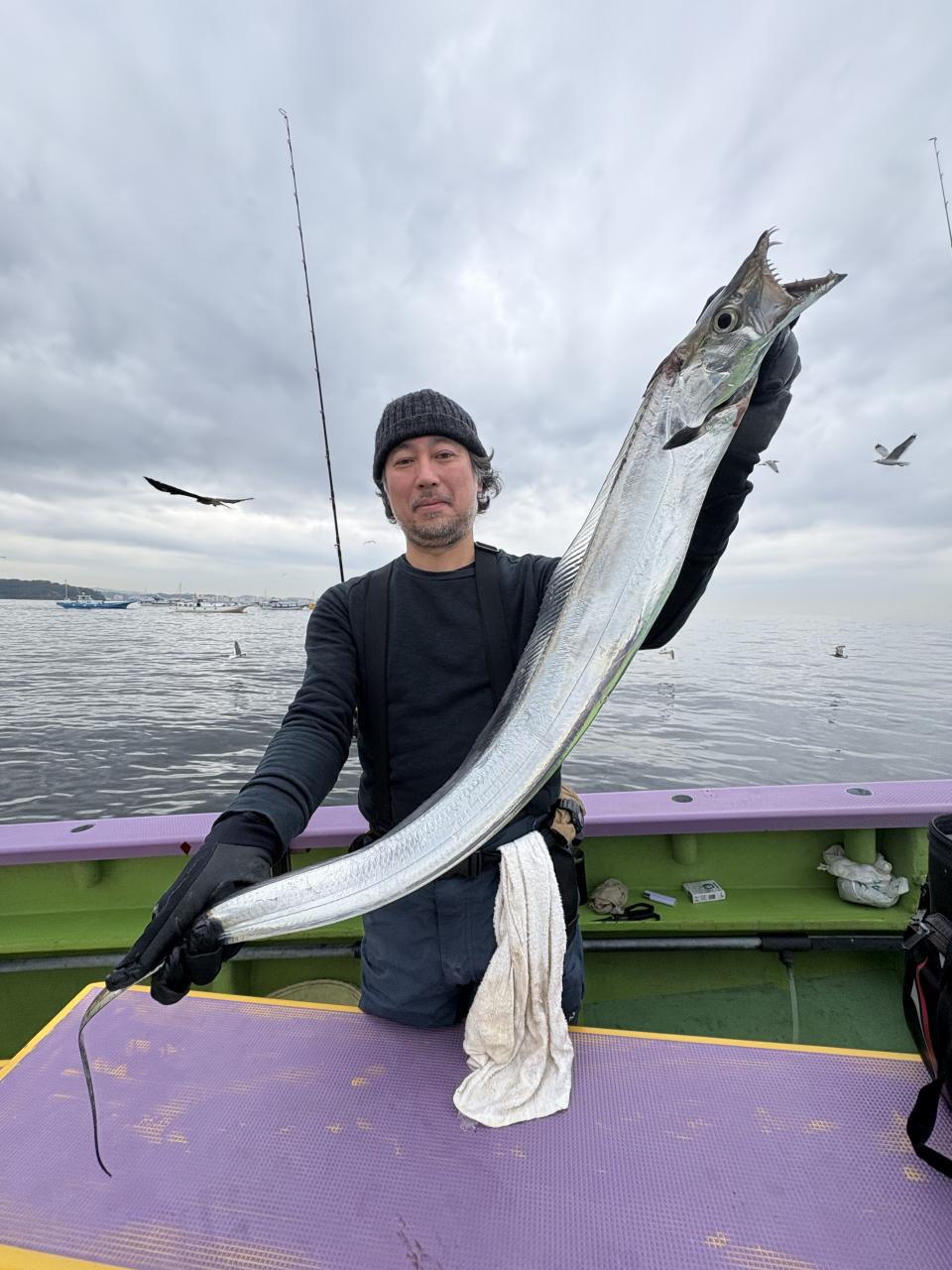 凪なので、朝イチはどこから見ていこうかな〜とフラフラしてたら赤白の相棒から情報貰い極太ドラゴン級ゲット〜!その後は観音崎沖の船団へと合流させてもらい攻略できた人はアタリ多めに!大流し出来る時もありポツリ〜ポツリと良型主体にドラゴン級混じりで!今日はタチウオ復活でした!