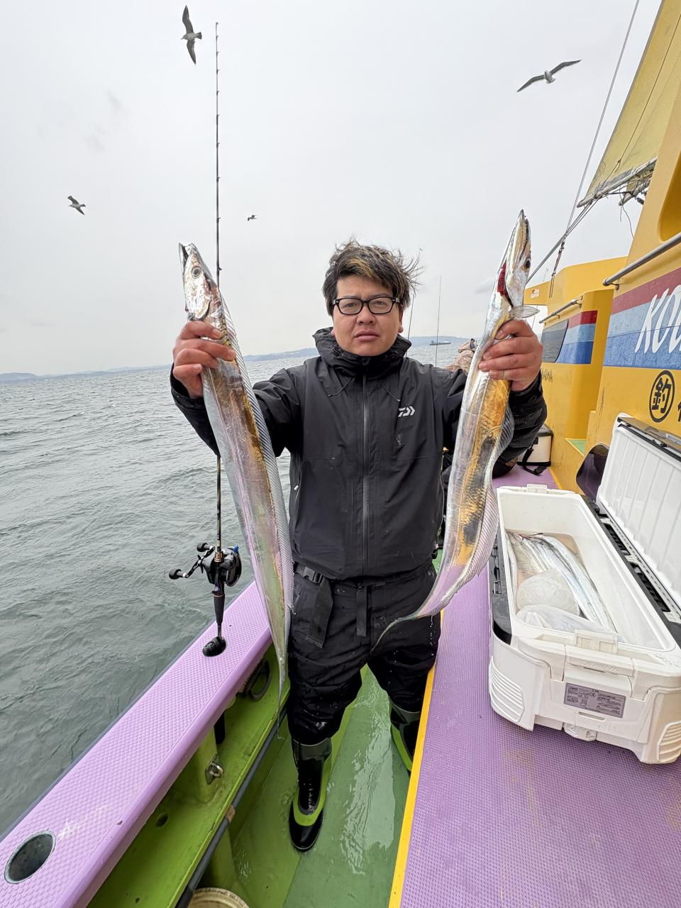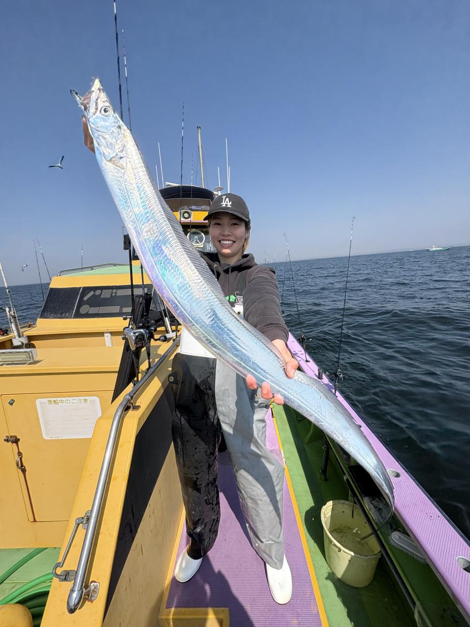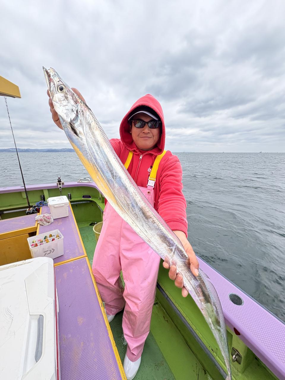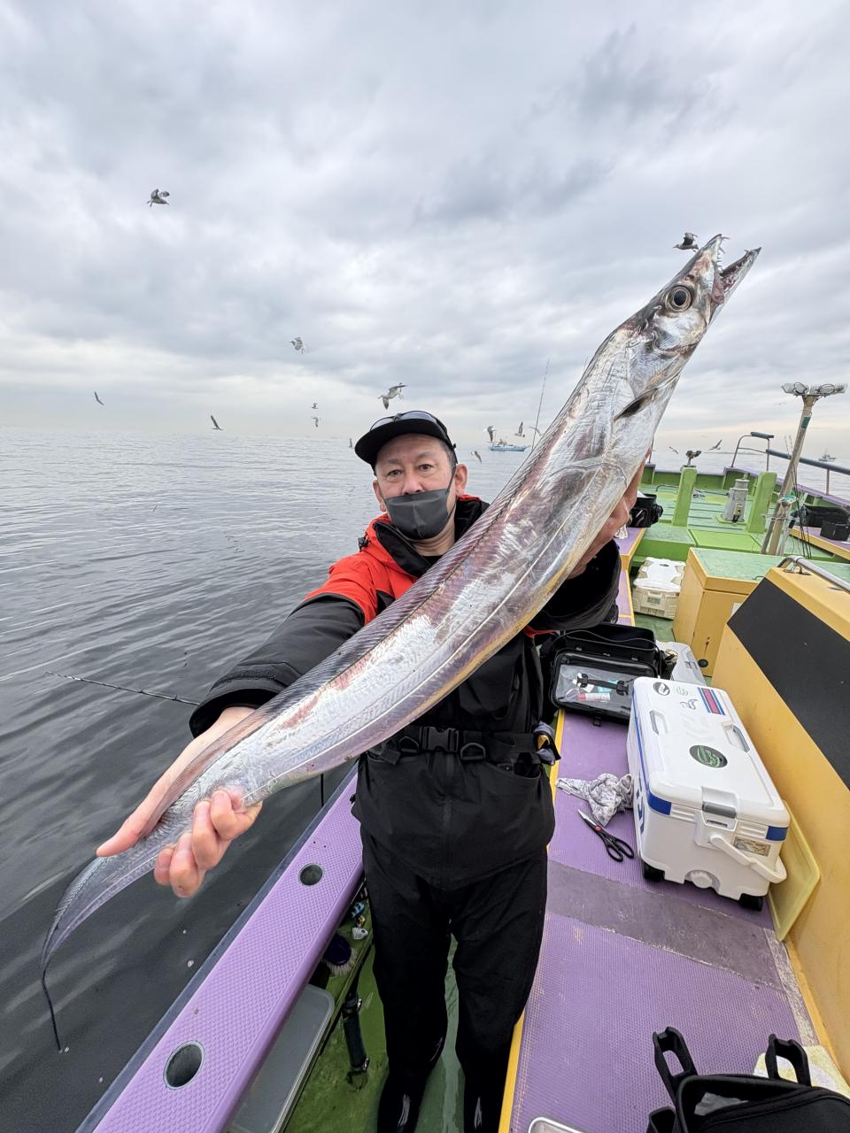 凪なので、朝イチはどこから見ていこうかな〜とフラフラしてたら赤白の相棒から情報貰い極太ドラゴン級ゲット〜!その後は観音崎沖の船団へと合流させてもらい攻略できた人はアタリ多めに!大流し出来る時もありポツリ〜ポツリと良型主体にドラゴン級混じりで!今日はタチウオ復活でした!