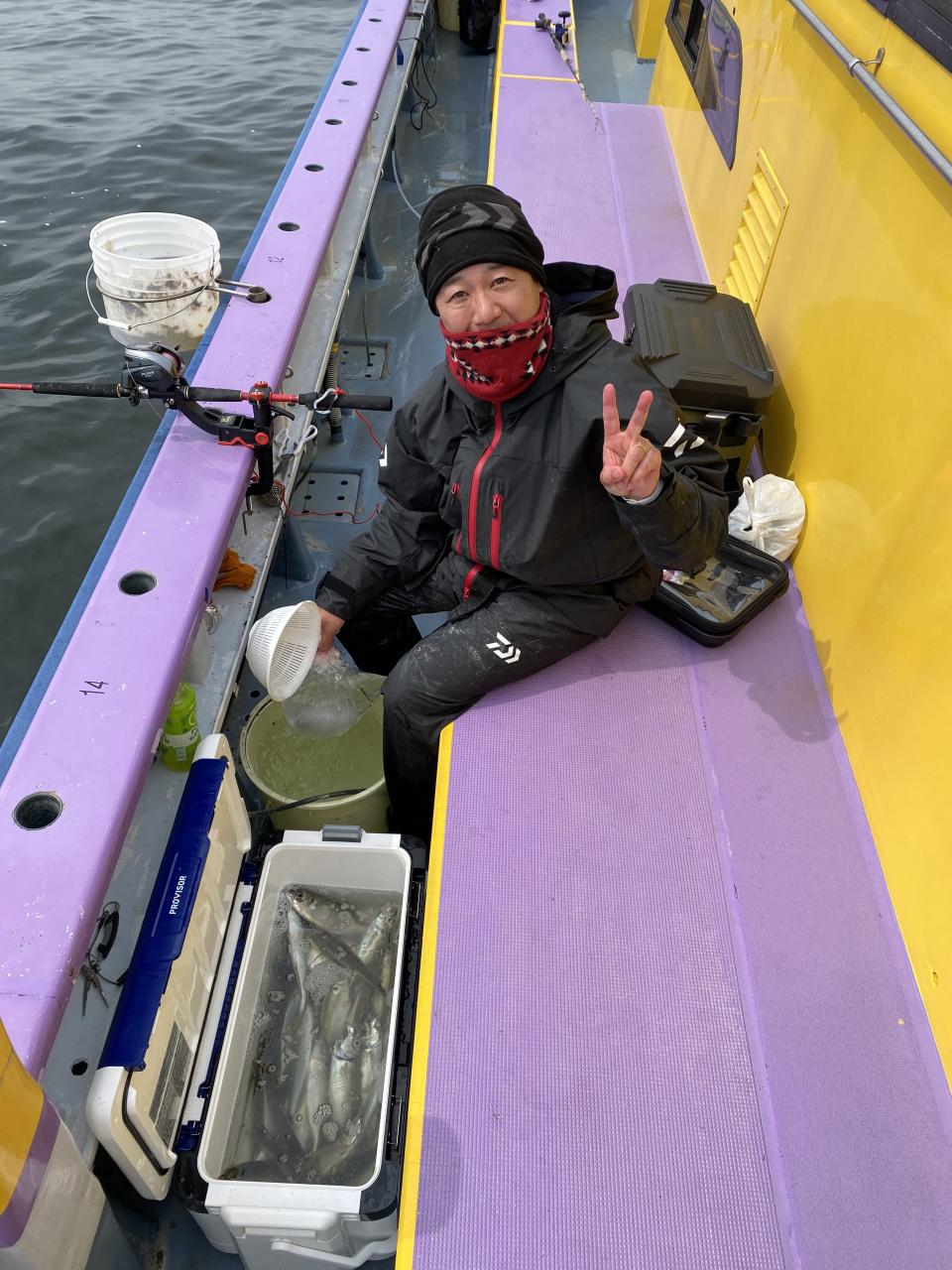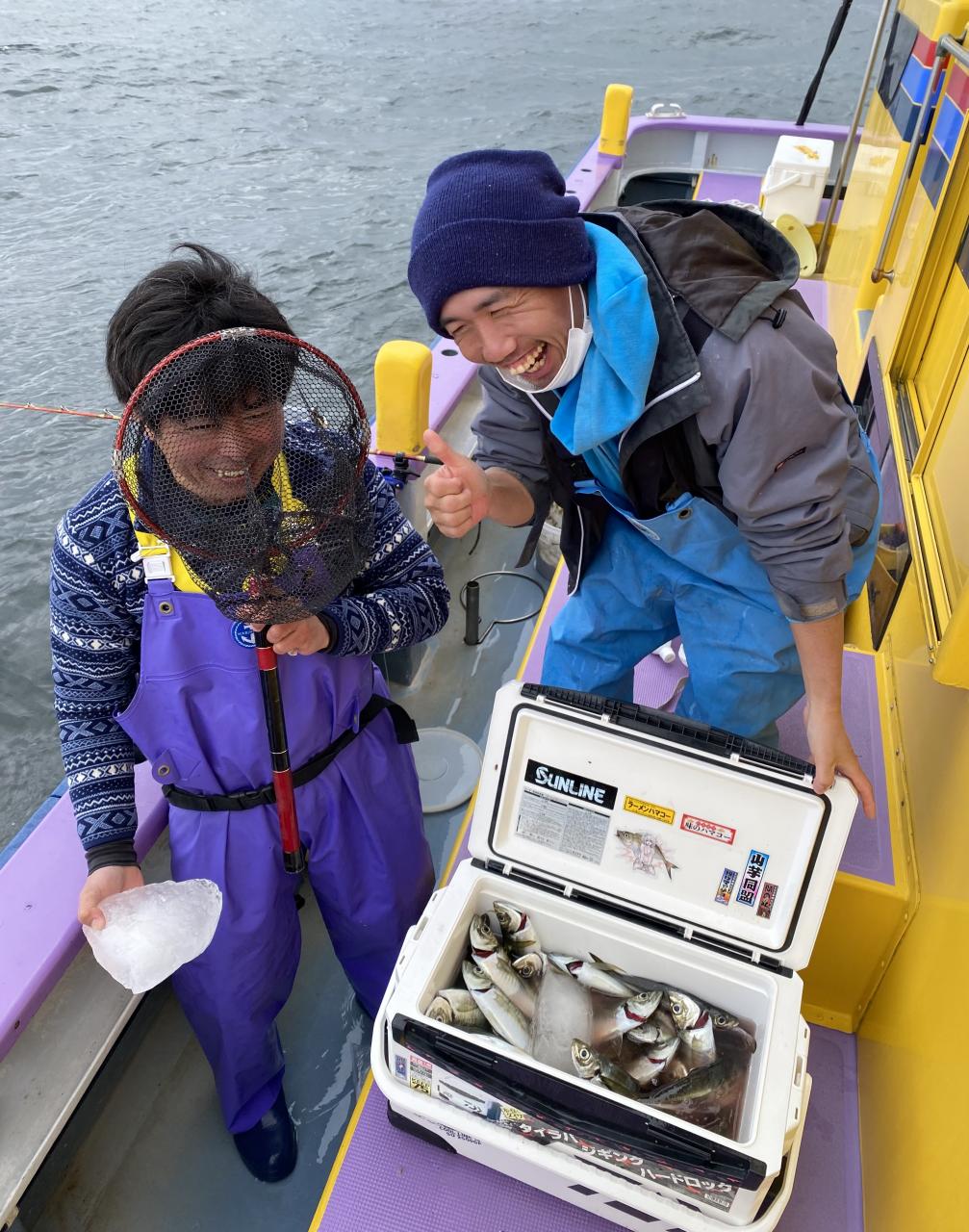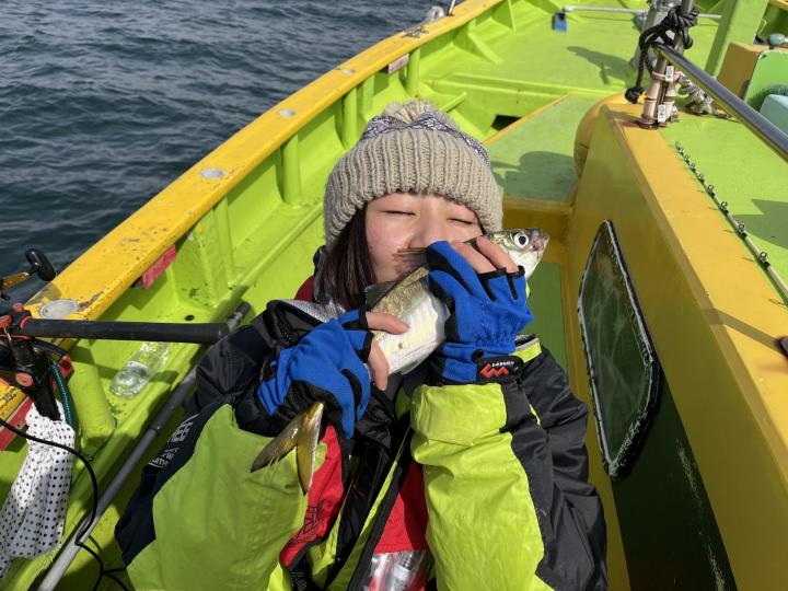12月中旬にご乗船の小野寺さんの愛娘さんとお友達の娘さん、裕司船長にお土産持参でのご乗船ですありがとうございます、ゴチになります✌️