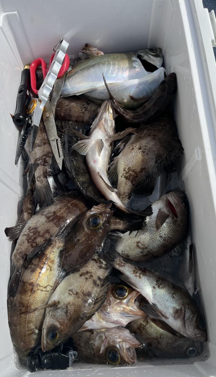 良型メバルメインで多点掛けは少なかったですが4点掛け、3点掛け、2点掛けで、5名様で15尾、18尾、31尾、35尾、48尾でした。