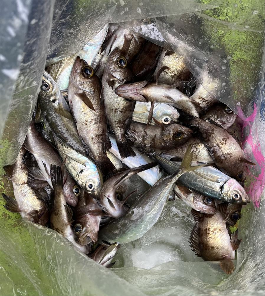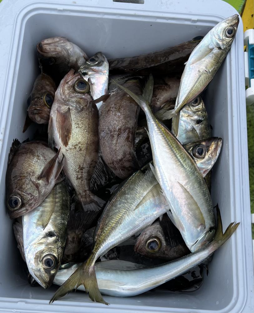 ベイトに付いているアジの4点掛けからのスタートとなりました、メバルも型見れました❗️3点掛けもありました✌️