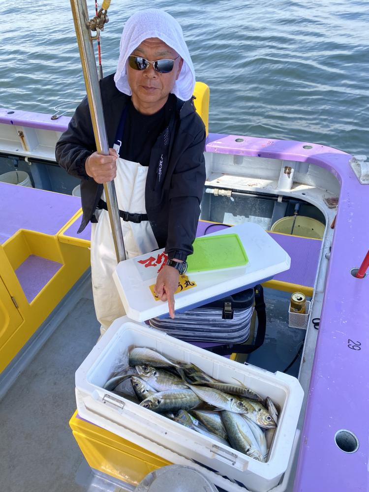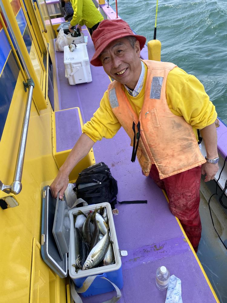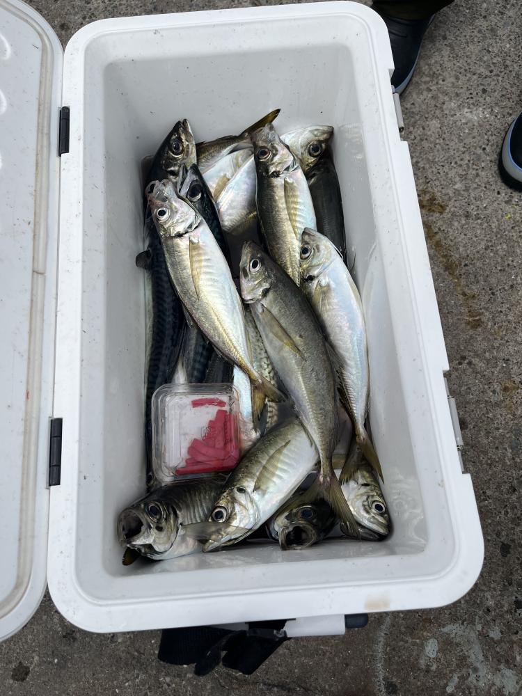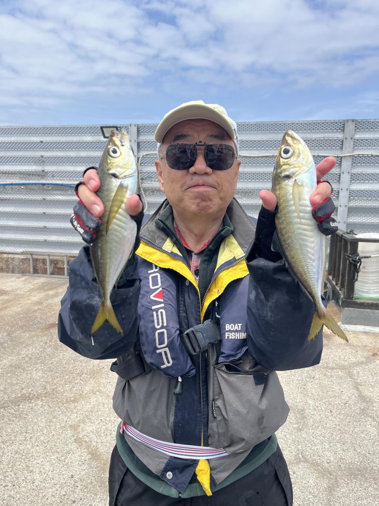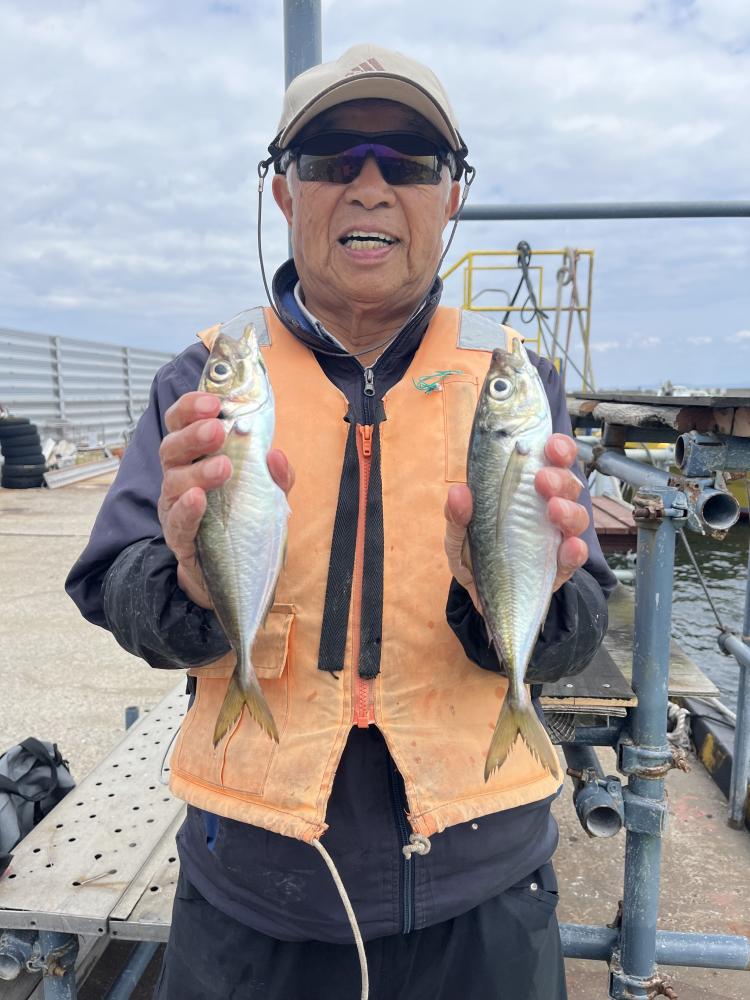今日は、アジ型を出すと25センチから28センチ30センチクラスの中型メインに30センチから35センチオーバーと良型メインにダブルで食う時も有り、大サバ交じりで食い有りました。外道にサバと2kのクロダイが!最低の方は残念ながら余り釣りをしなかった人です。