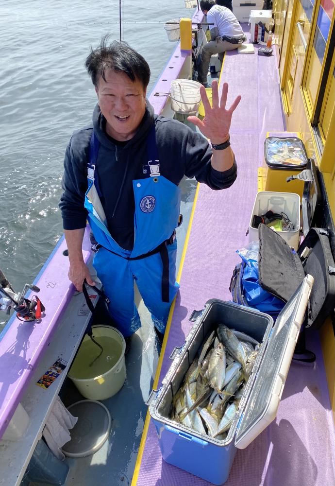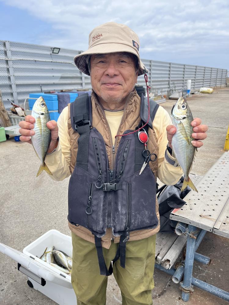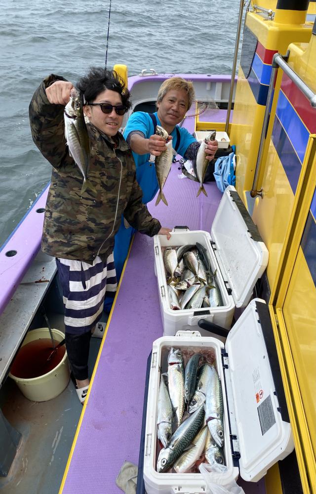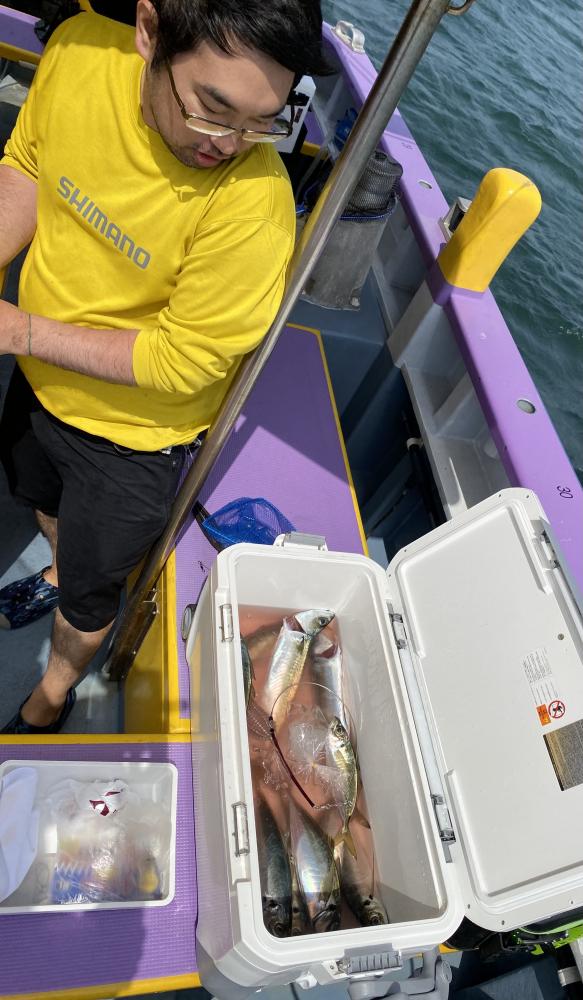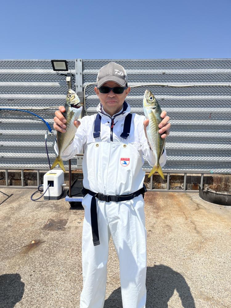 今日は、アジ型を出すと25センチから28センチ30センチクラスの中型メインに30センチから35センチオーバーと良型メインにダブルで食う時も有り、大サバ交じりで食い有りました。外道にサバと2kのクロダイが!最低の方は残念ながら余り釣りをしなかった人です。
