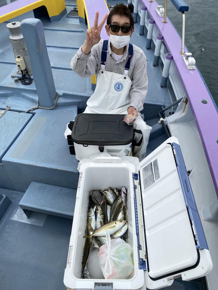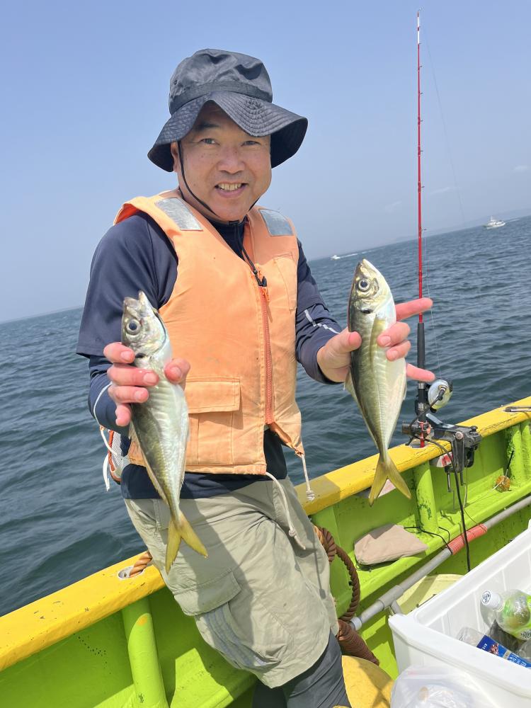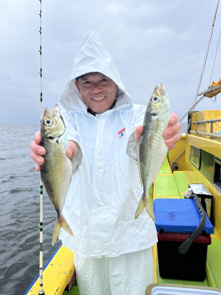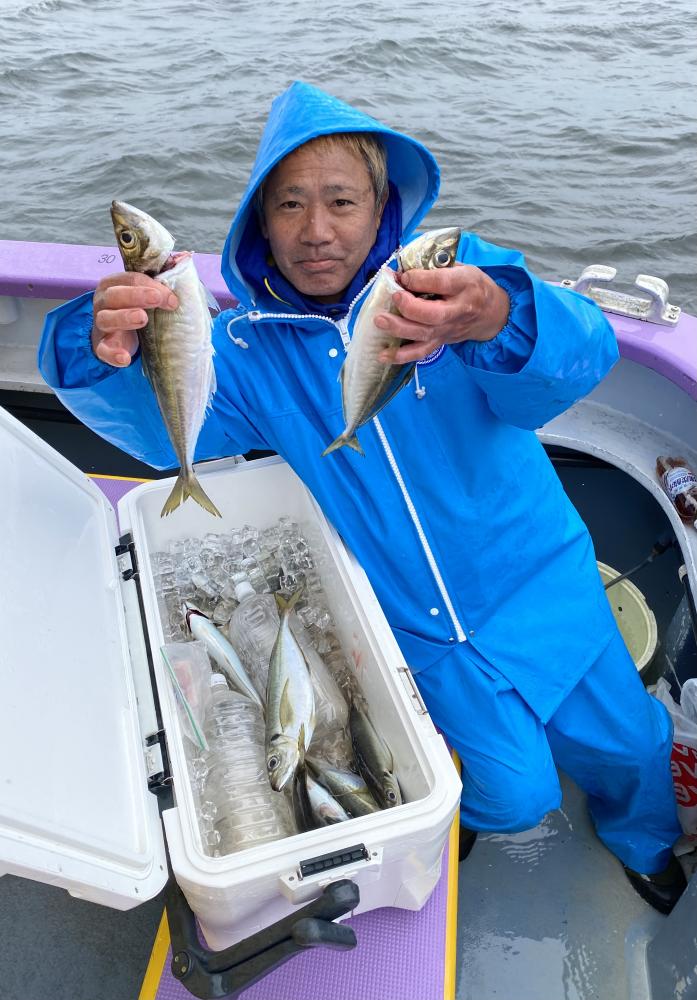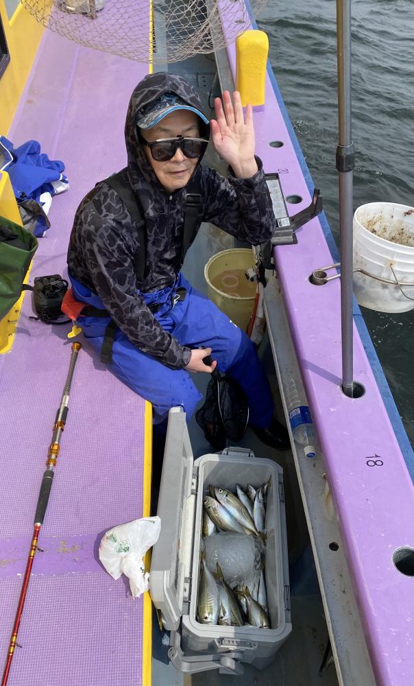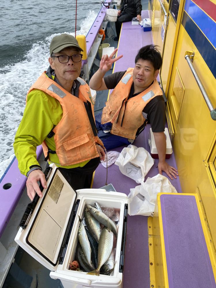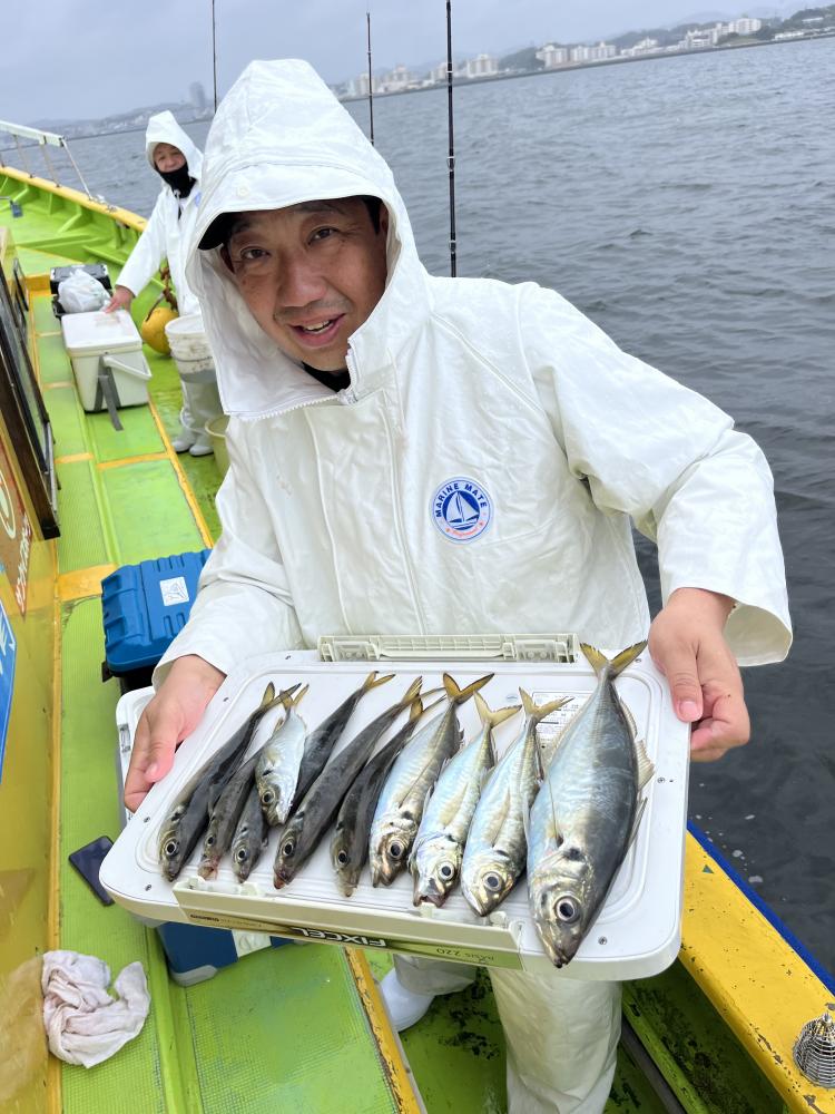 今日は多くのアジファンに乗船して頂き有難う御座いました。朝一からアジ型を出すと23センチから25センチ28センチクラスの中型から30センチオーバーも交じり下げ潮が速くタナ取りが上手くいっている方は単発ながらも型を出す!潮がよどみ上げ潮になるとサバが多くなり帰りまで楽しめました。外道にサバとイネゴチが!