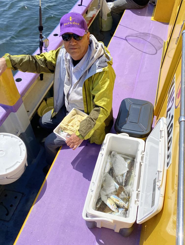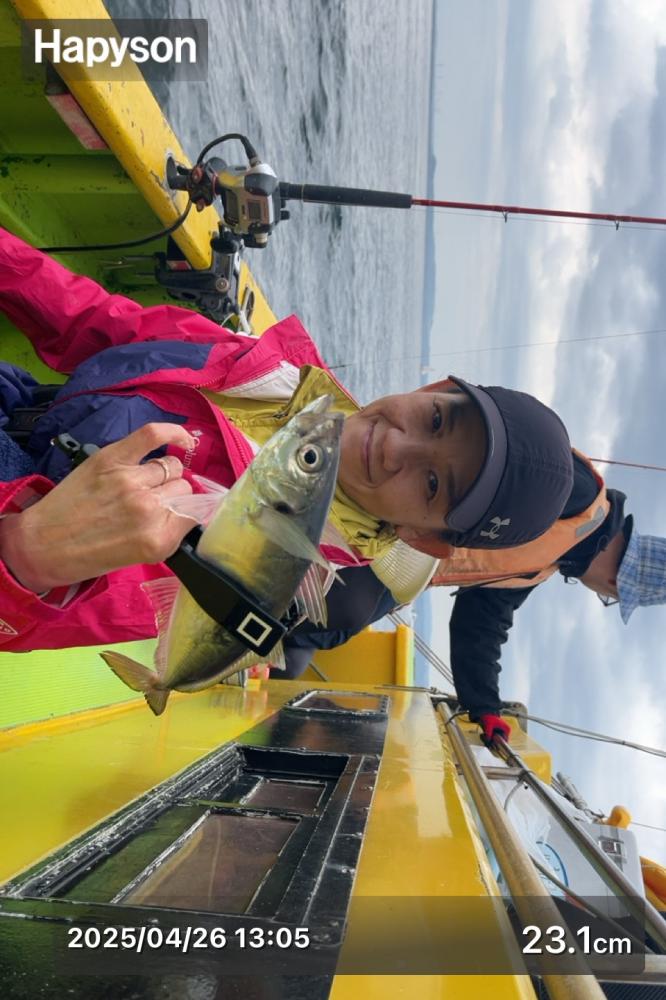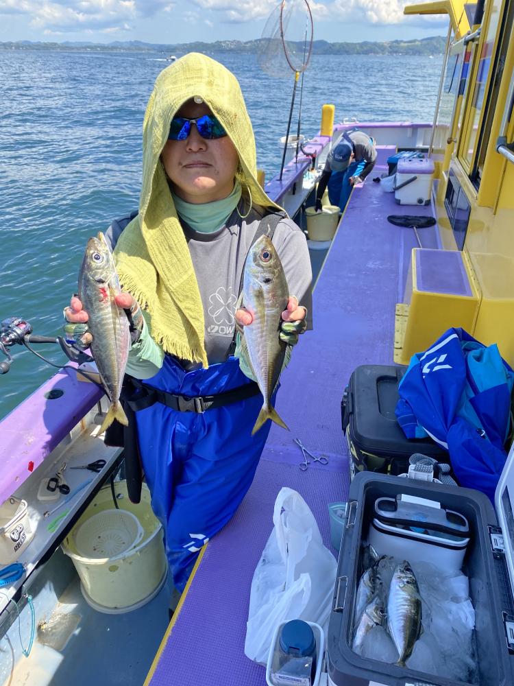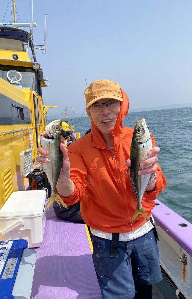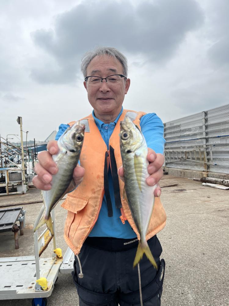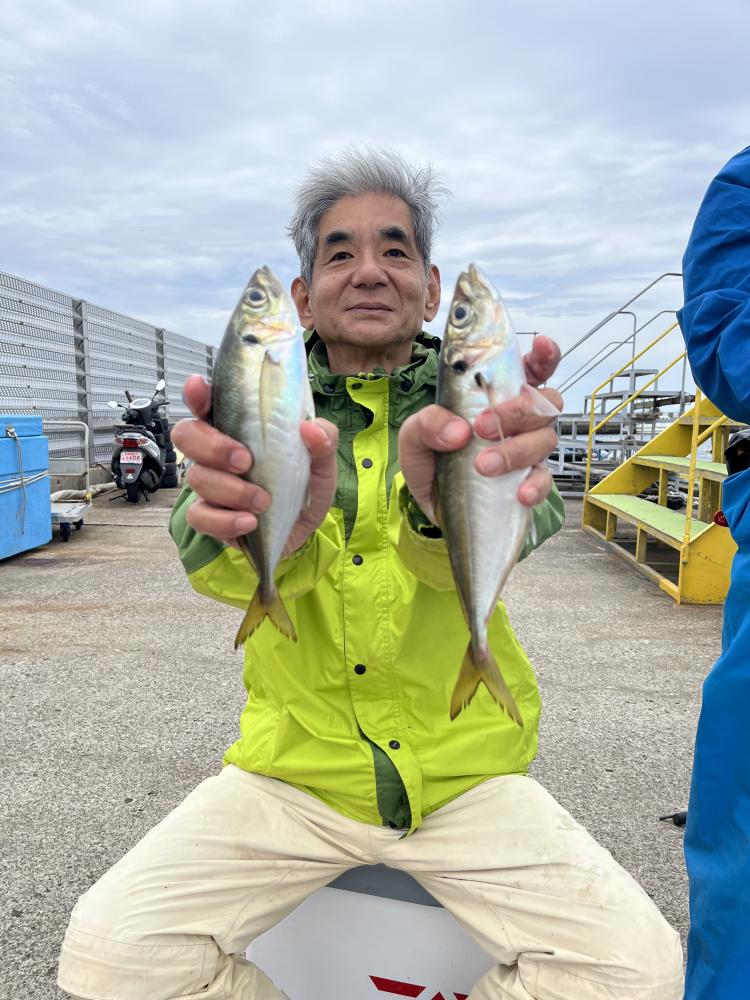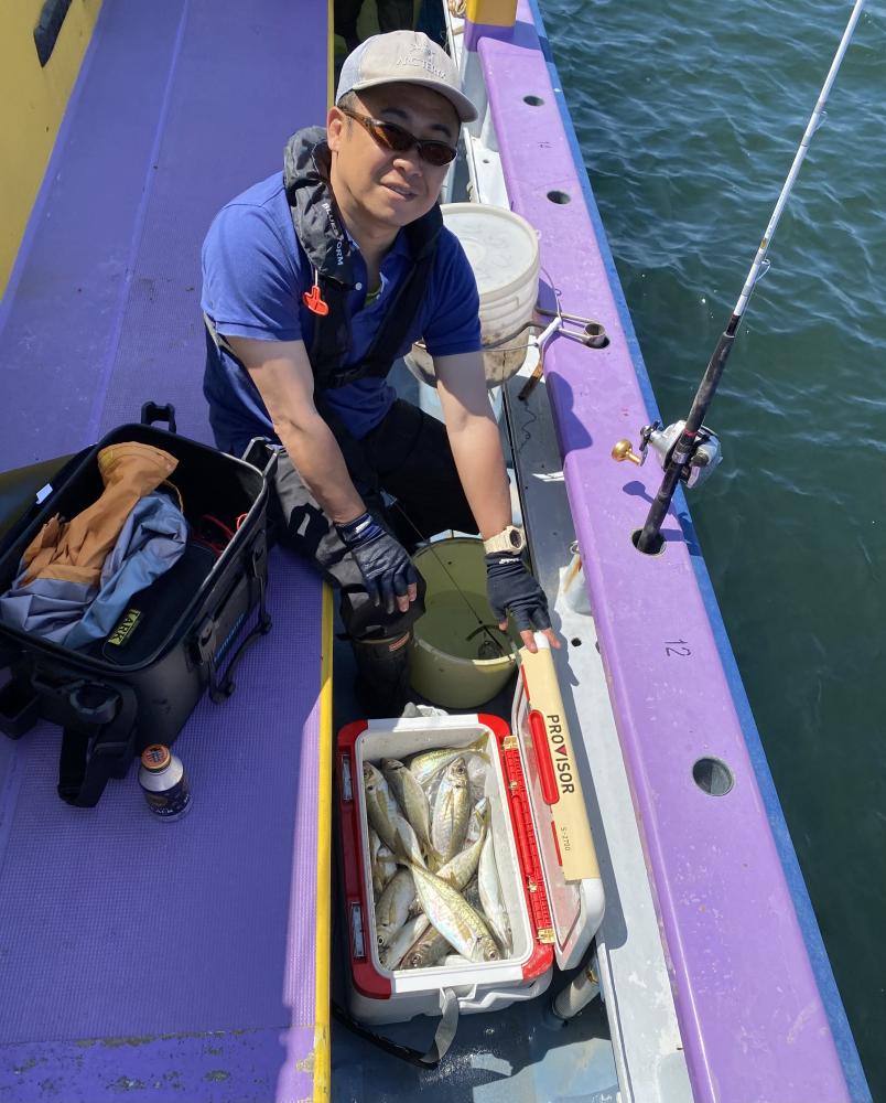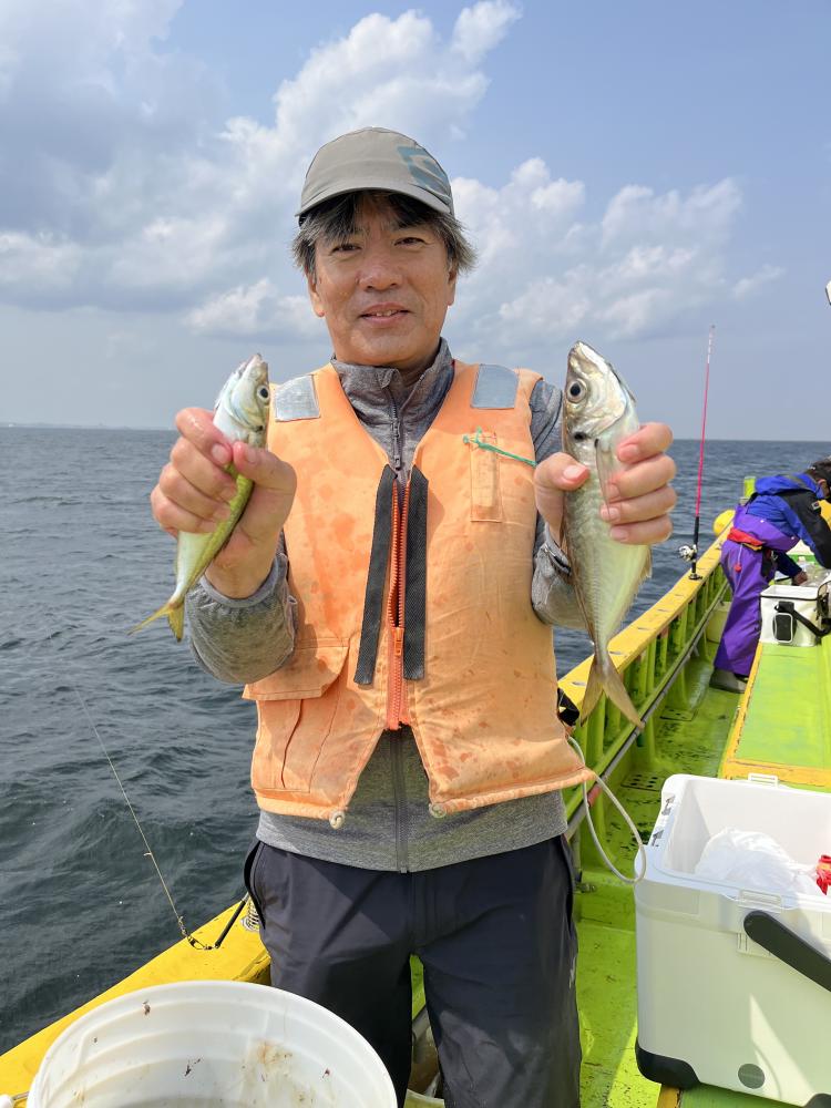 今日は多くのアジファンに乗船して頂き有難う御座いました。朝一からアジ型を出すと23センチから25センチ28センチクラスの中型から30センチオーバーも交じり下げ潮が速くタナ取りが上手くいっている方は単発ながらも型を出す!潮がよどみ上げ潮になるとサバが多くなり帰りまで楽しめました。外道にサバとイネゴチが!