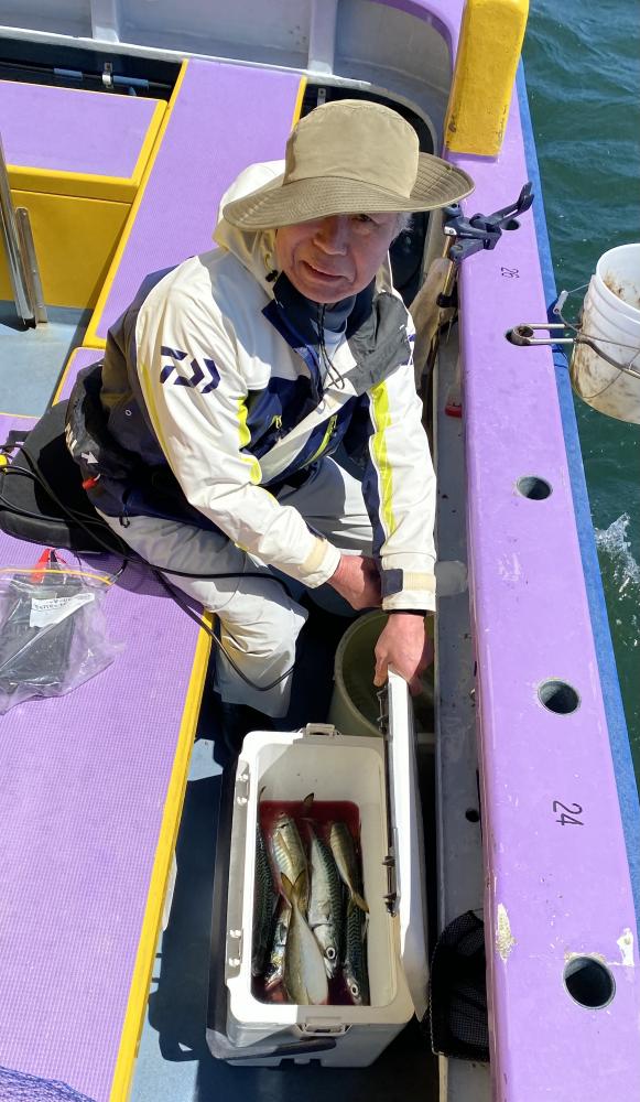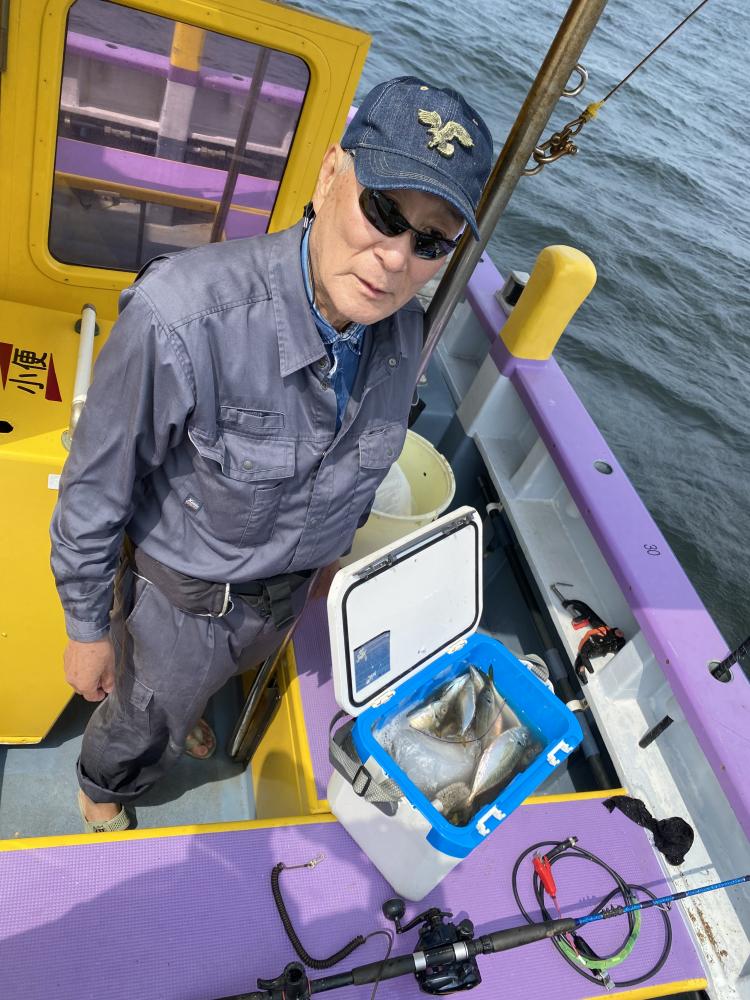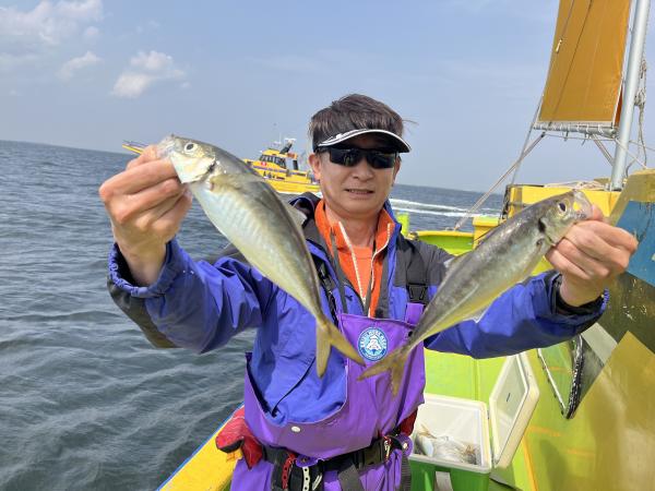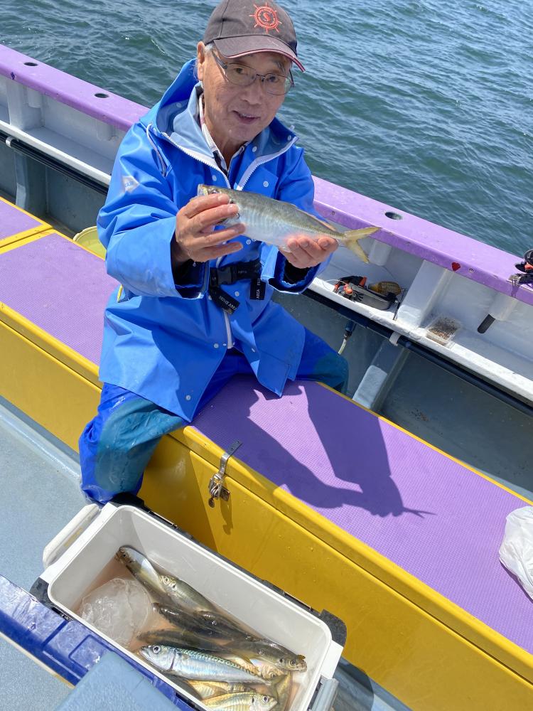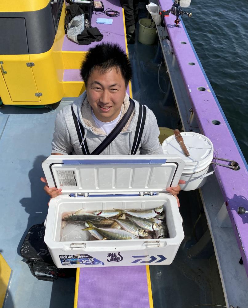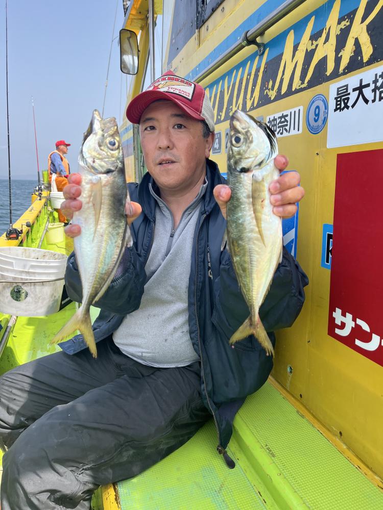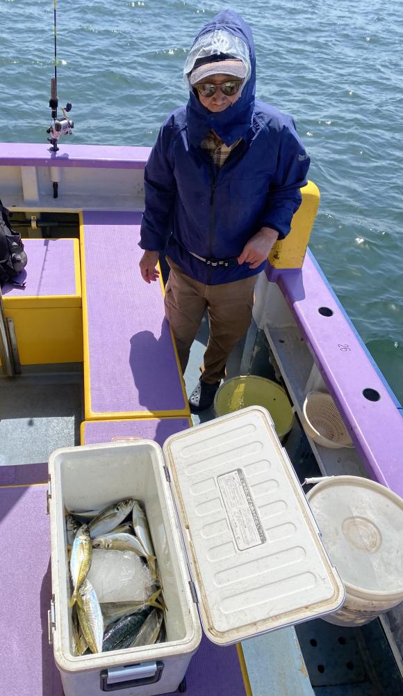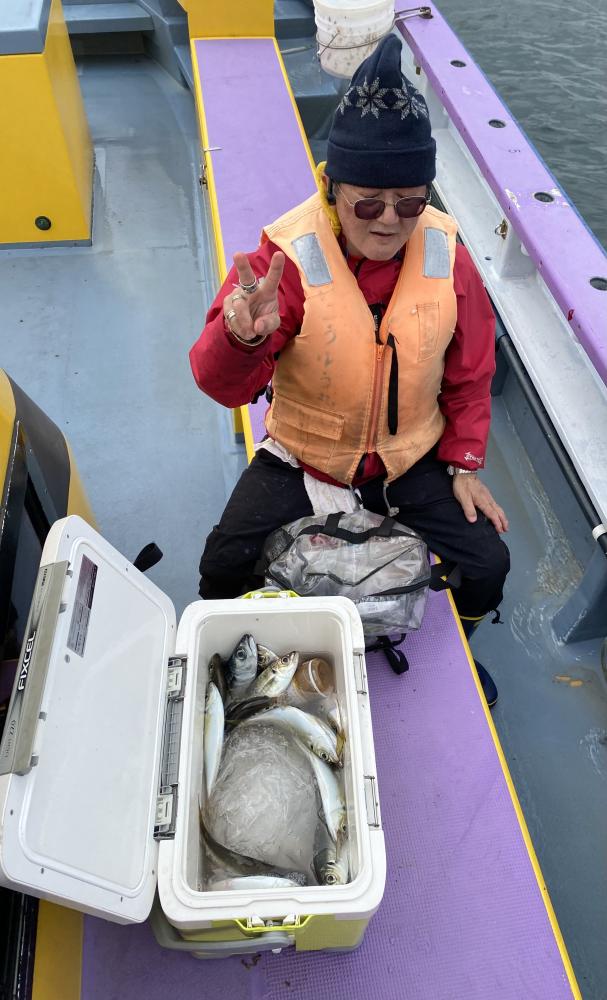 今日は多くのアジファンに乗船して頂き有難う御座いました。朝一からアジ型を出すと23センチから25センチ28センチクラスの中型から30センチオーバーも交じり下げ潮が速くタナ取りが上手くいっている方は単発ながらも型を出す!潮がよどみ上げ潮になるとサバが多くなり帰りまで楽しめました。外道にサバとイネゴチが!
