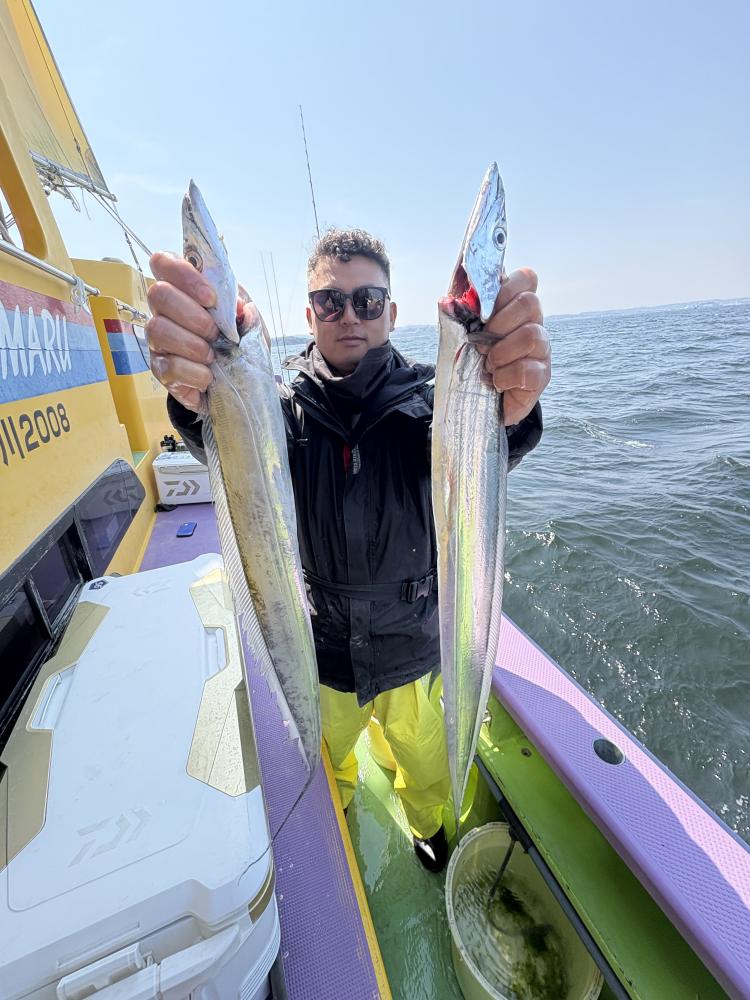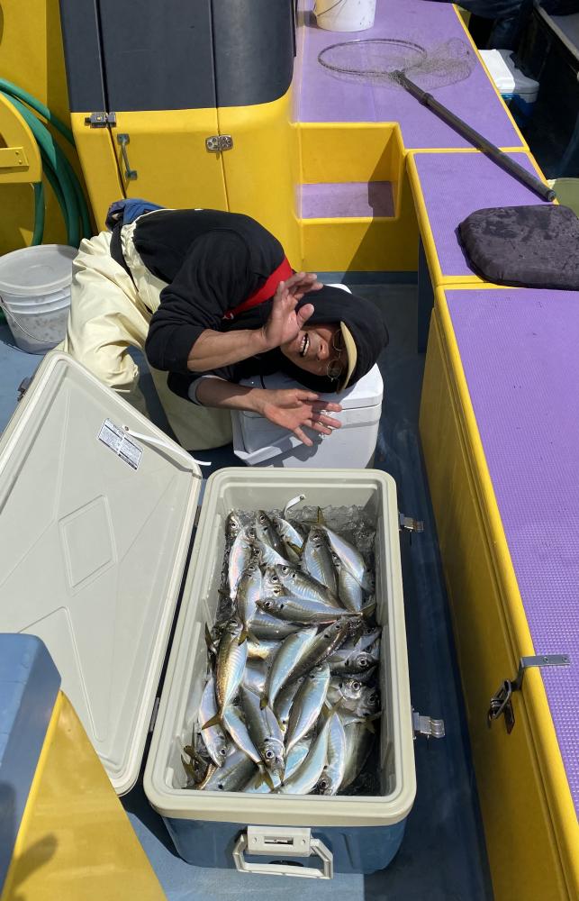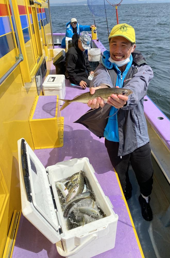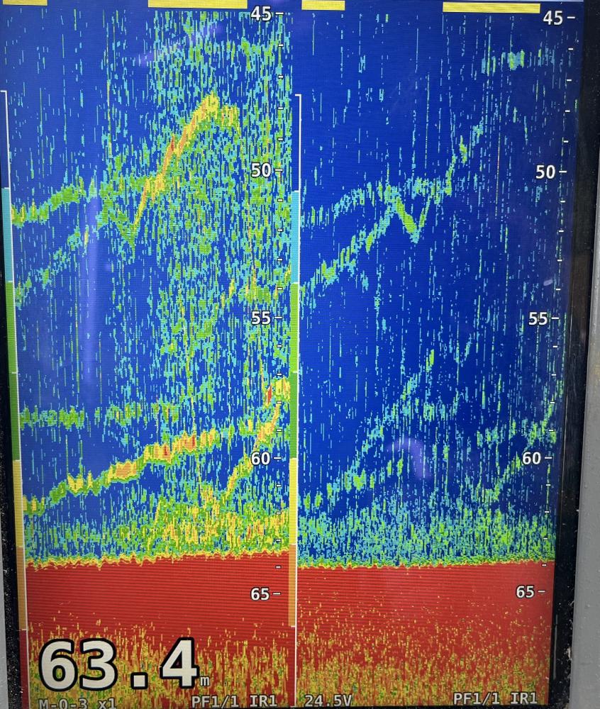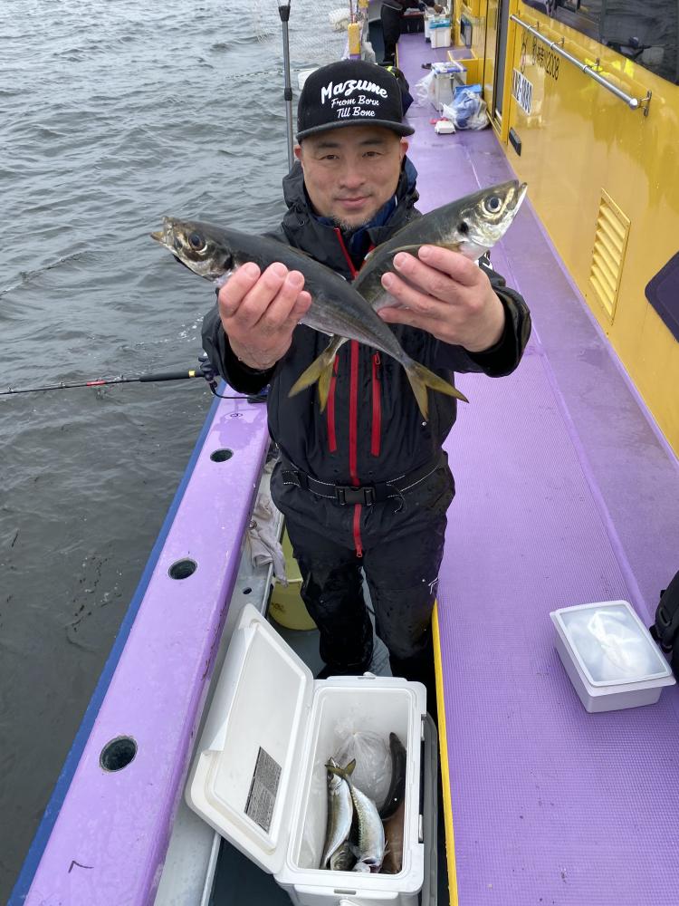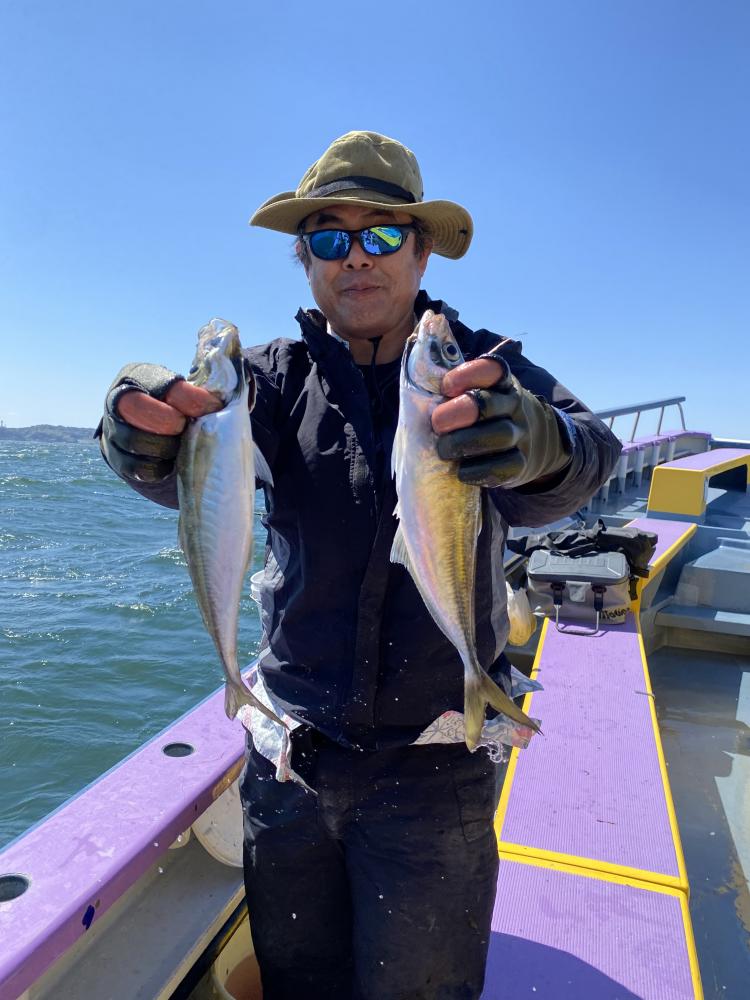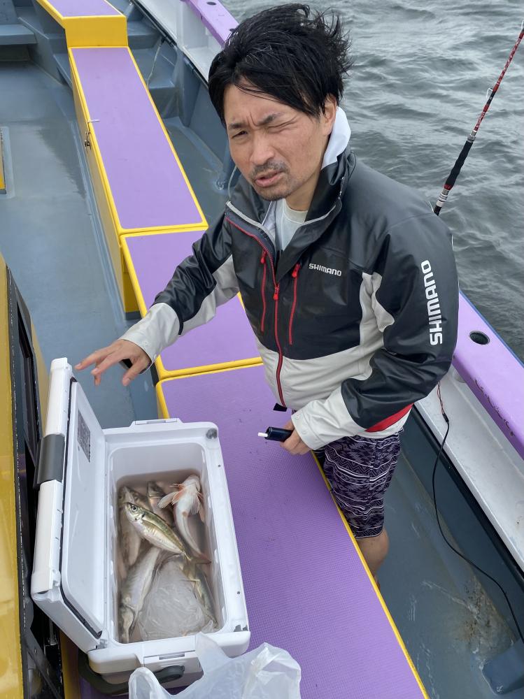 浅場から探索で!点々と反応はあり、型は見れるものの後々釣れる感じがなく中盤からは深場の船団へ合流で。最初の流しはアタリ活発に!掛けるまでは良かったのですが、バラシの連発で船になかなか上がらずで。その後は流すたびに型見るばかりでしたが、最後の流しはアタリ増えて、これからかな?って感じでしたが、時間切れでした。良いサイズも多数混じりました!