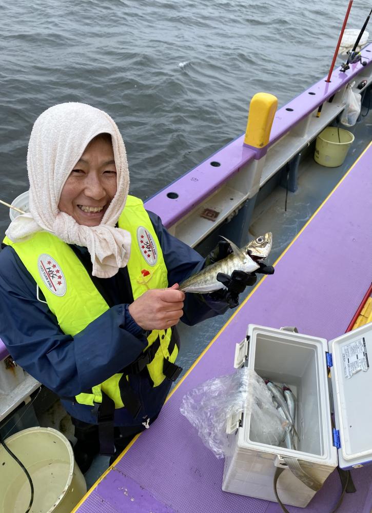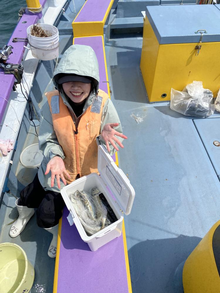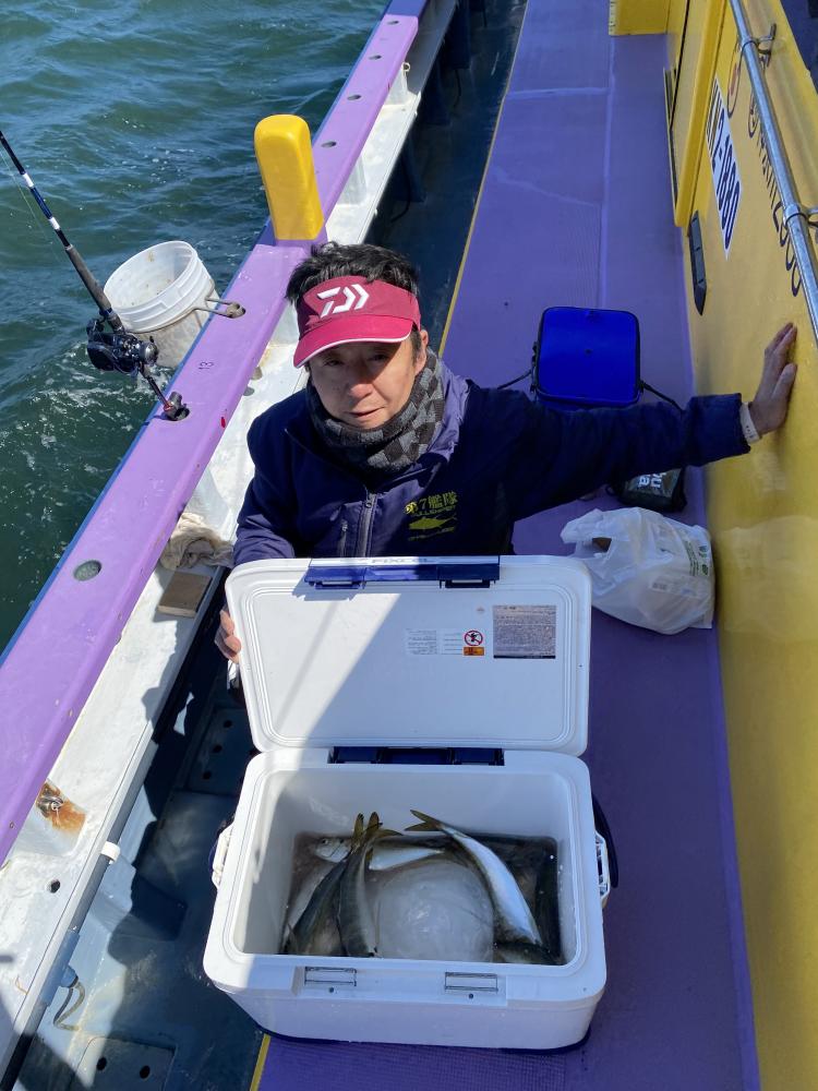 超激渋の中、裕司船長にこまめに当て直していただきテンヤ初挑戦の白川さんもゲット