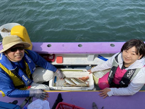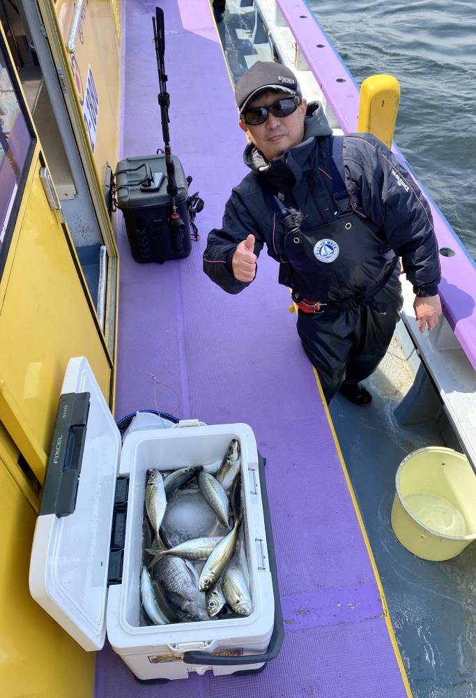 ラストポイントでは小さいベイト反応がバラけて持ち上がり❗️3点掛け、4点掛け5点掛けと多点掛けが続き「こうゆう丸」おススメのサビキ使用の方は、この時合いにサビキメバル多点掛けの醍醐味を楽しんで頂きました⭕️