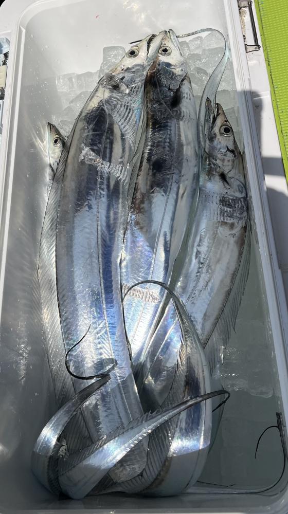 その周辺で反応に乗っていてもタチウオからは音信不通状態❌探索しながら実績あるポイントへ2隻いた先船の方から情報を頂き、活性の高いタチウオに遭遇すると型を見られたので沖上がりまで頑張って頂きました。