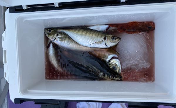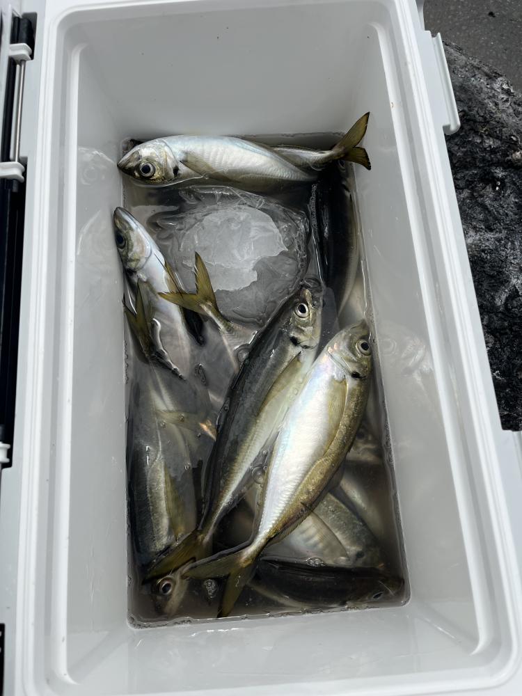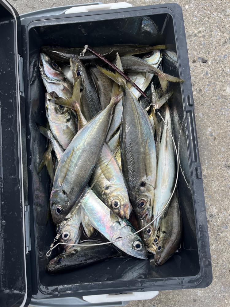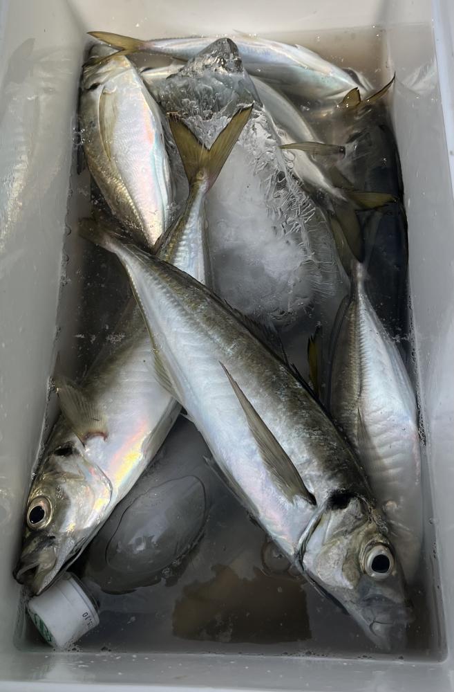 朝イチは沖目ポイントへ行き、激流の下げ潮の中での実釣開始、良型アジメインにトリプルヒットもありましたが、時合いが過ぎると反応がパタっと出なくなりました❌
