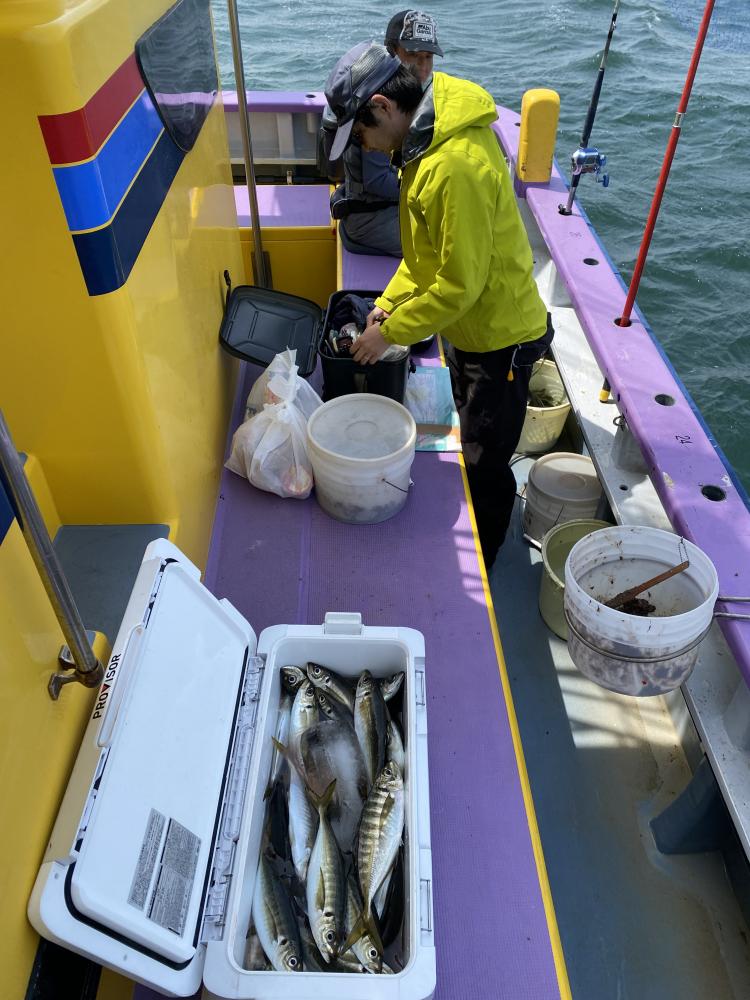 反応はあるものの道具を嫌っているようで、潜ったり、すぐに反応抜けてしまったりで型見た程度で…。どこかにないかと探索に向かいましたが、これといって反応見当たらずで、潮止まりのタイミングに賭けて朝イチのポイントへ戻ると何本か追加できましたが、そのうち反応散り散りで…。後半は猿島方面へと探索しましたが、汚れ酷く苦戦でした。