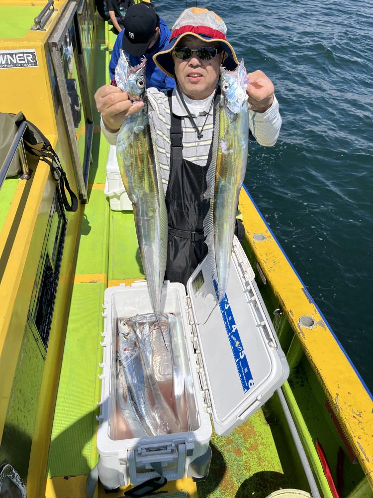 朝イチすぐにドラゴン級ゲット〜!その後も当て変え当て変えでメーター級数本混じり、サイズ狙いで立ち回って見るものの型見るばかりで。中盤から船団に戻り反応は広範囲に出ているもののやはり食い気なく気まぐれに型見る程度でした。反応だけは確認できているのであとは食い気が復活するのを期待です!